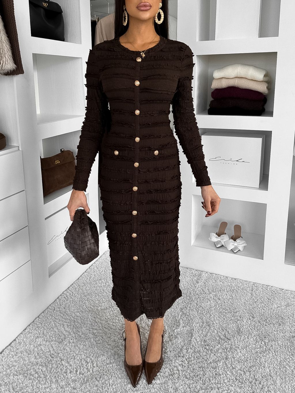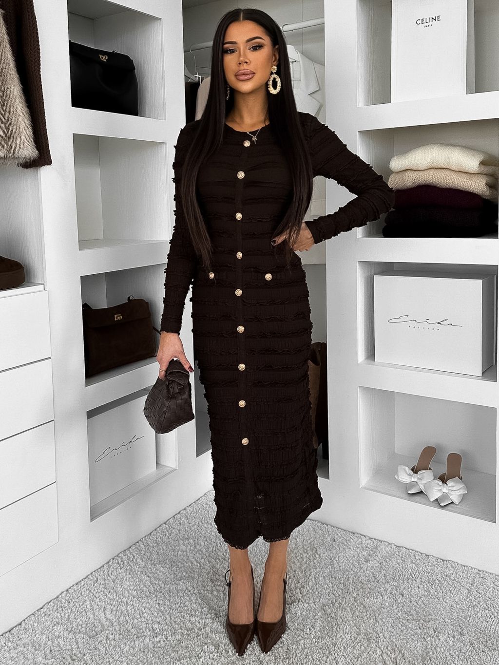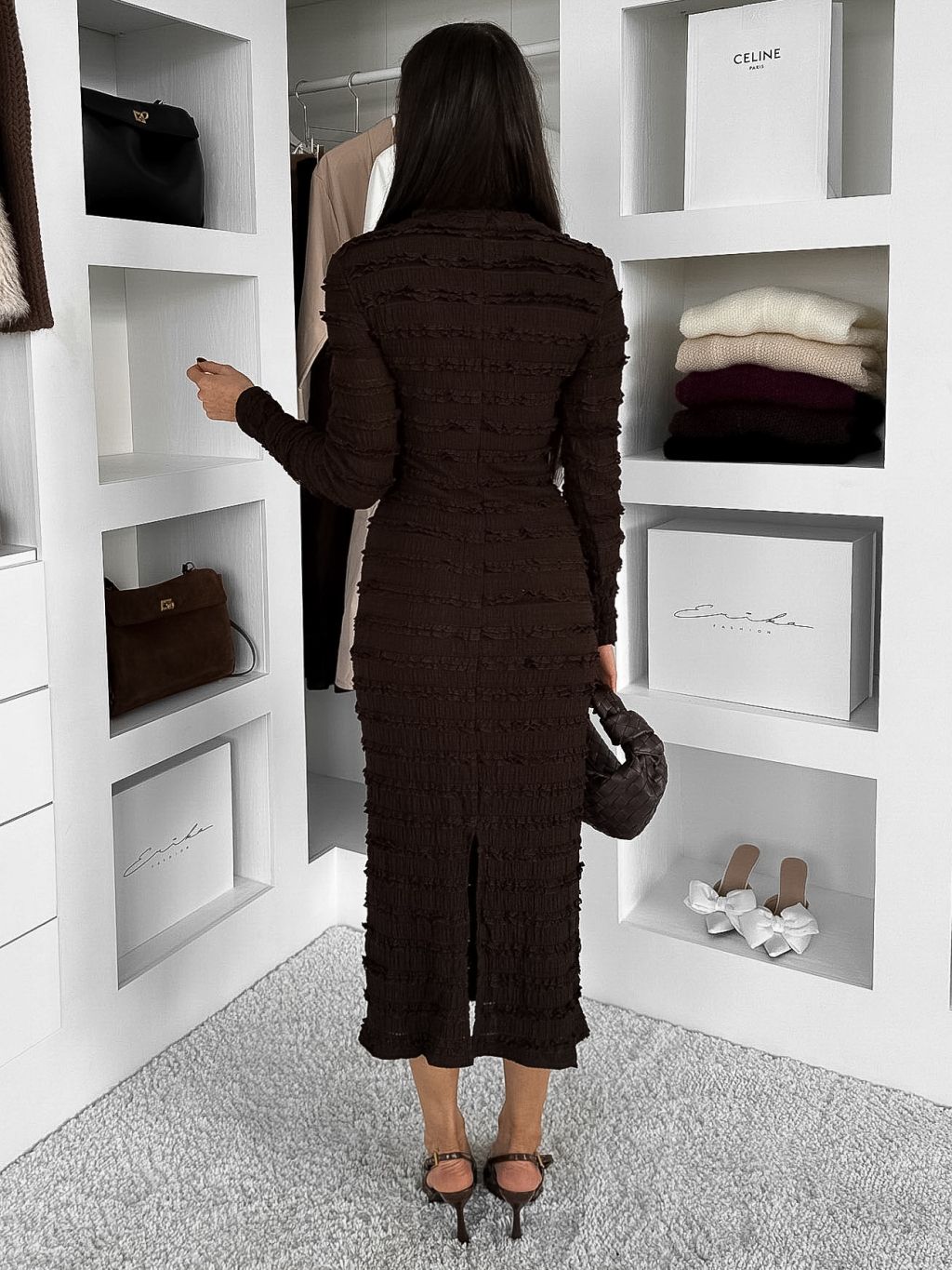 Hnedé elegantné puzdrové dlhé šaty DAREVIX s rázporkom