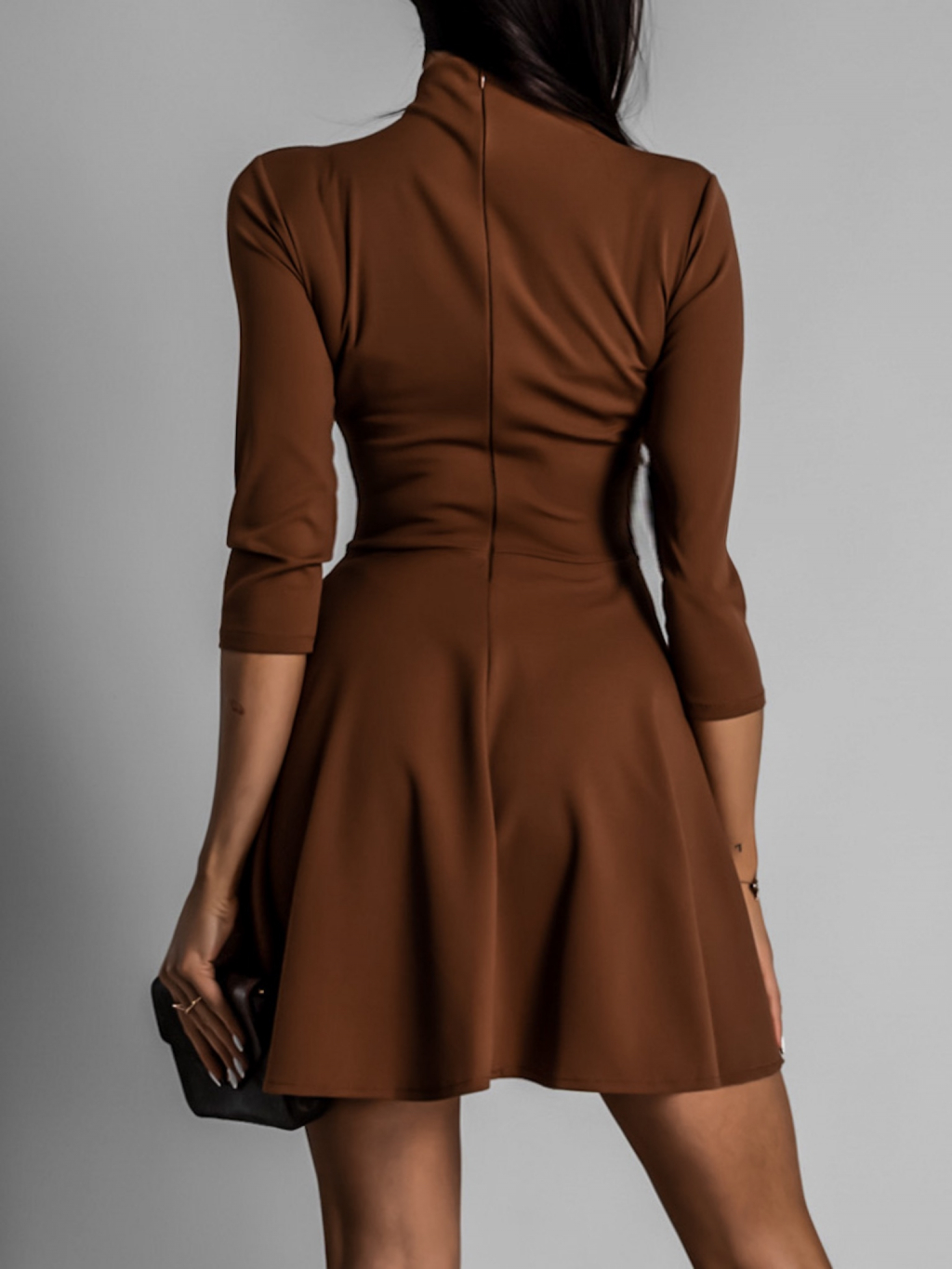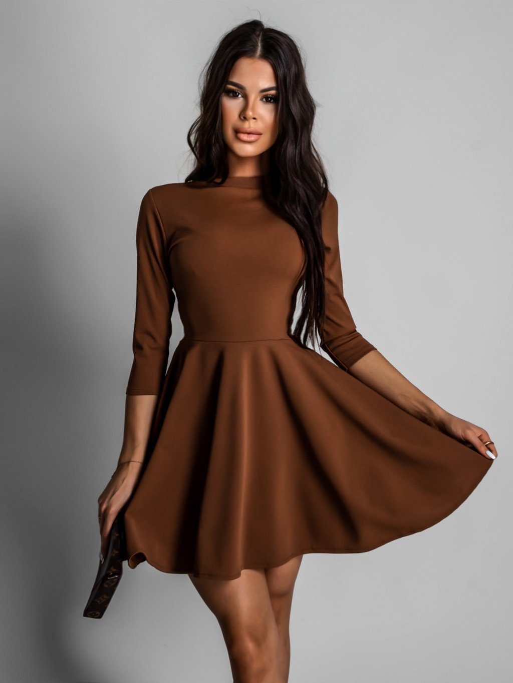 Hnedé elegantné šaty GROUND s dlhým rukávom