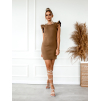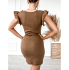 Hnedé rebrované šaty MAGNIFIC s retiazkou a volániky na ramenách