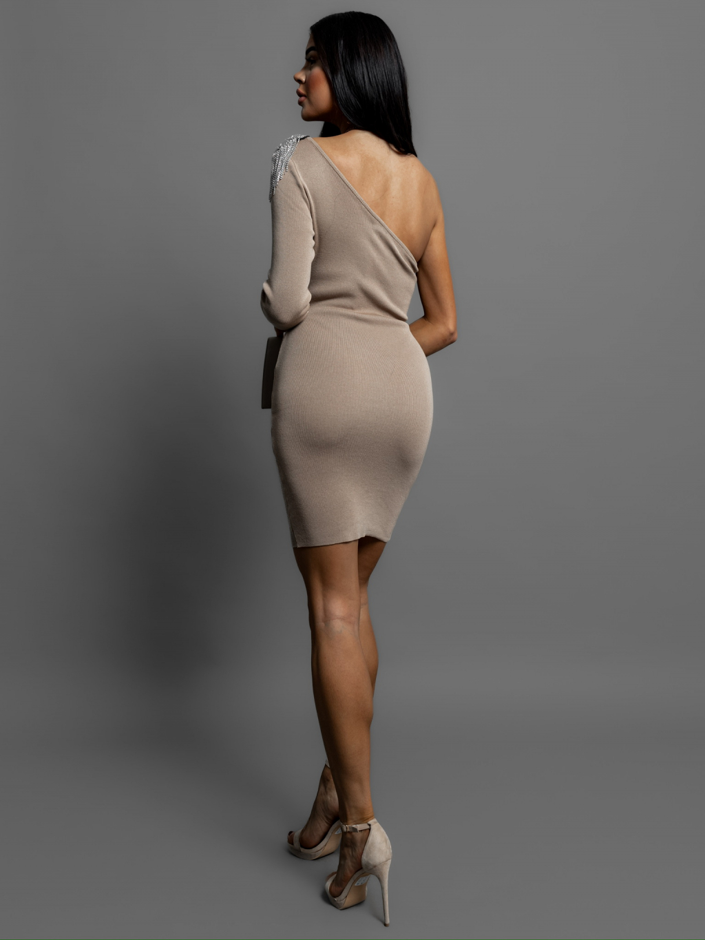 Hnedé šaty HAFTA s aplikáciou na ramene