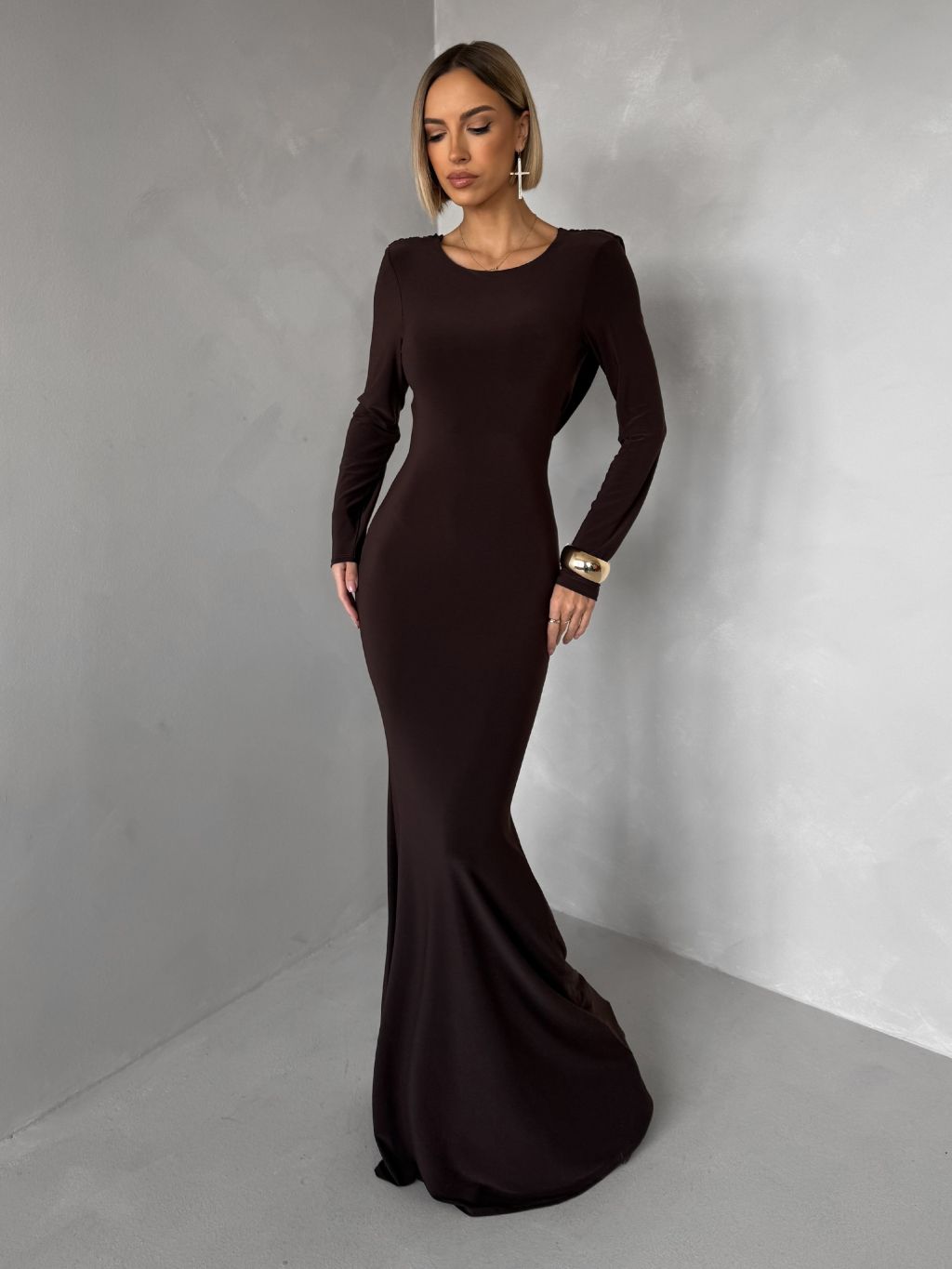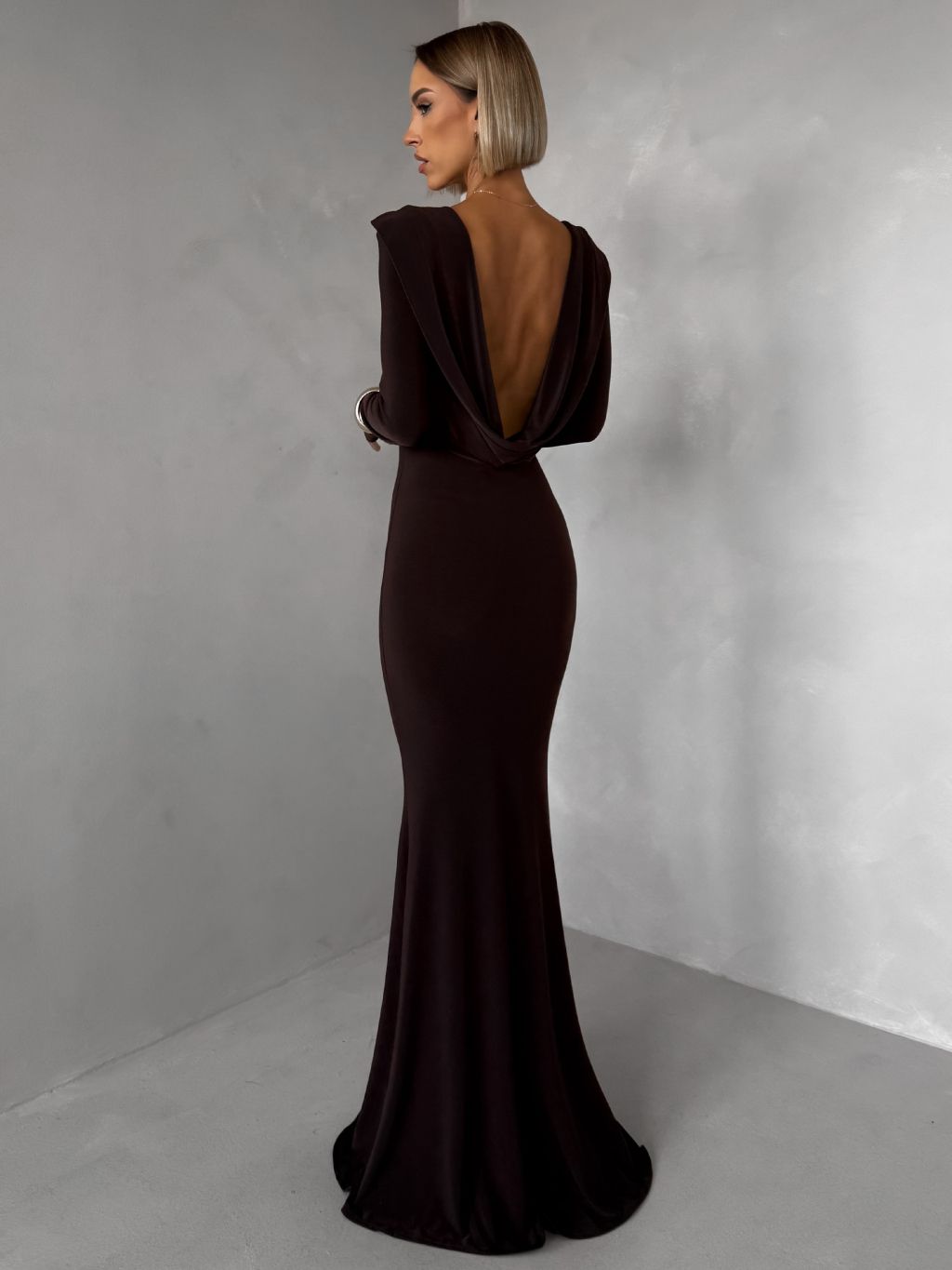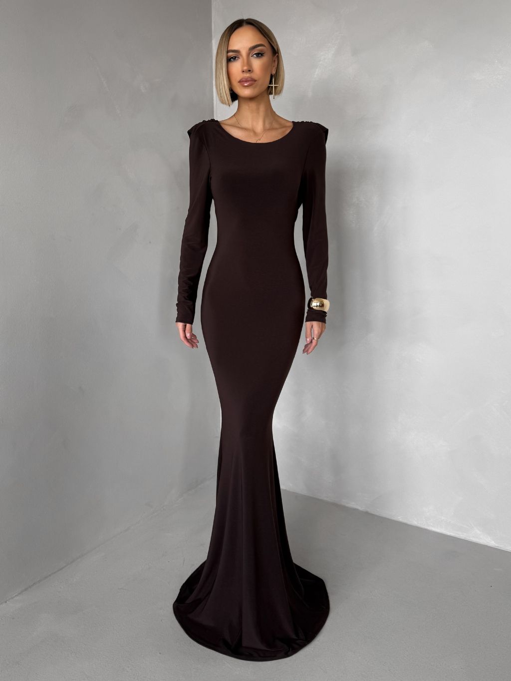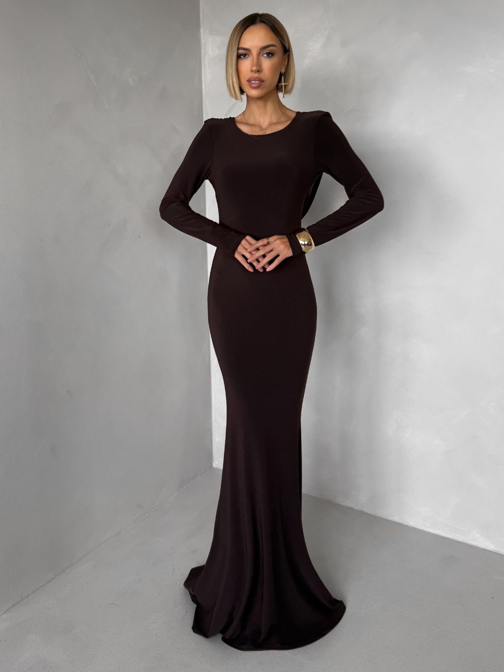 Hnedé spoločenské dlhé šaty BRINOVA