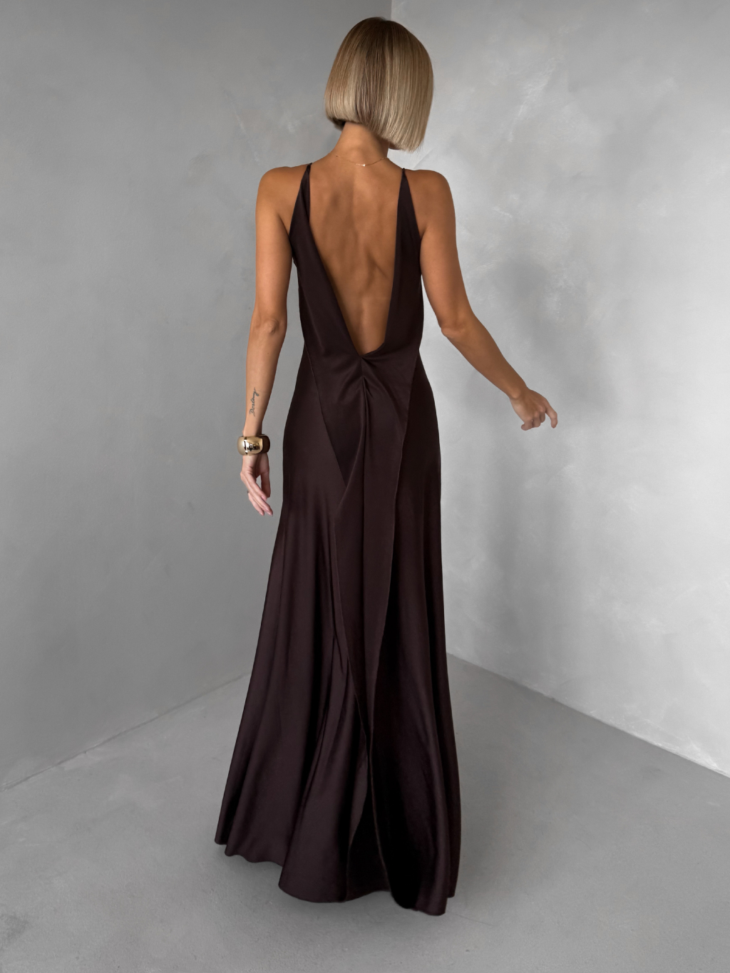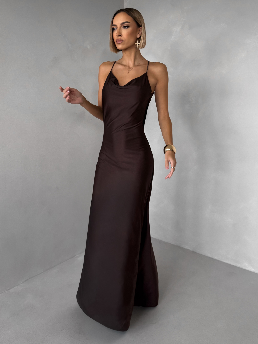 Hnedé spoločenské jednoduché dlhé šaty CARMIYA