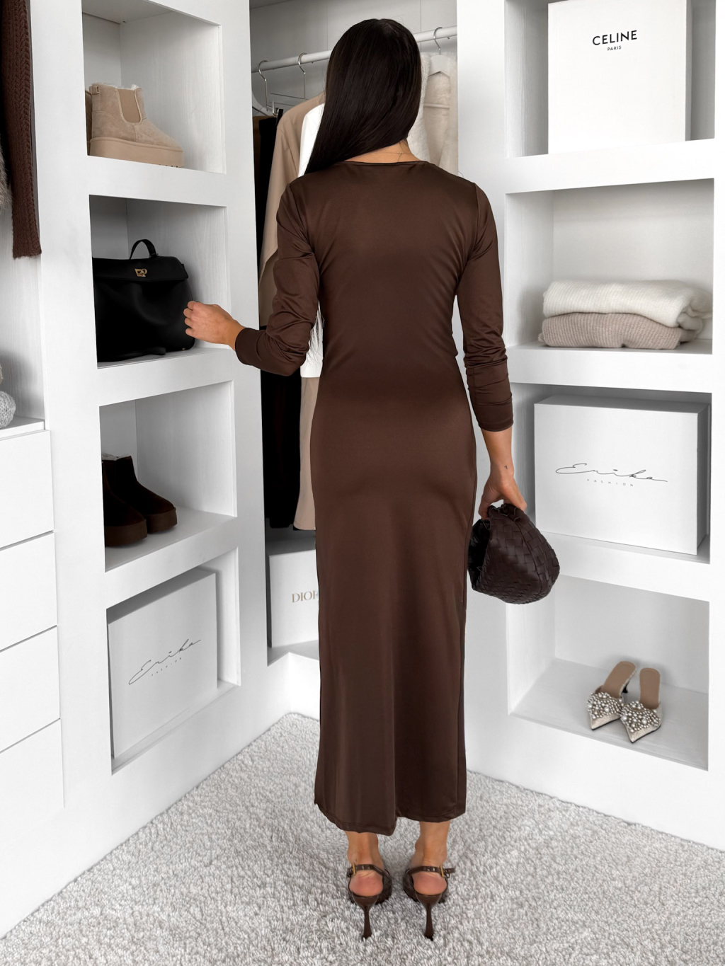 Hnedé spoločenské midi šaty NUREILA s rázporkom