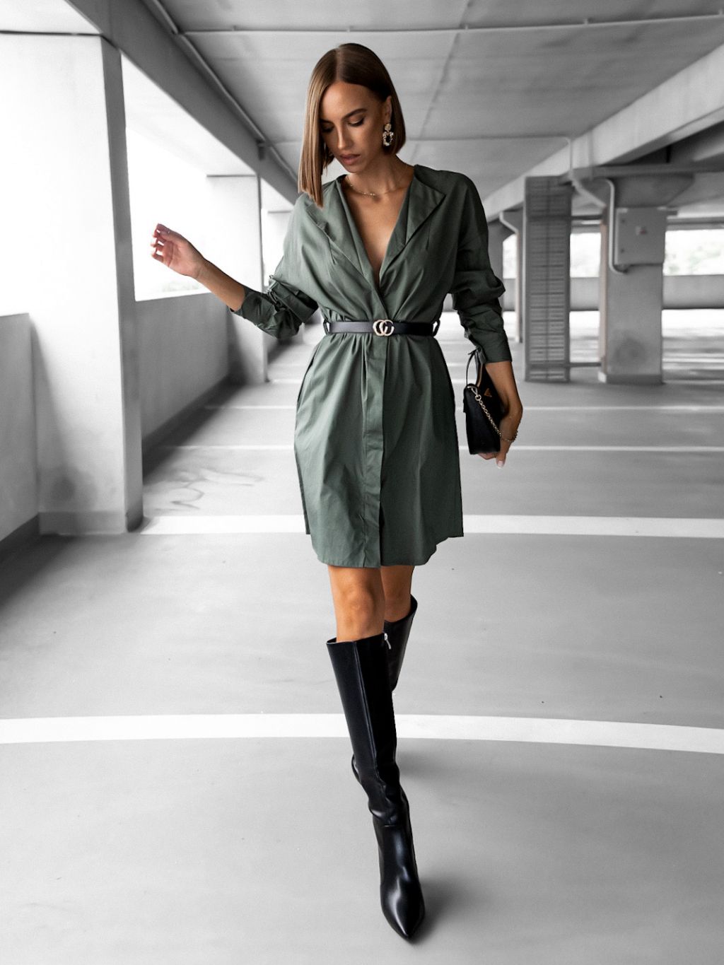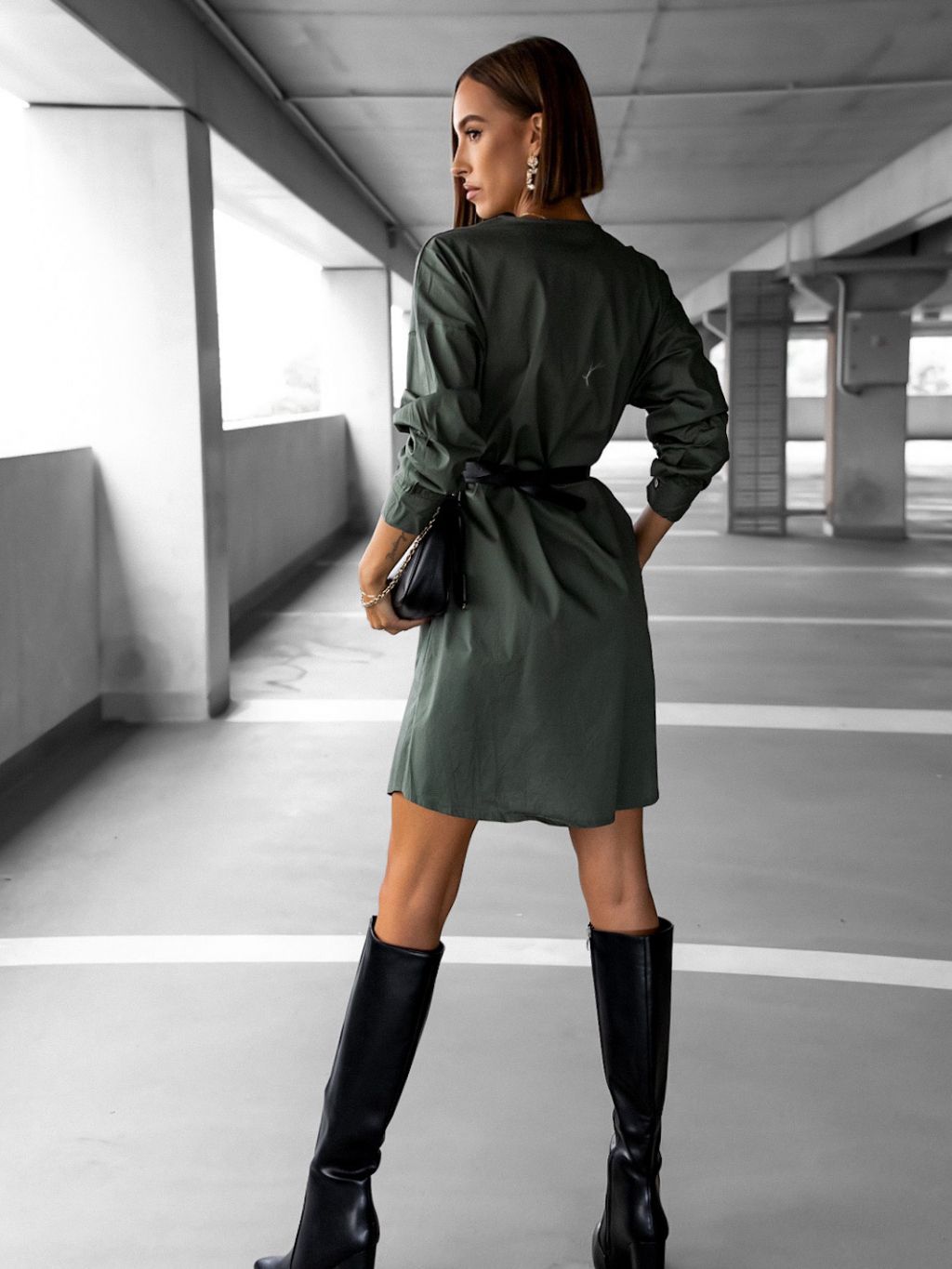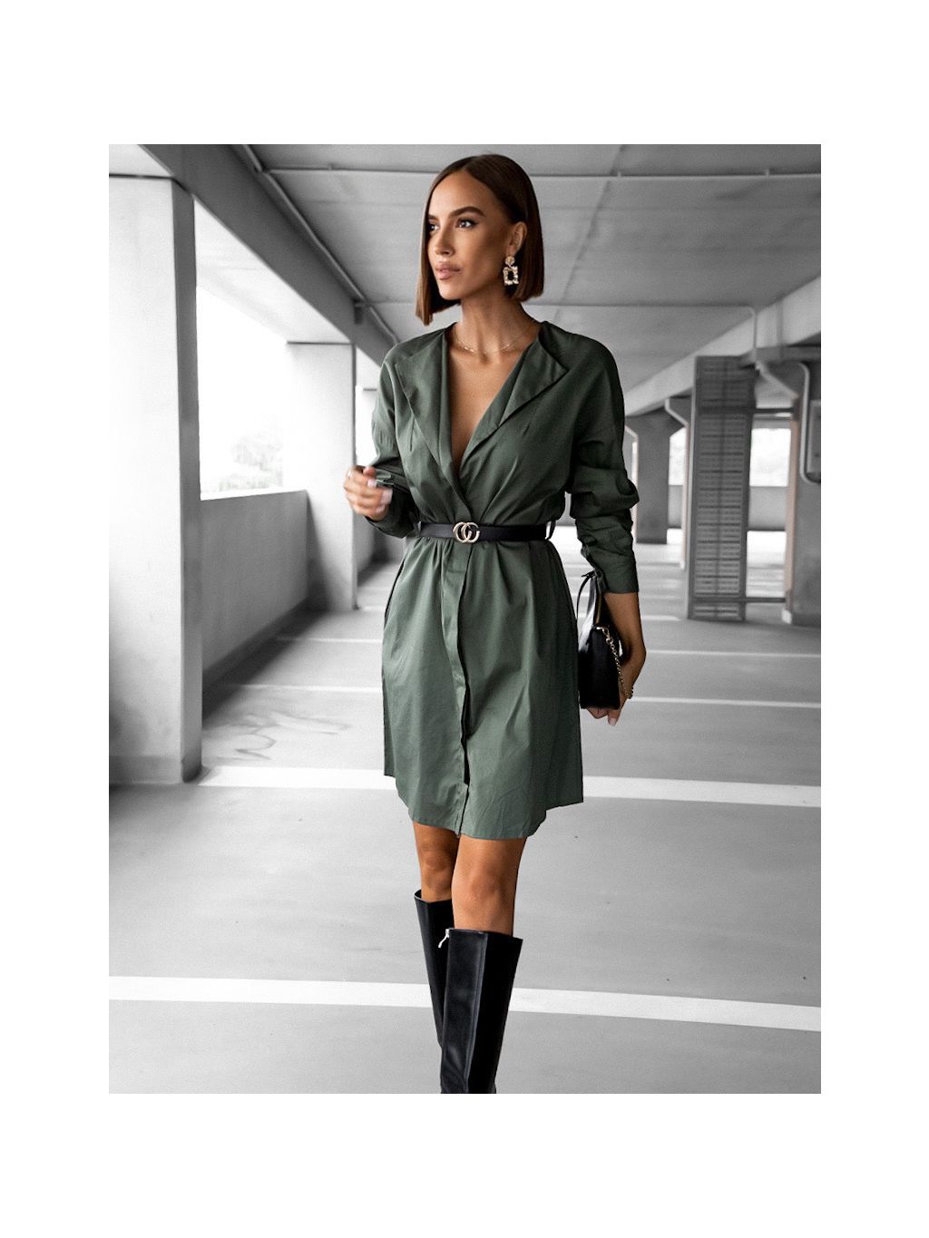 Khaki elegantné košeľové šaty PROPOSAL s opaskom