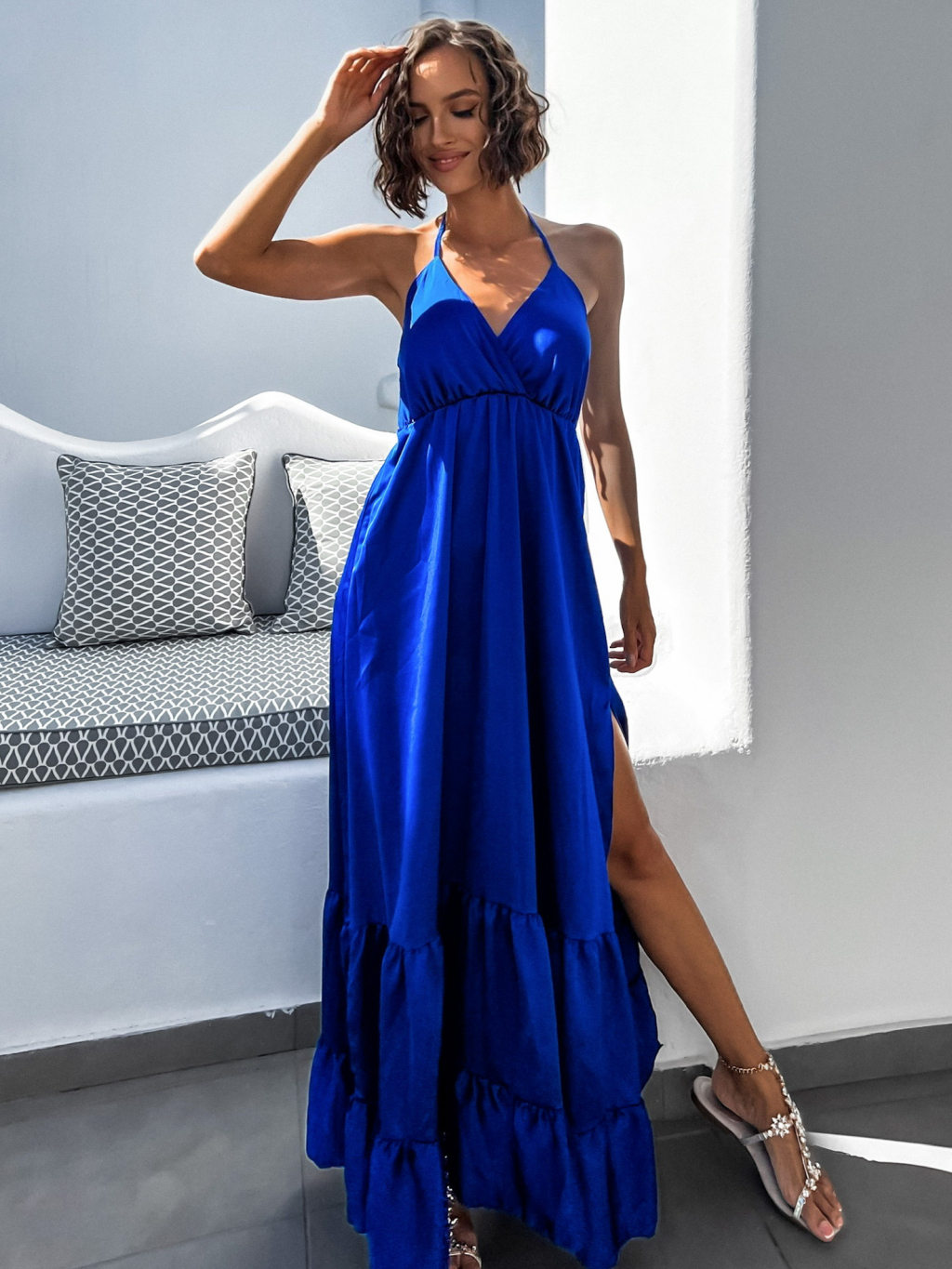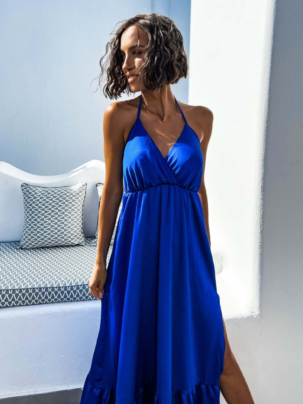 Kráľovsky modré elegantné šaty MADDOX s volánikmi