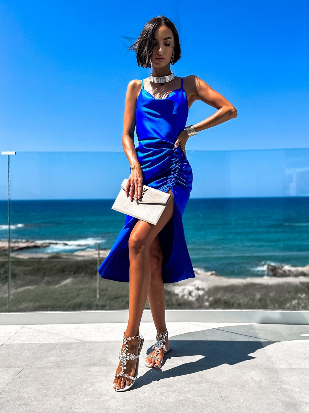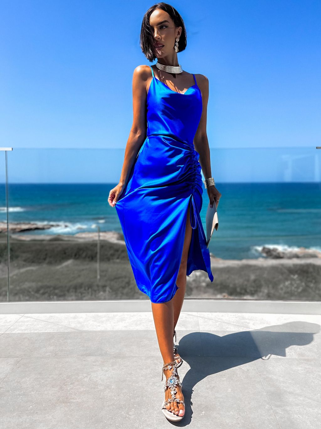 Kráľovsky modré elegantné šaty STELLAR s riasením