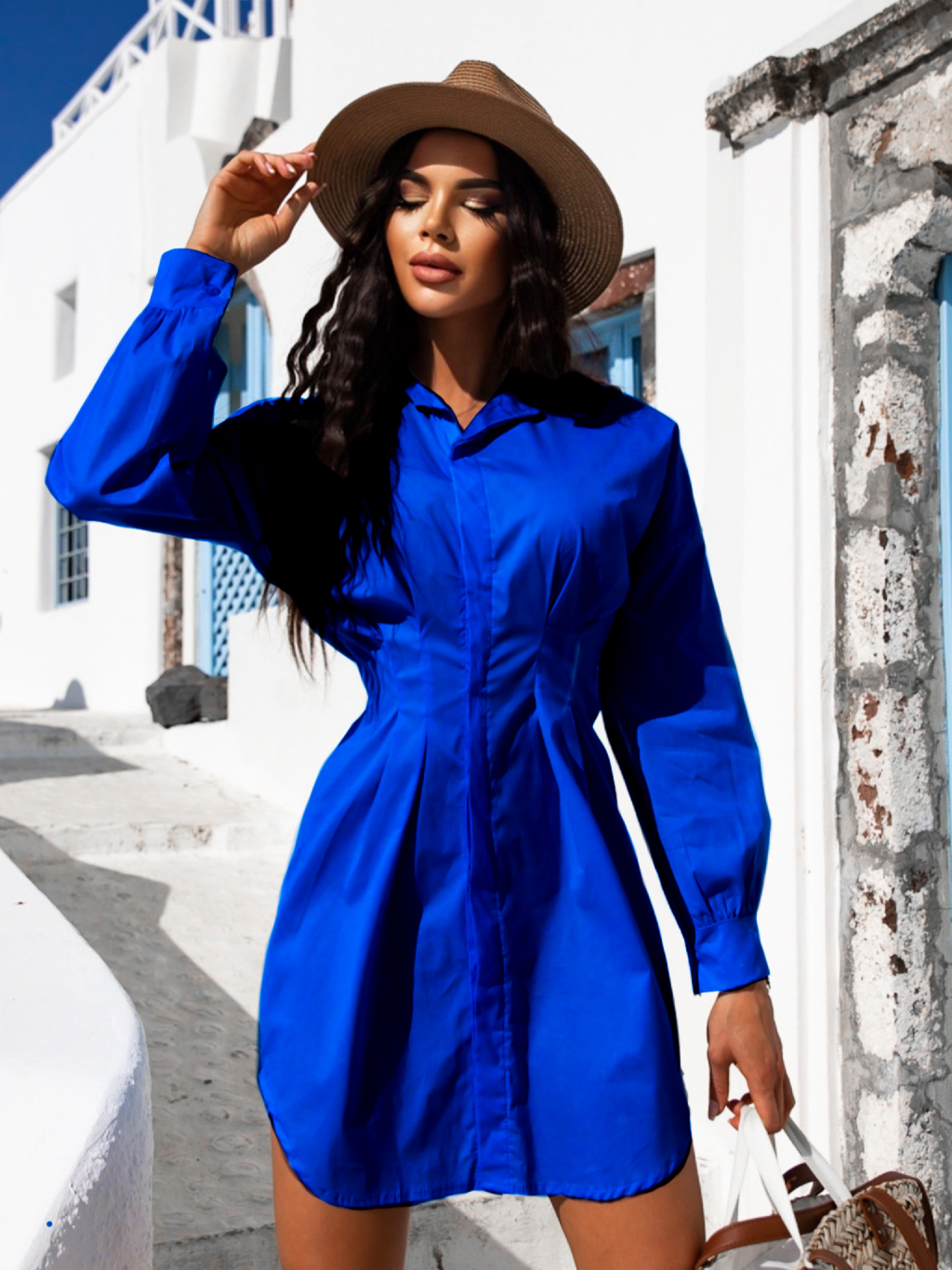 Kráľovsky modré košeľové šaty SIERRA na gombíky