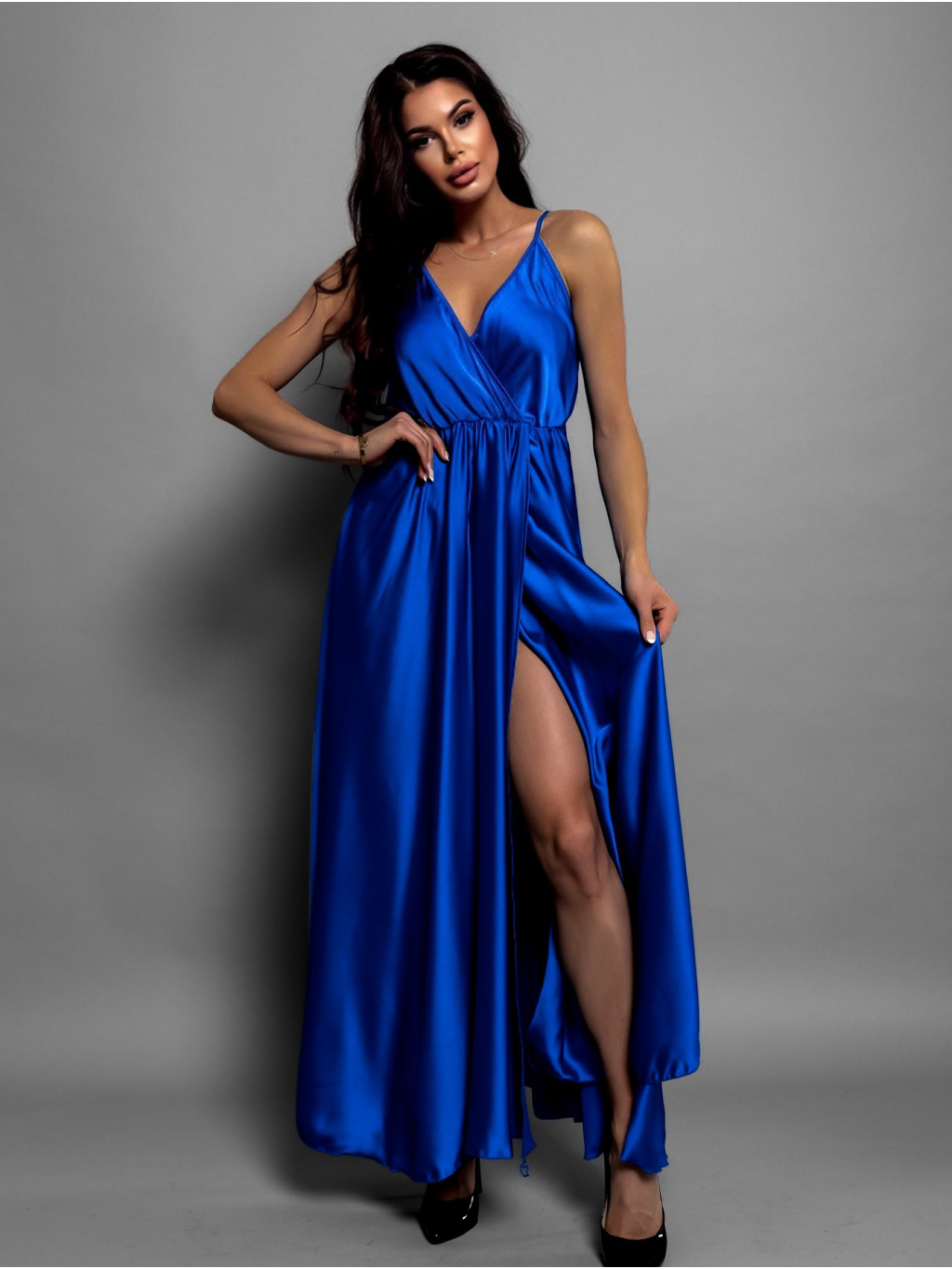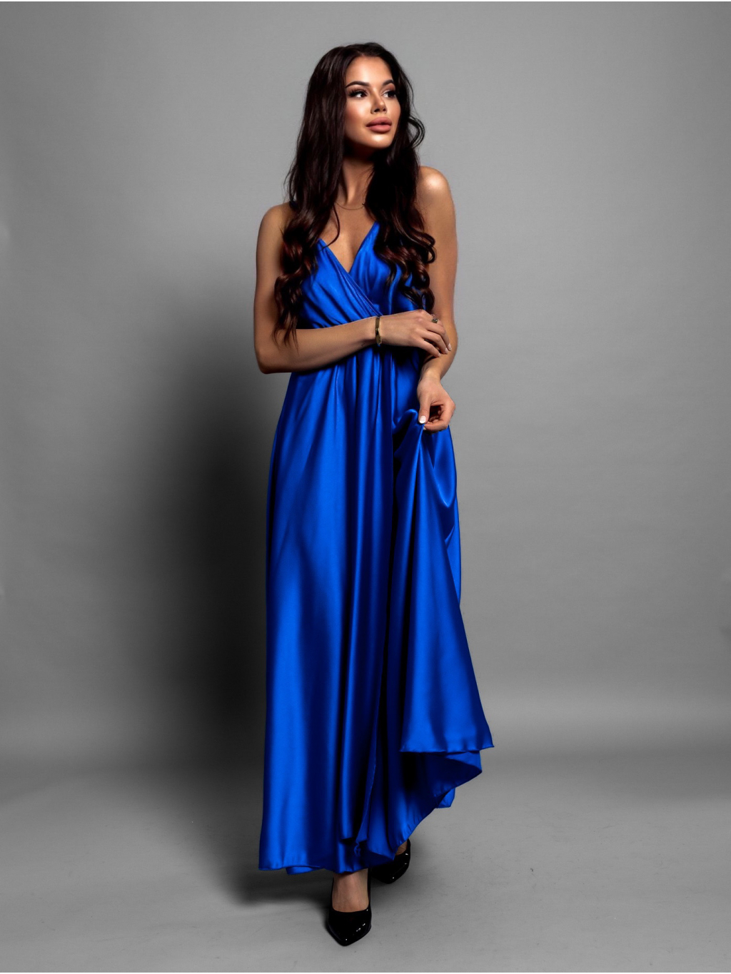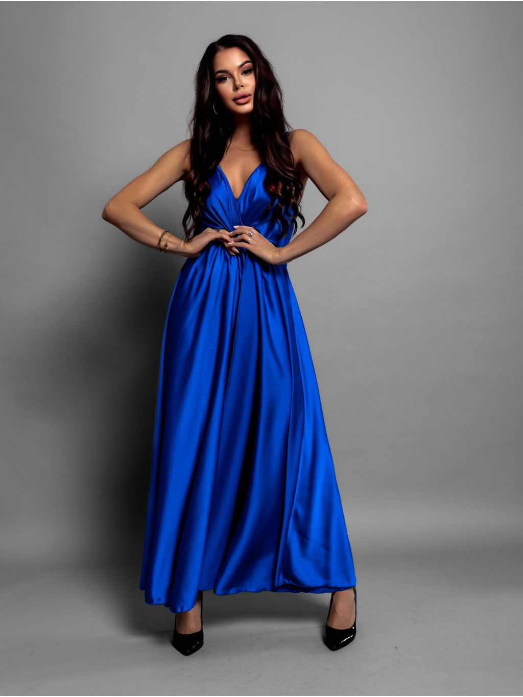 Kráľovsky modré lesklé dlhé plesové šaty CHRYSANTHE