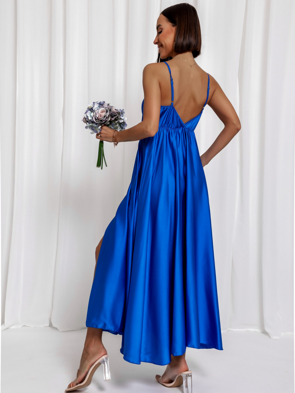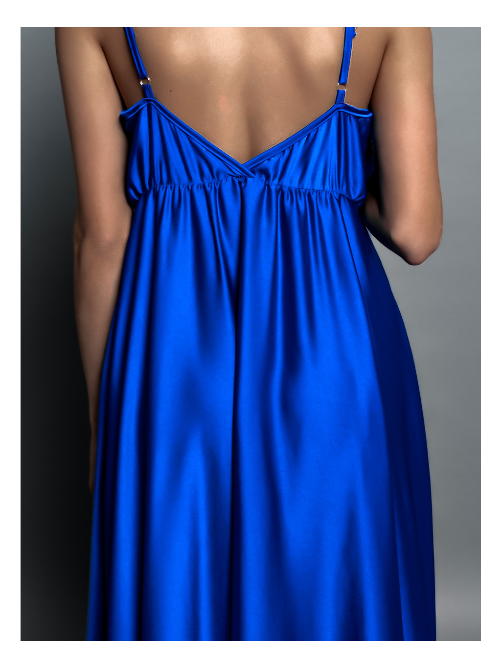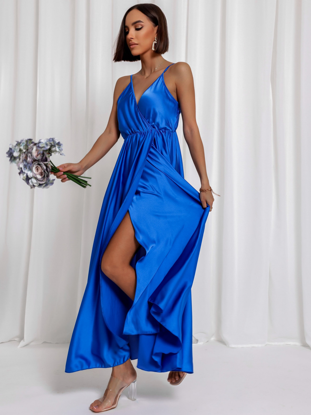 Kráľovsky modré lesklé dlhé plesové šaty CHRYSANTHE