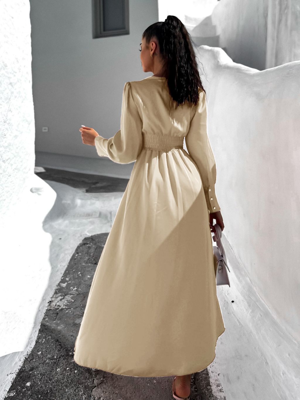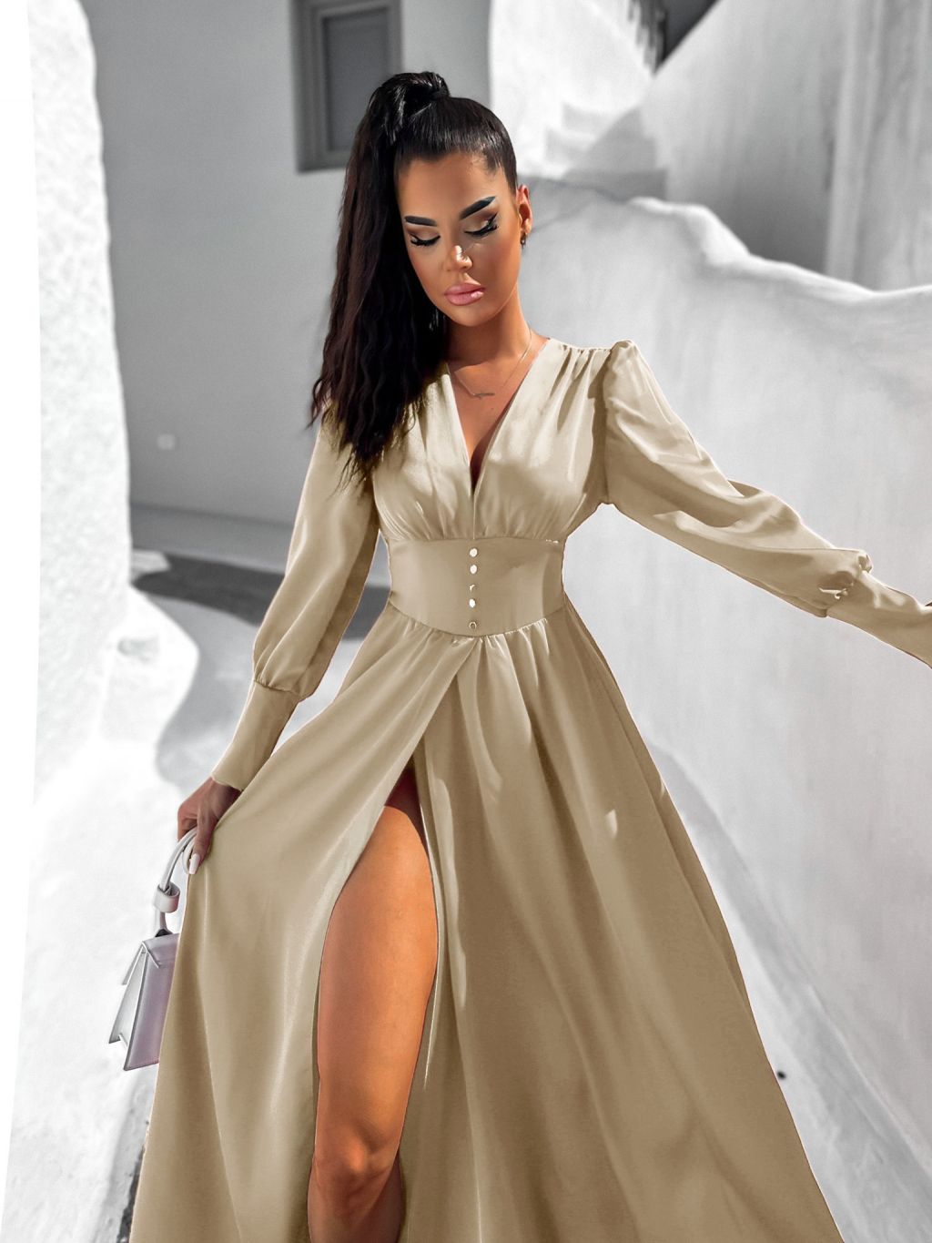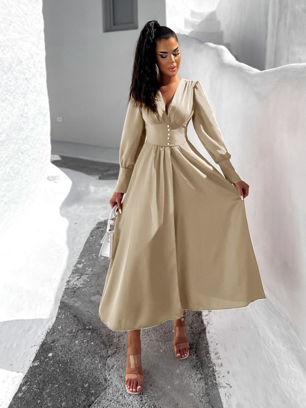 Krémové dlhé šaty FALLENS s dlhým rukávom
