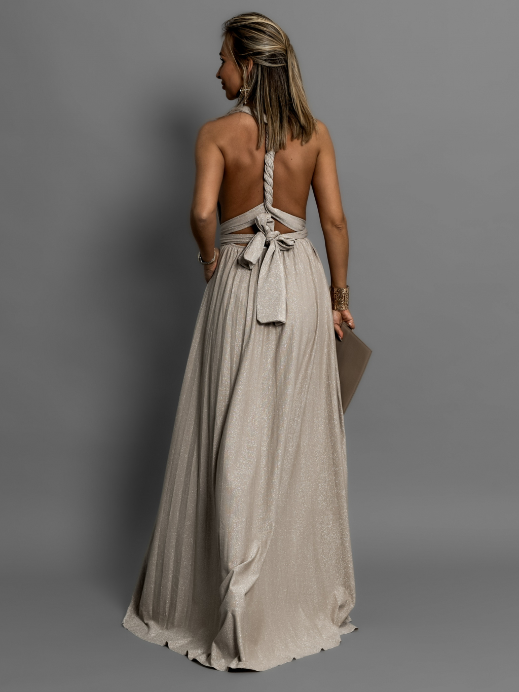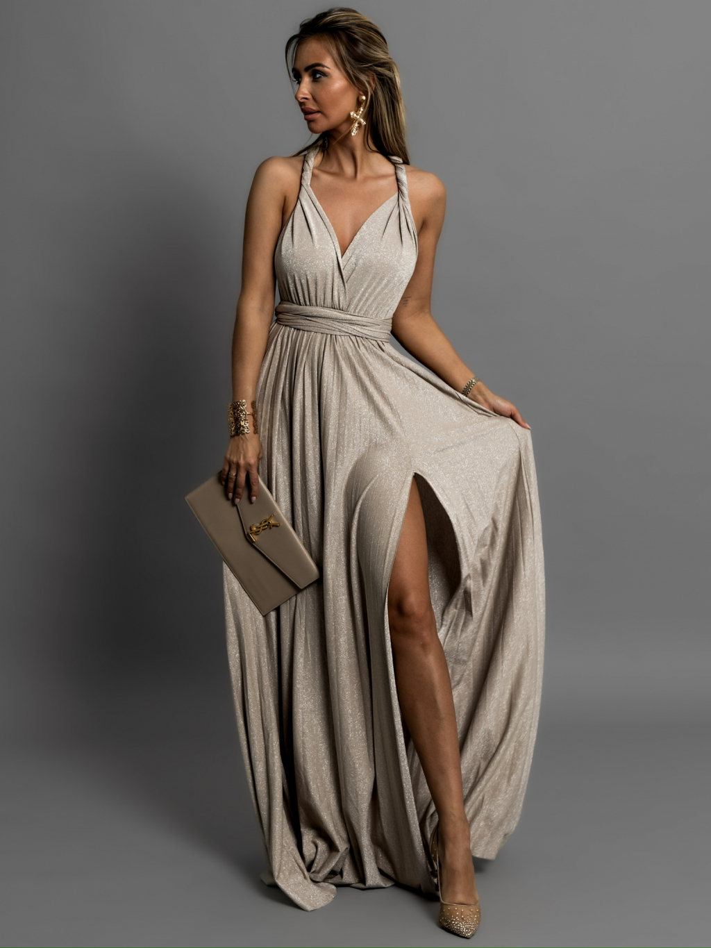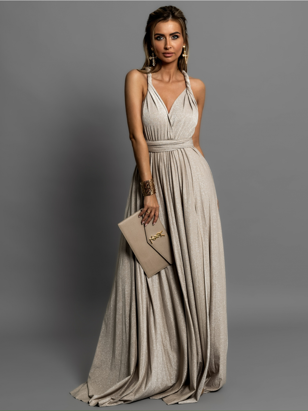 Krémové dlhé variabilné spoločenské šaty CUPAUCA