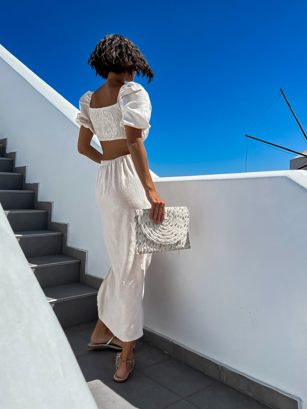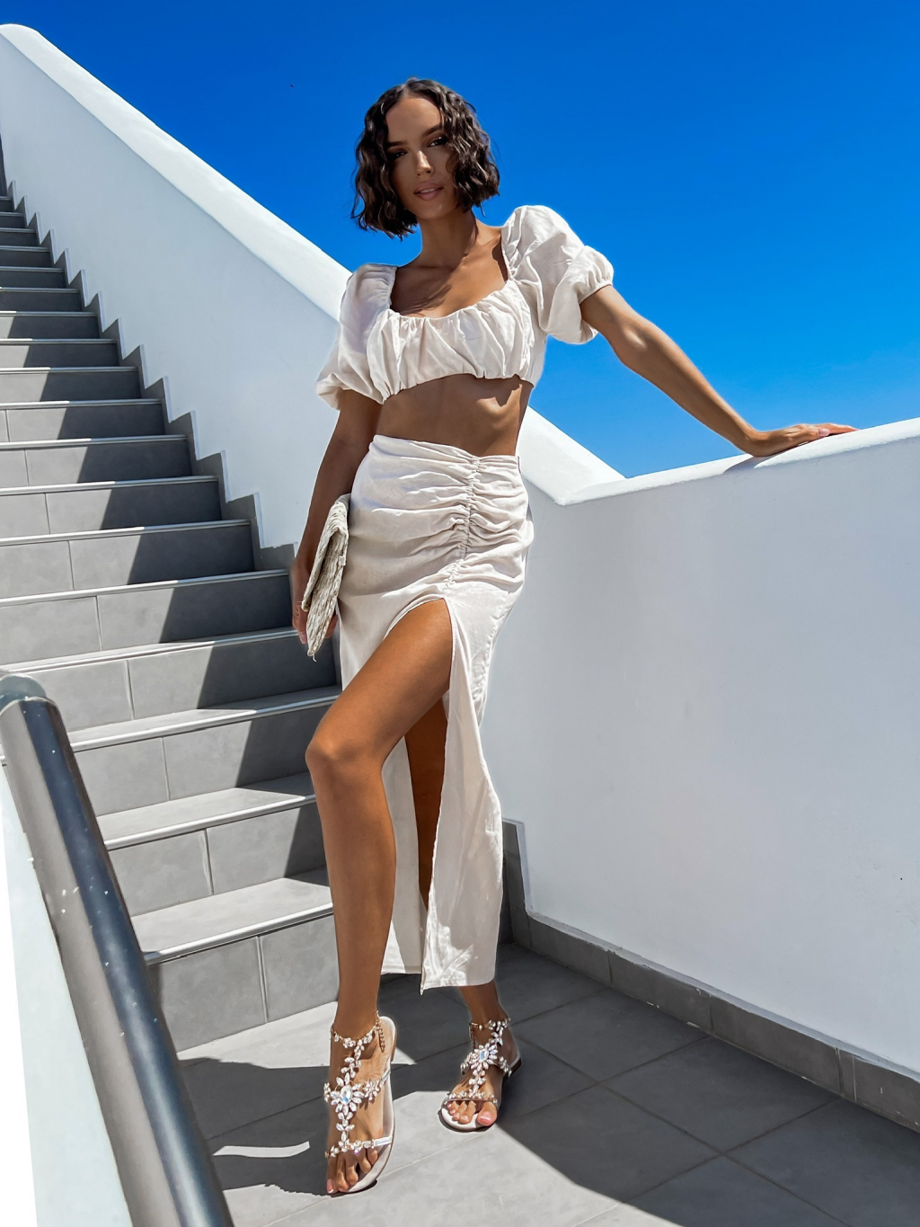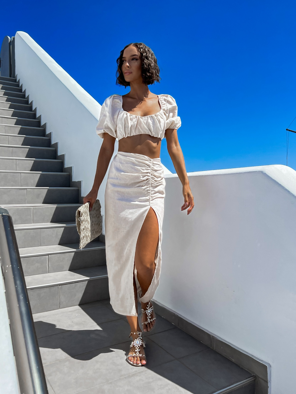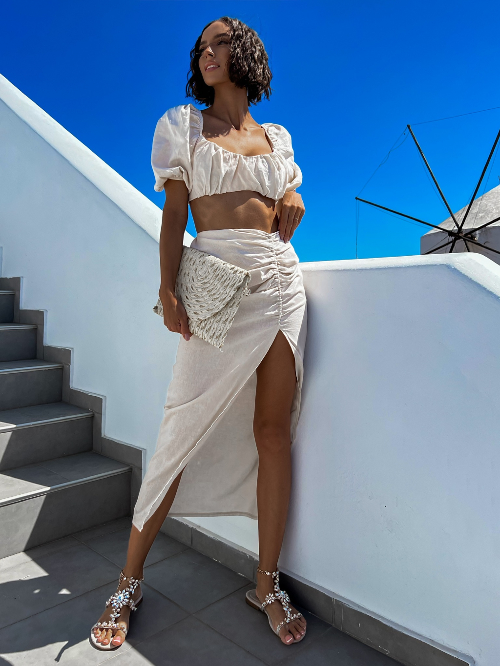 Krémový dvojdielny komplet MILESS s rázporkom