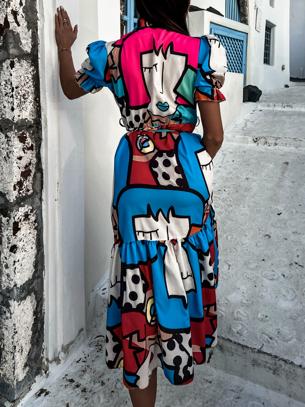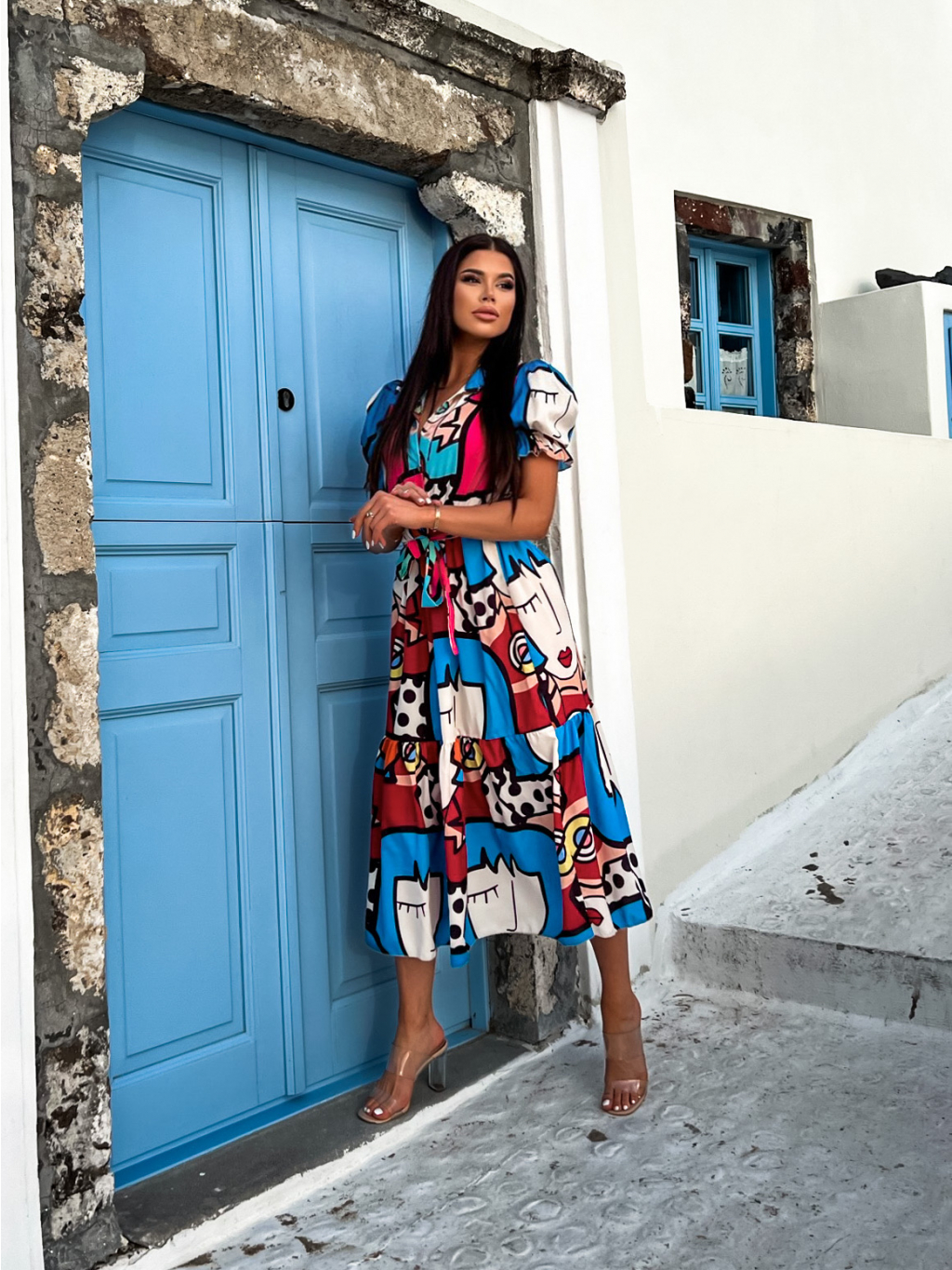 Modré elegantné šaty CYLINDER so zaväzovaním