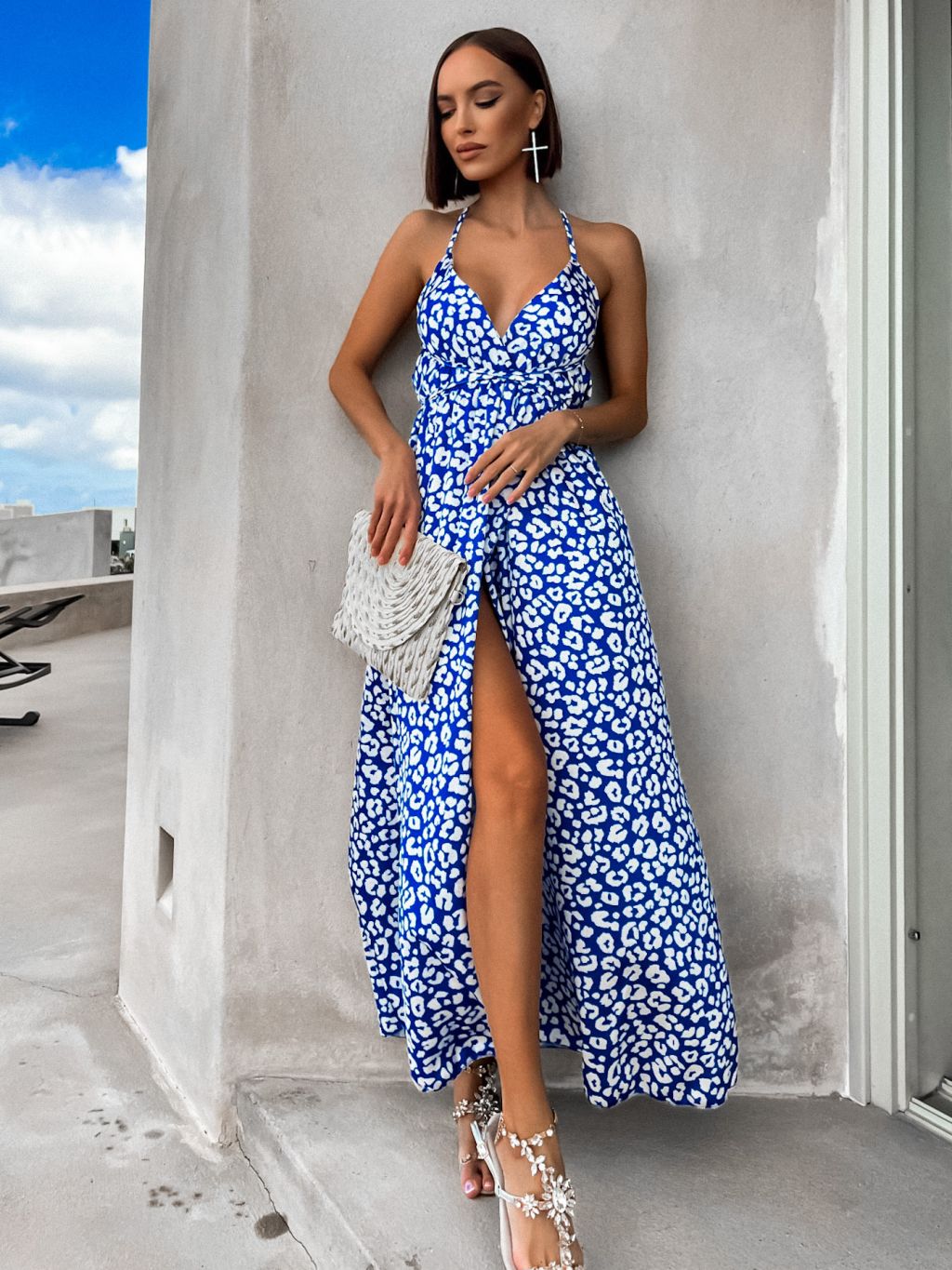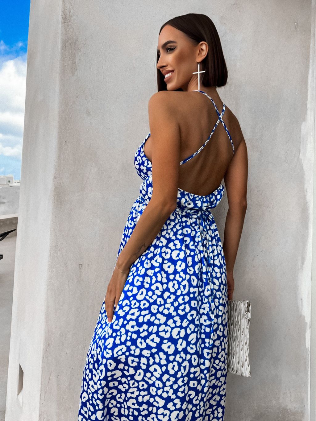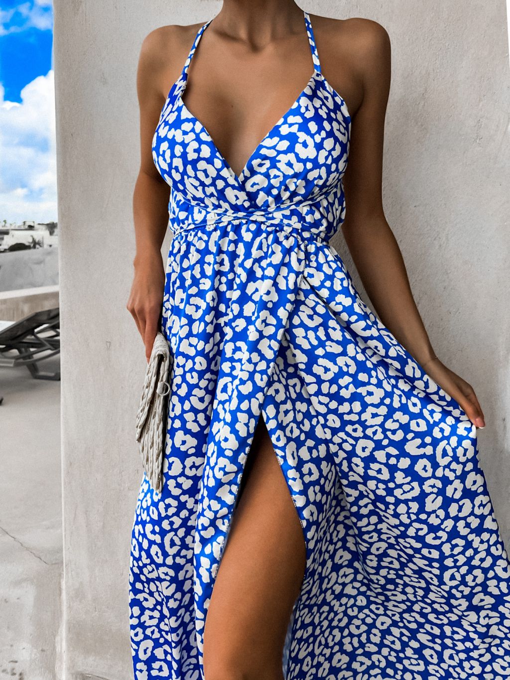 Modré šaty CHEETAHS s gepardím vzorom a rázporkom