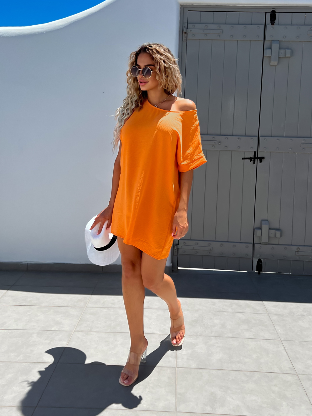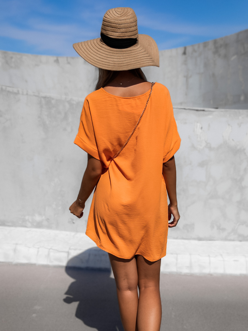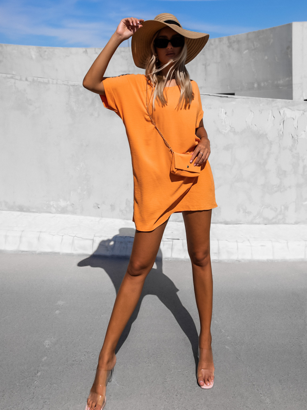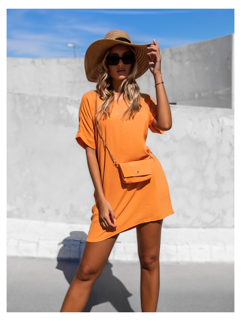 Oranžové jednoduché šaty CAINEN s menšou kabelkou