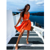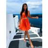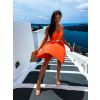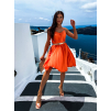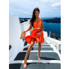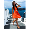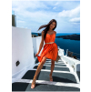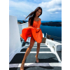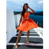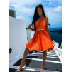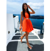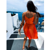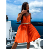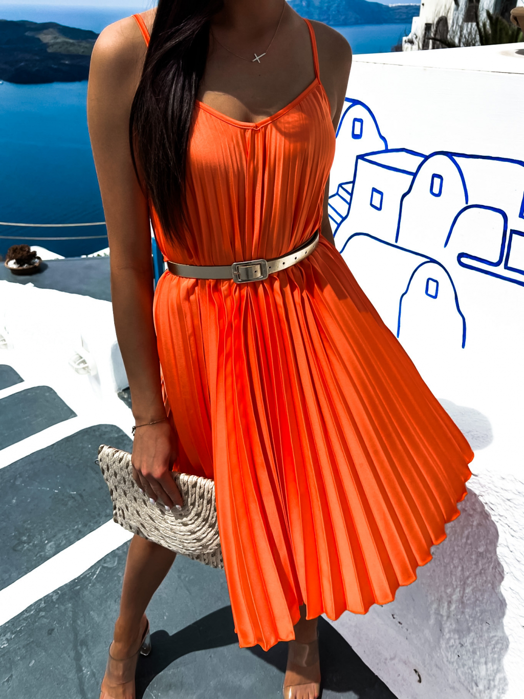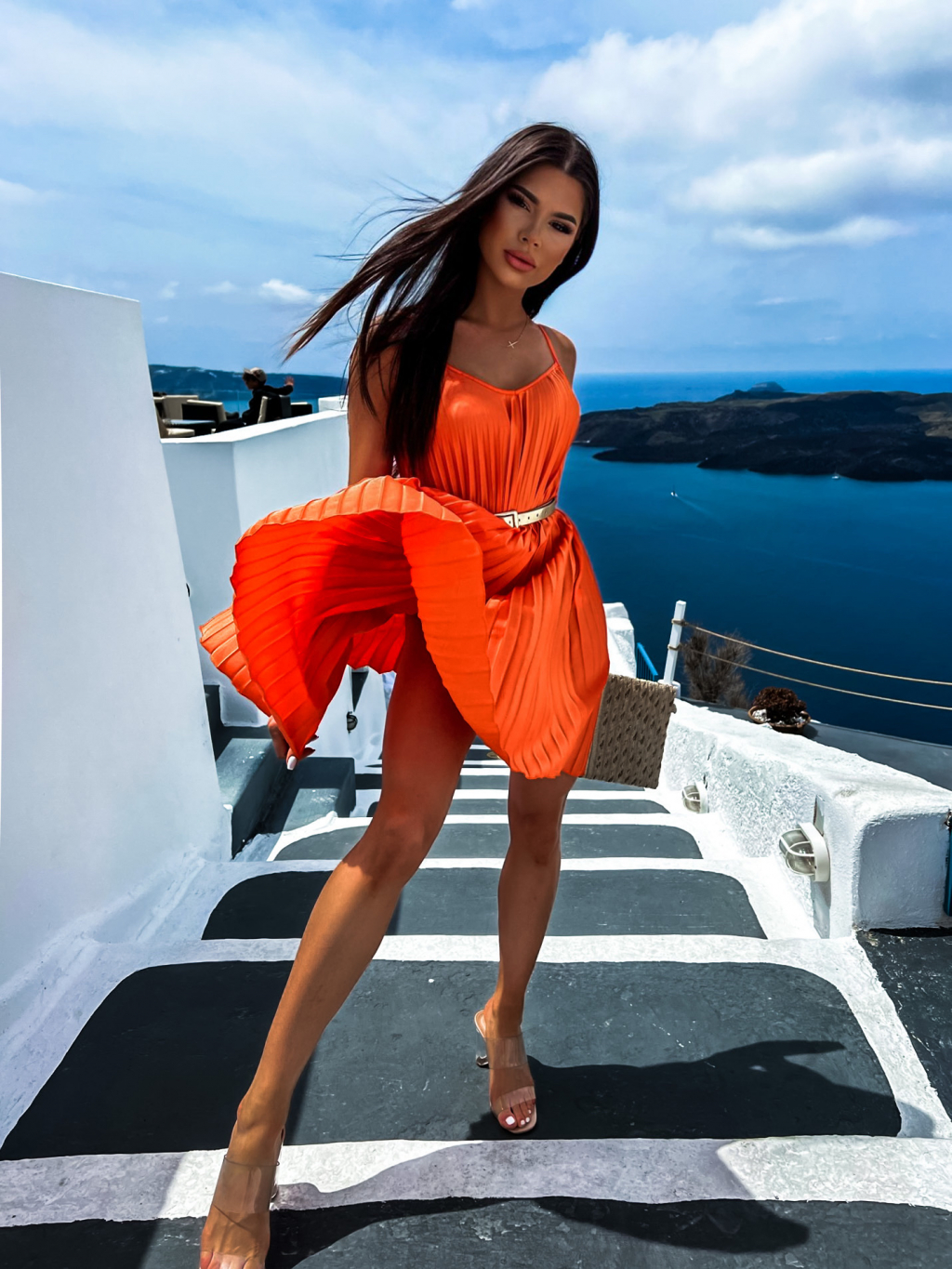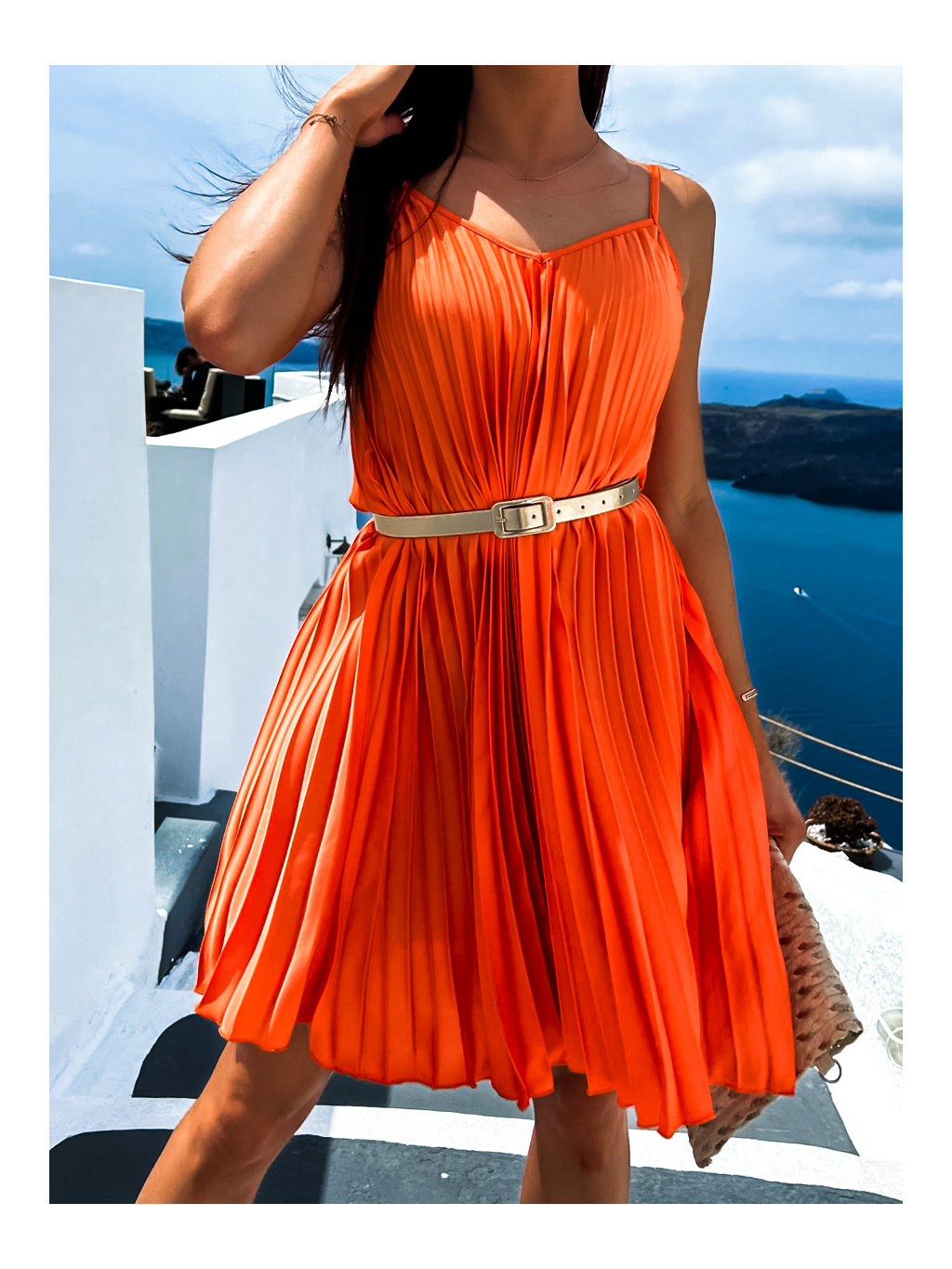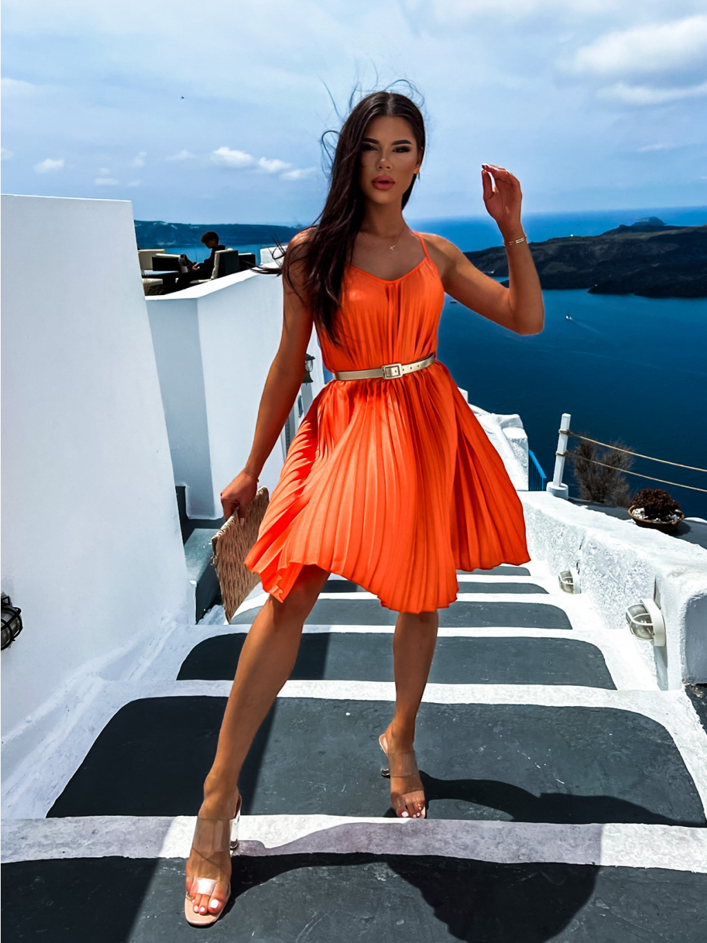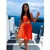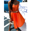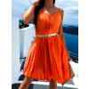 Oranžové lesklé plisované šaty CLAURA so zlatým opaskom