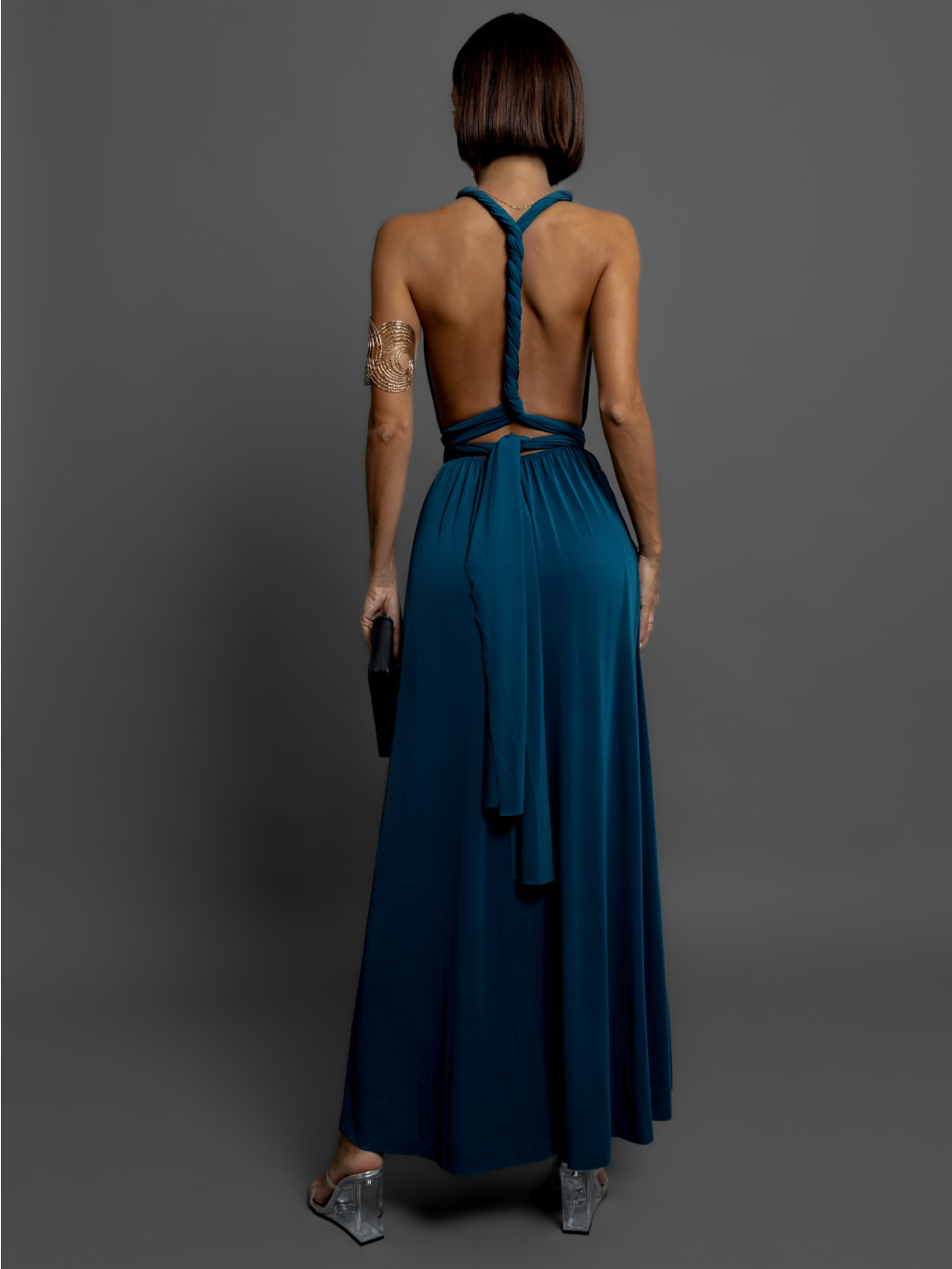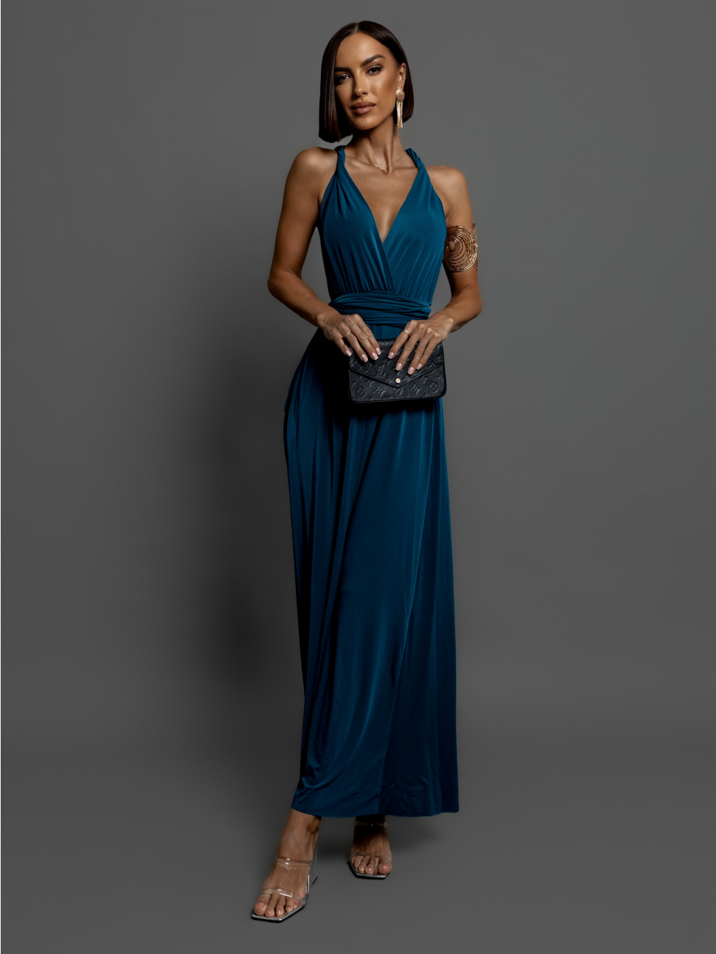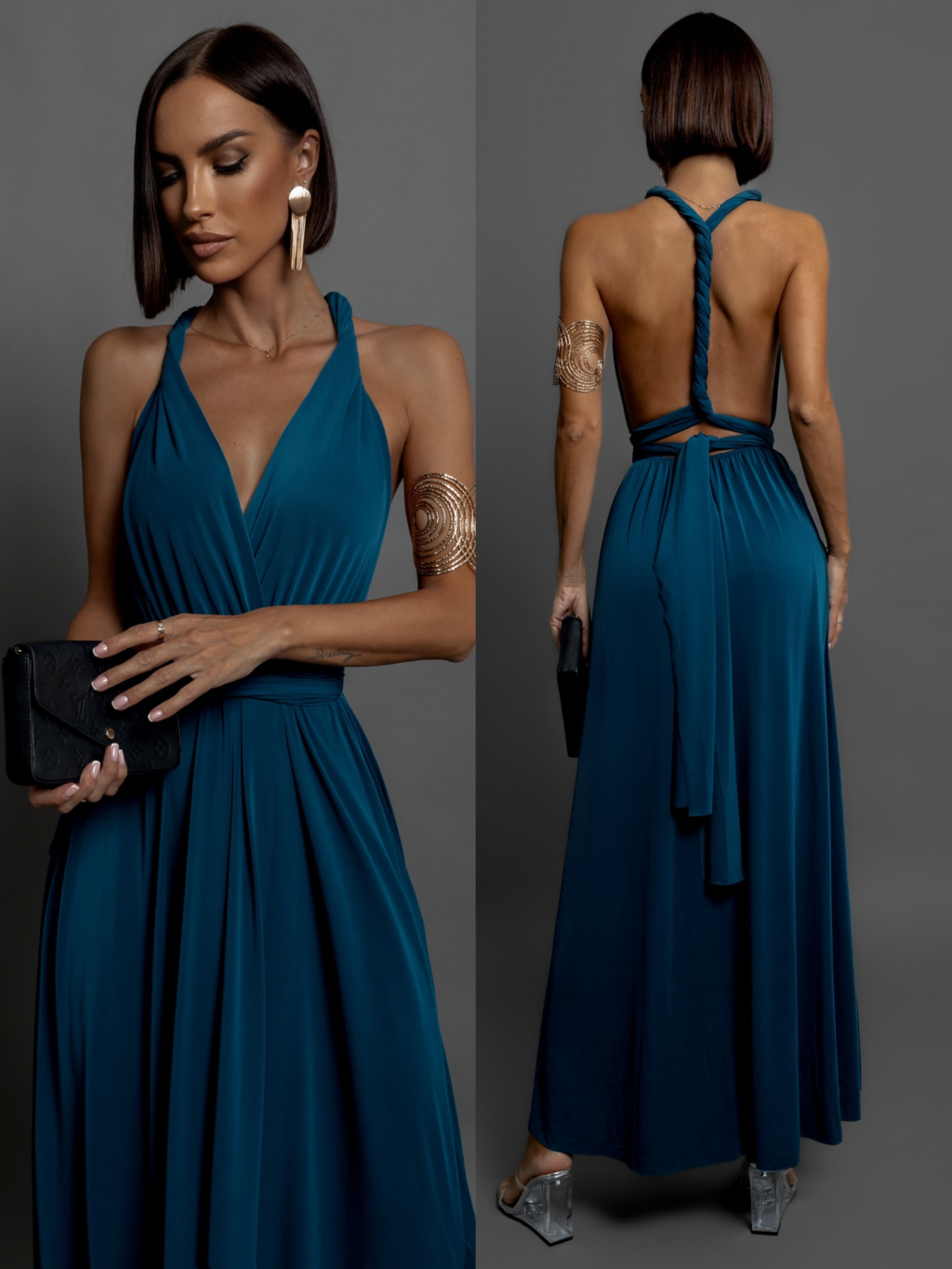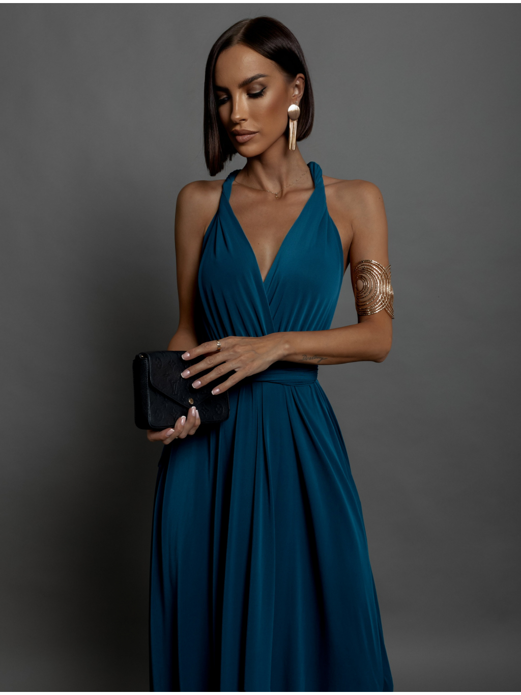 Petrolejové elegantné šaty BEATRICE s viazaním