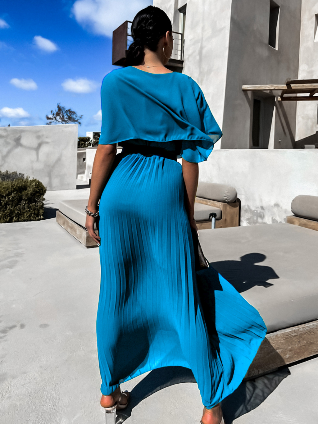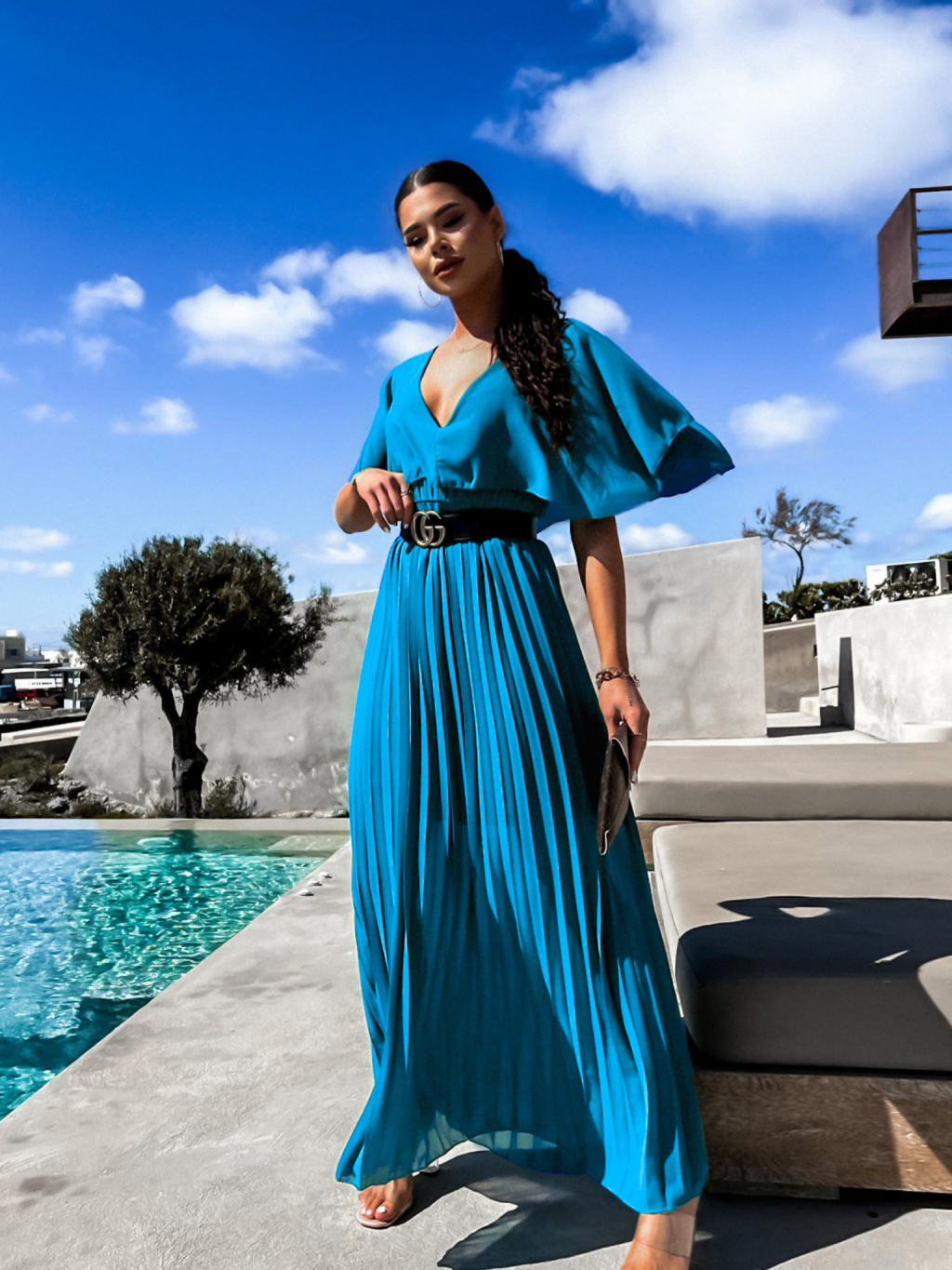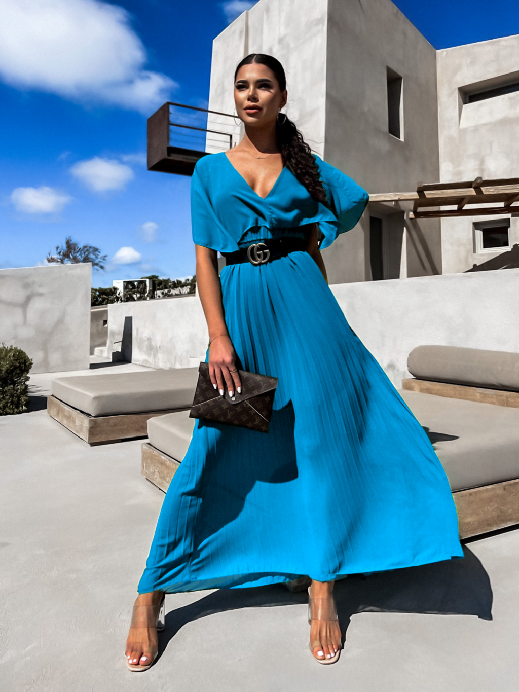 Petrolejové elegantné šaty PARFOMELLE s výstrihom do V