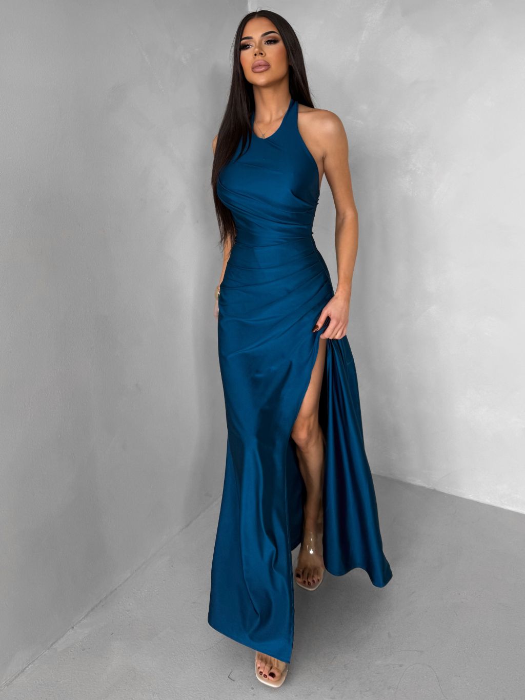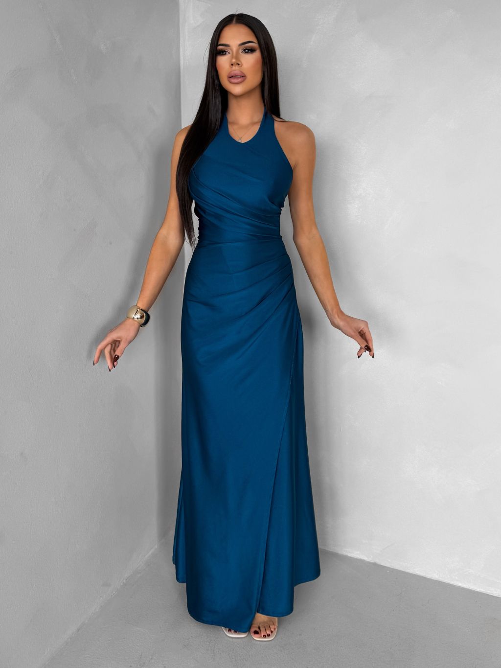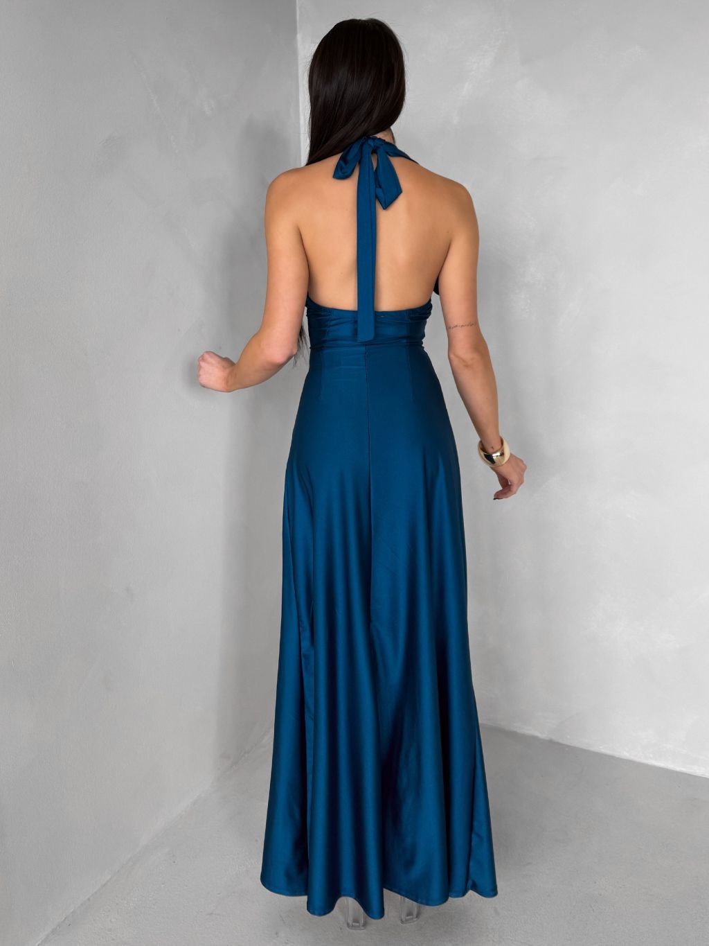 Petrolejové spoločenské dlhé šaty SYVONA