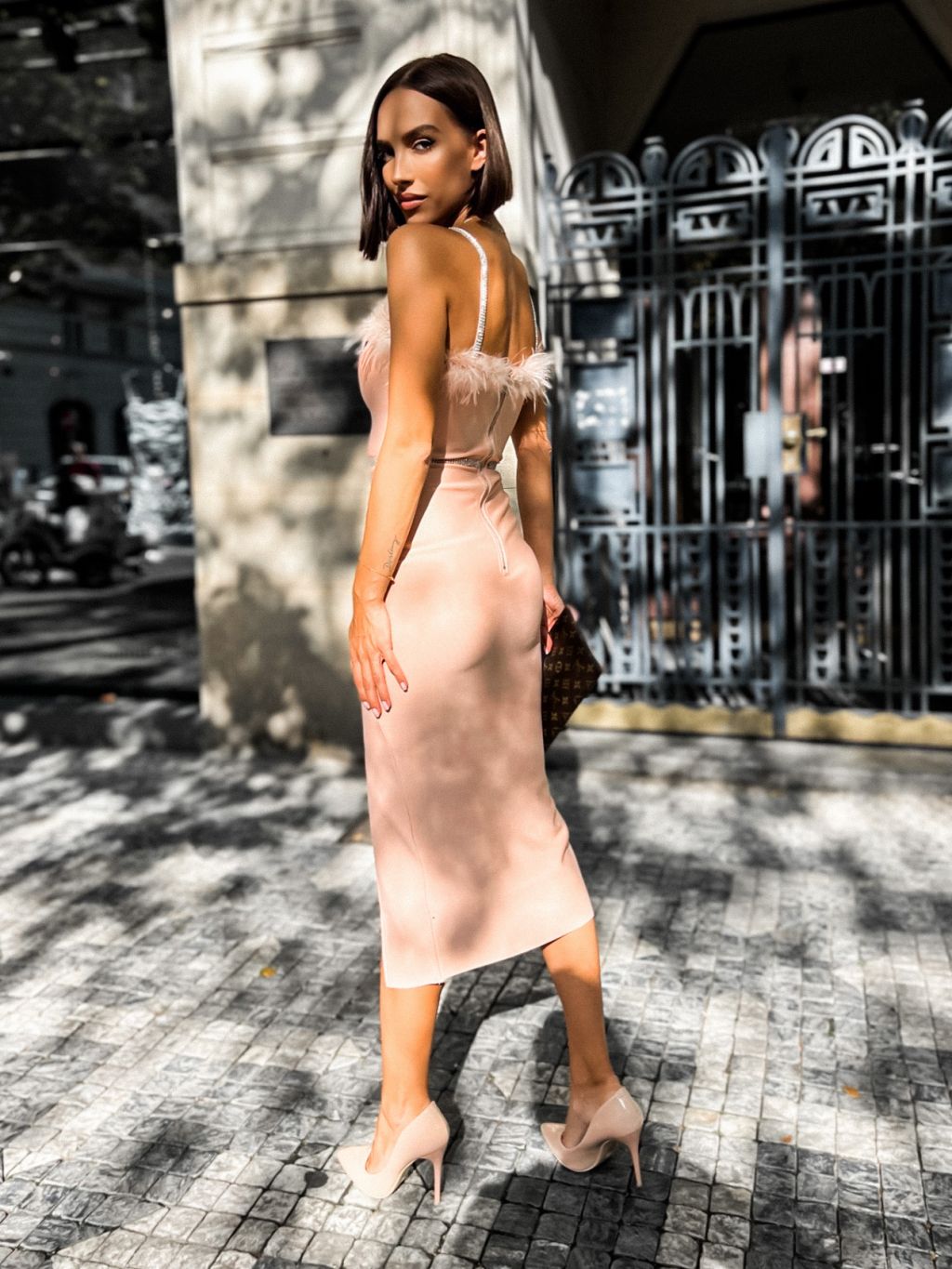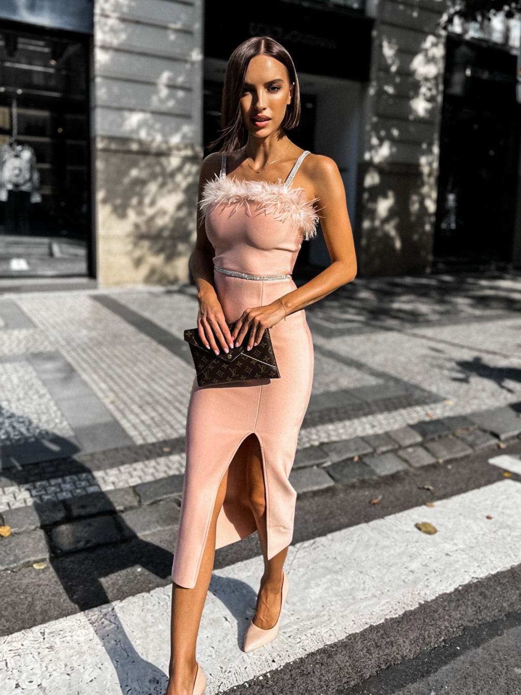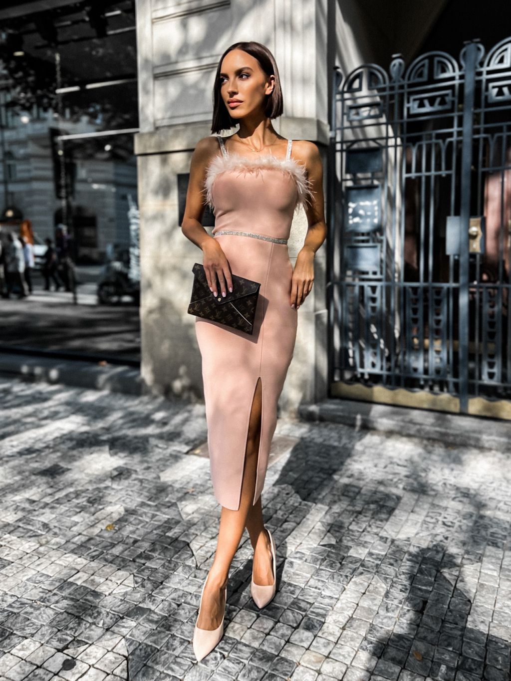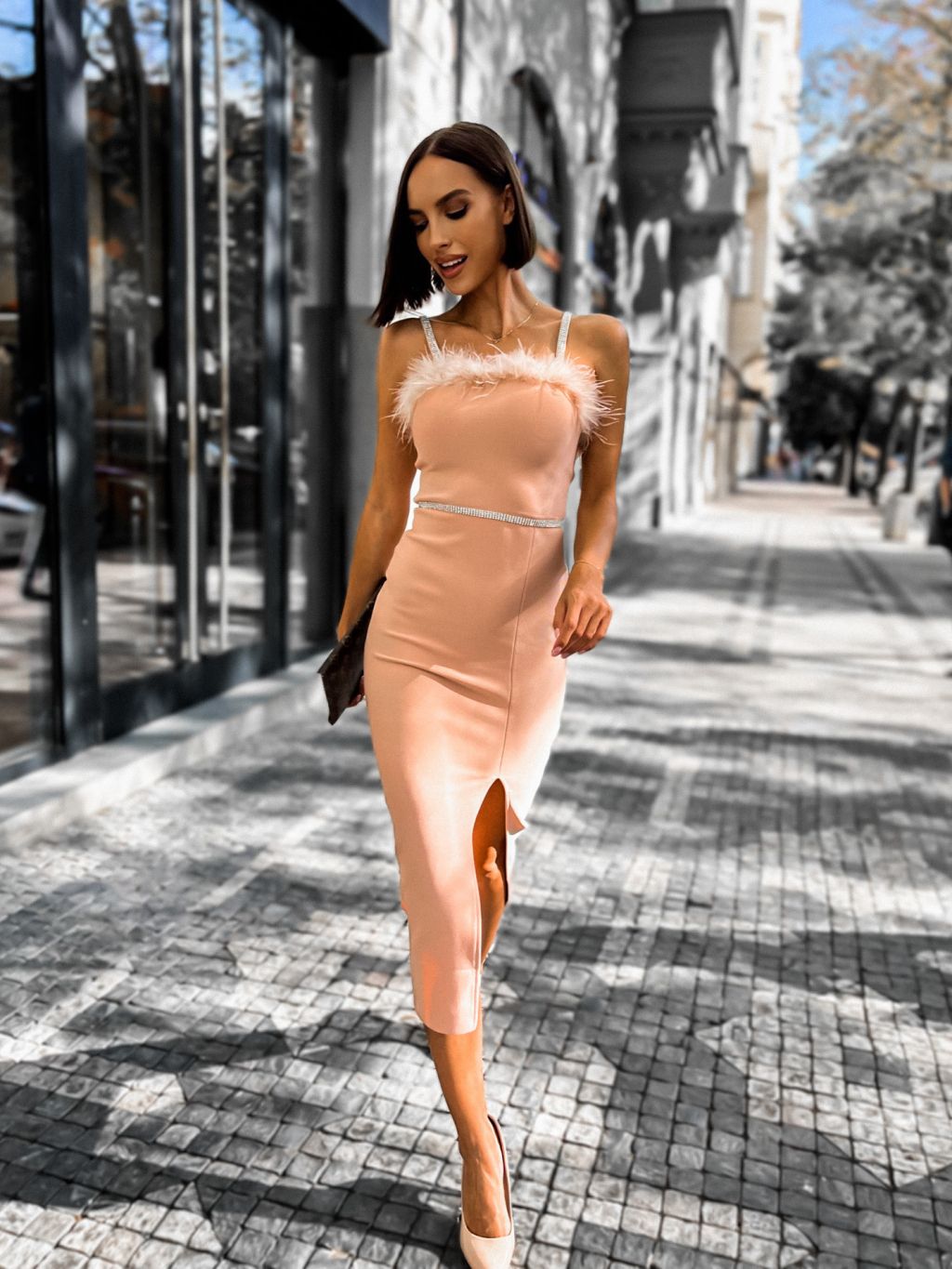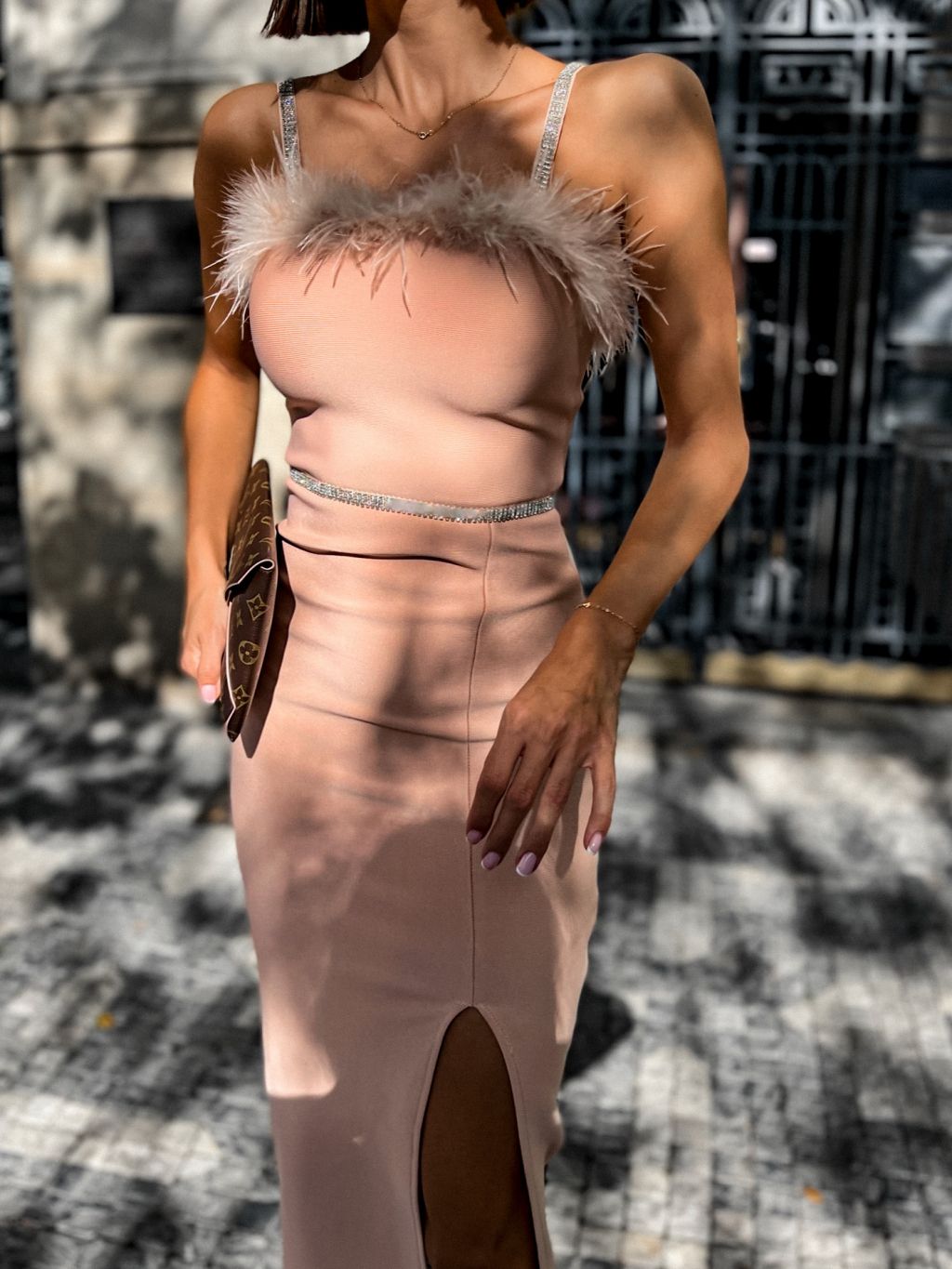 Ružové elegantné šaty MELLI s pierkami