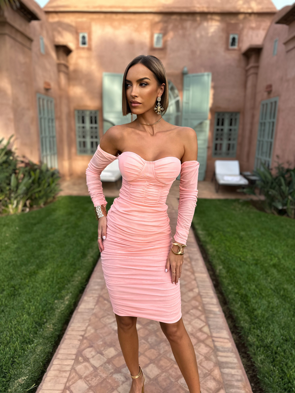 Ružové koktailové korzetové šaty ROSLYN s riasením