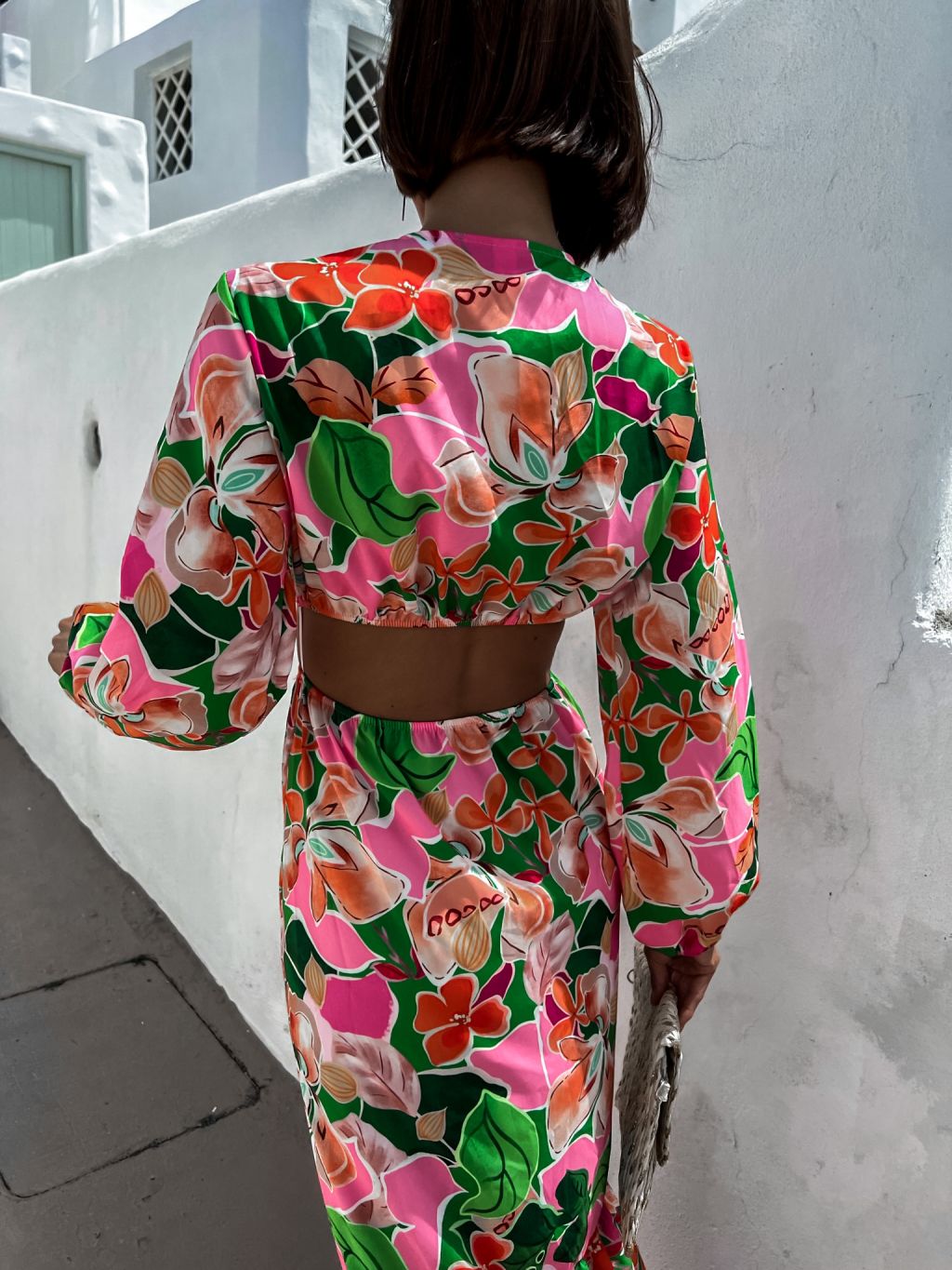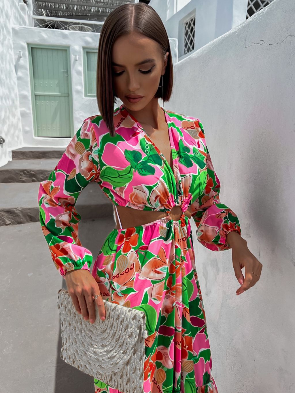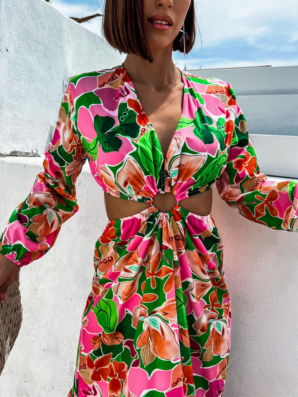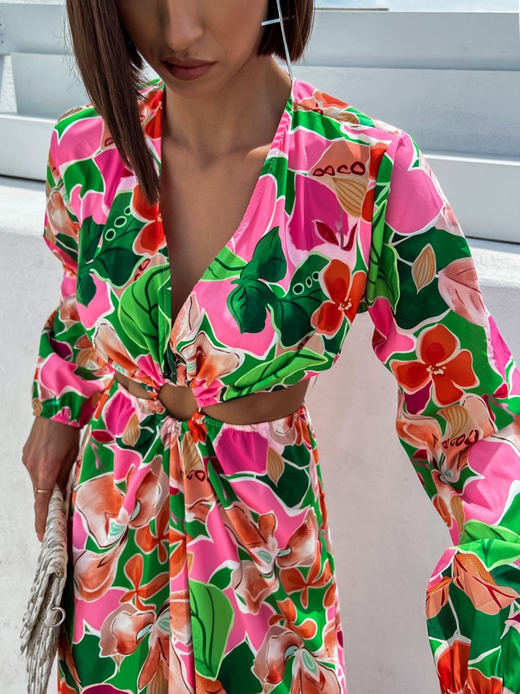 Ružové kvetované šaty STAINLESS s prestrihmi