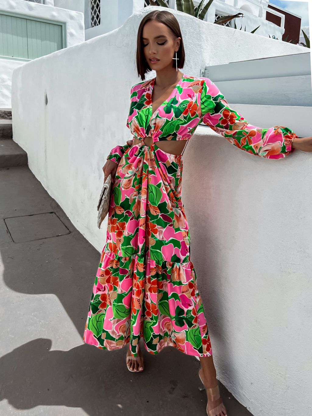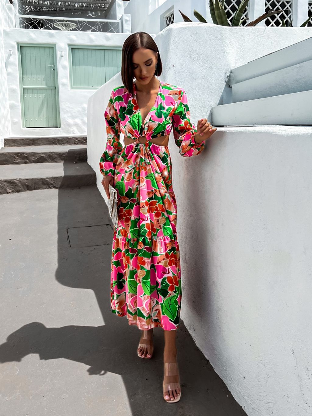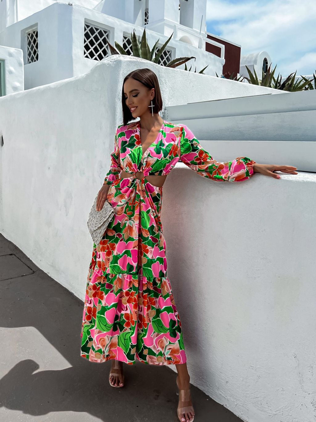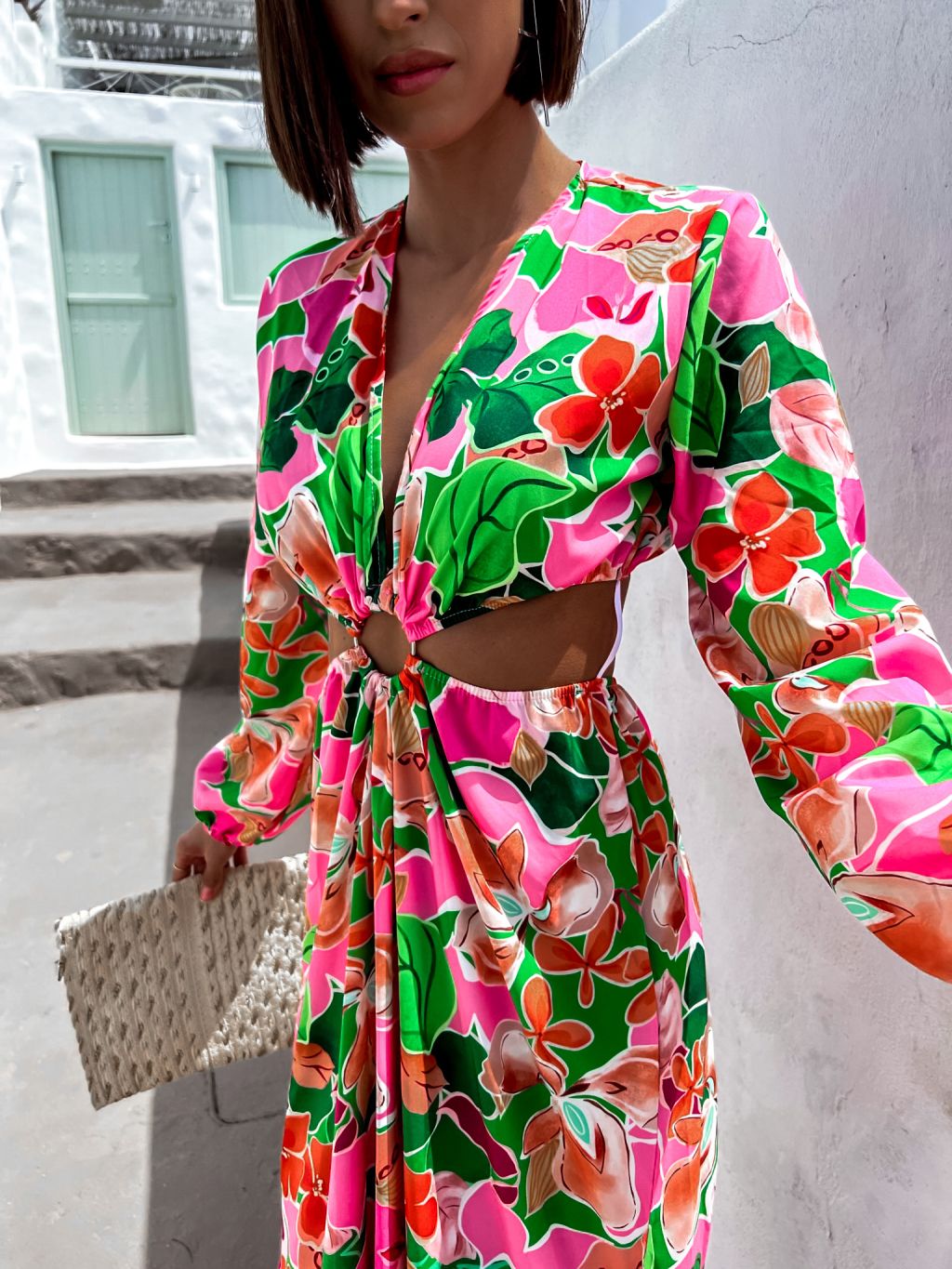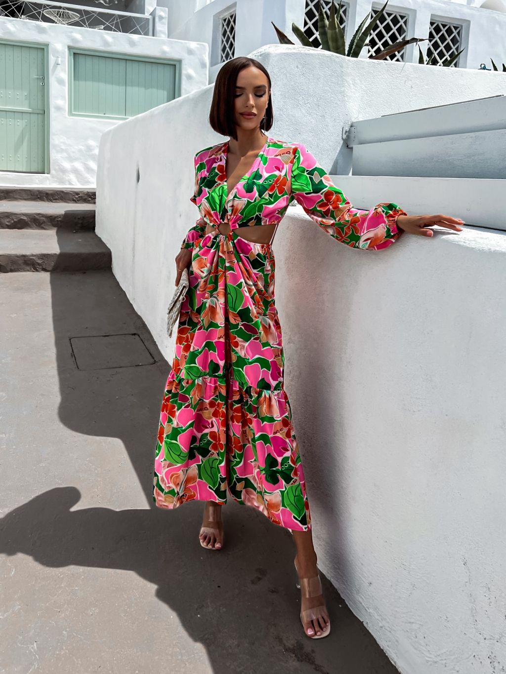 Ružové kvetované šaty STAINLESS s prestrihmi