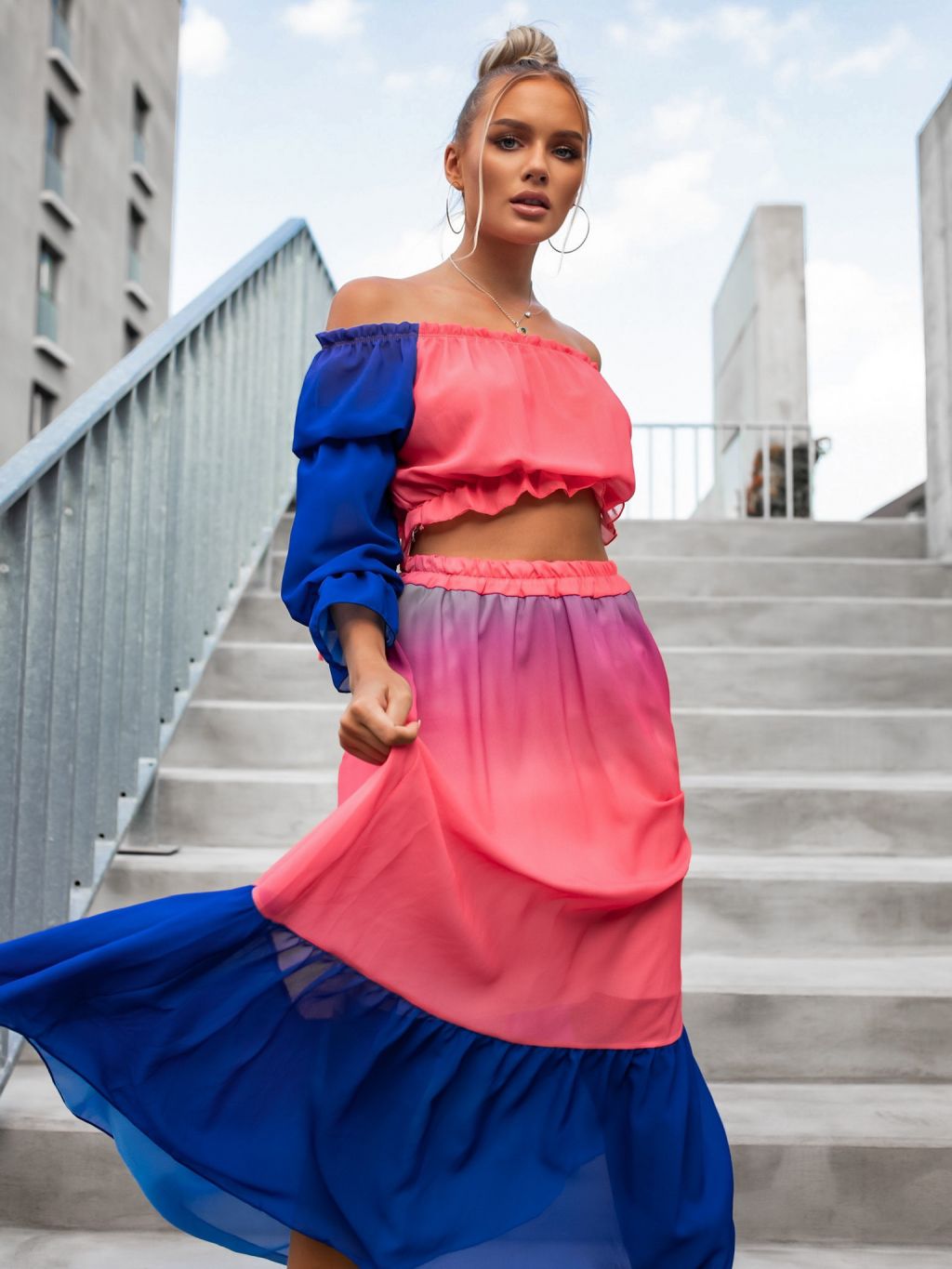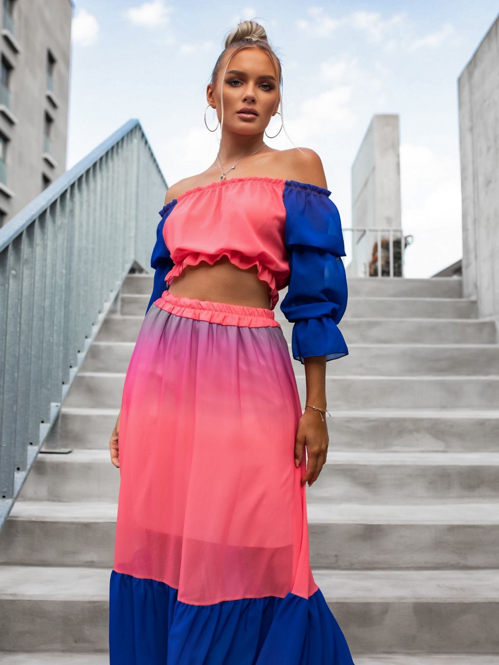 Ružovomodrý dvojdielny ombré komplet EMMELINE