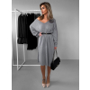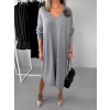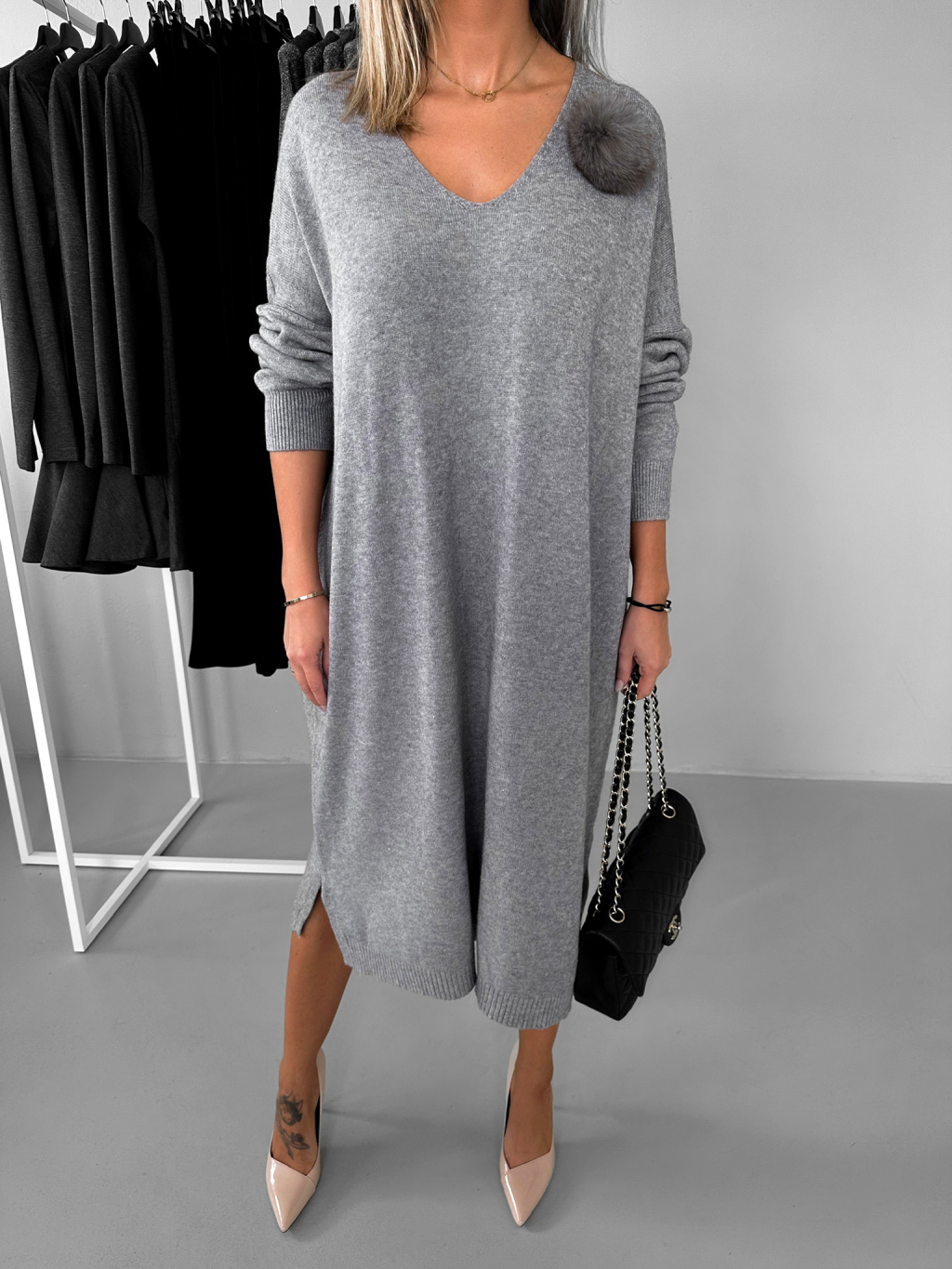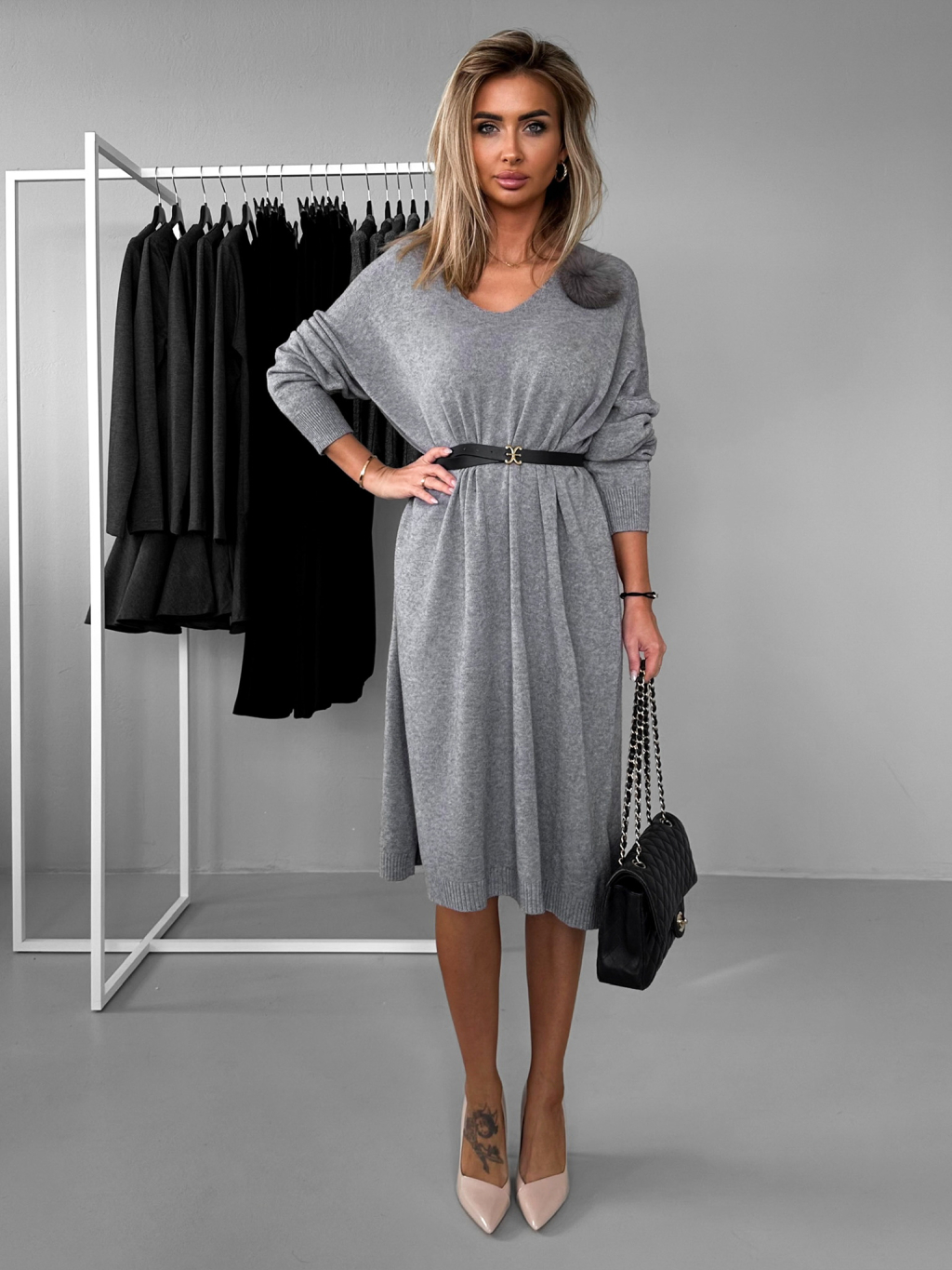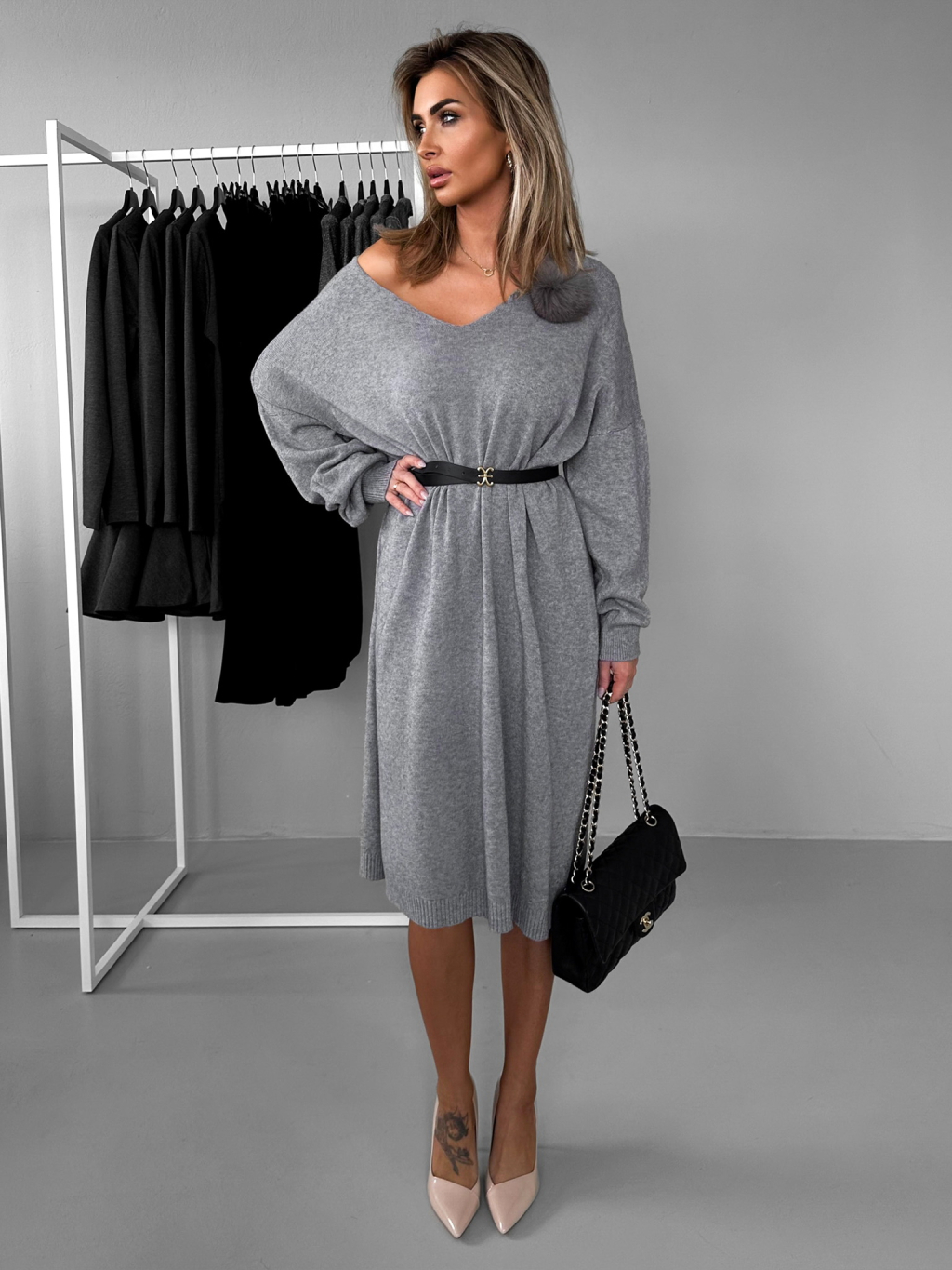 Šedé dlhé oversize svetrové šaty AUDREY s brošňou