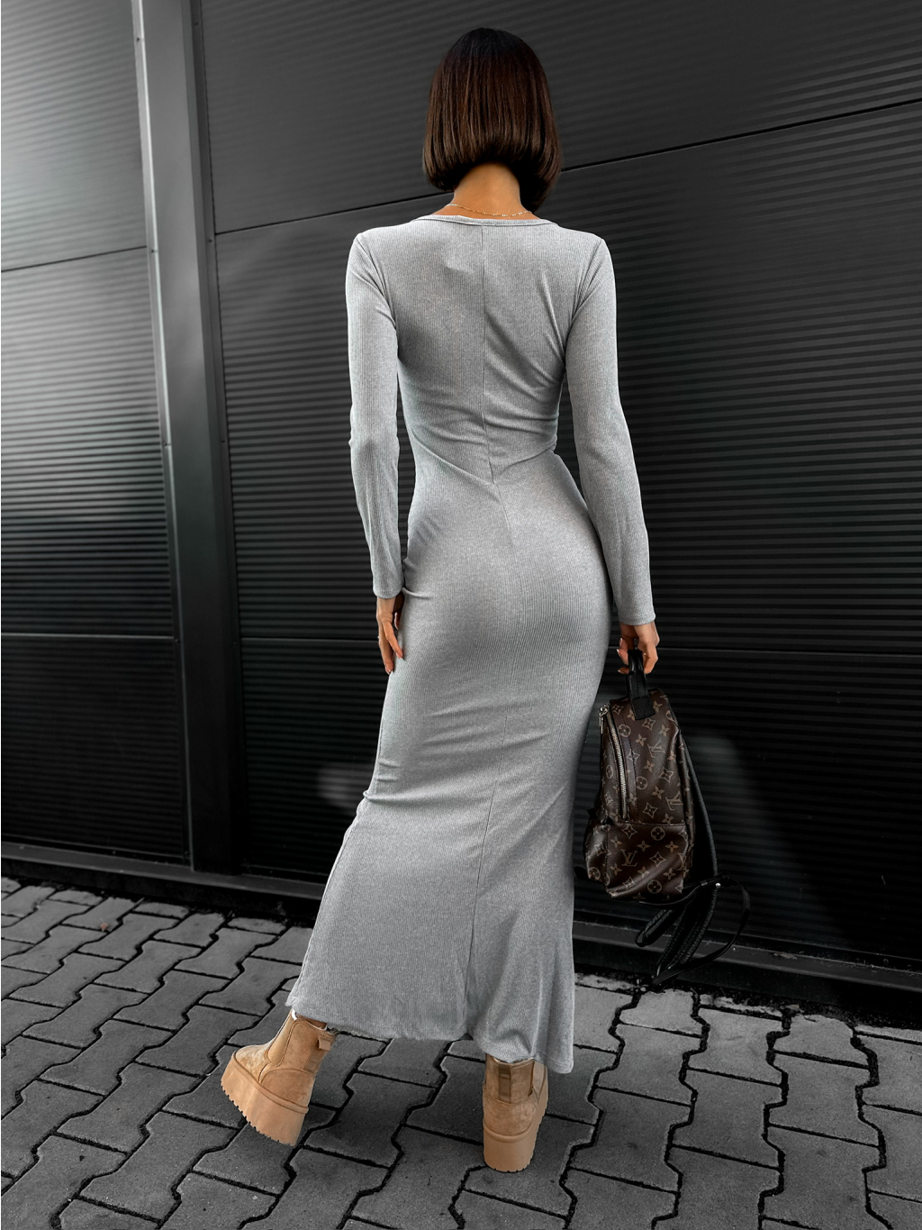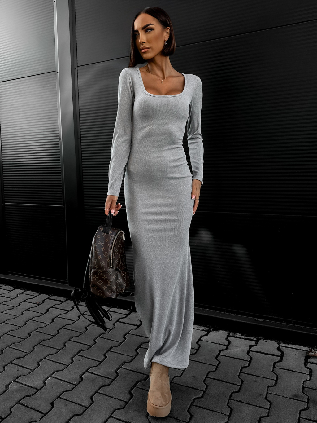 Šedé džersejové šaty GIRESUN s dlhým rukávom