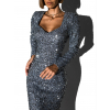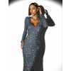 Šedé plesové trblietavé šaty HARUTO s flitrami