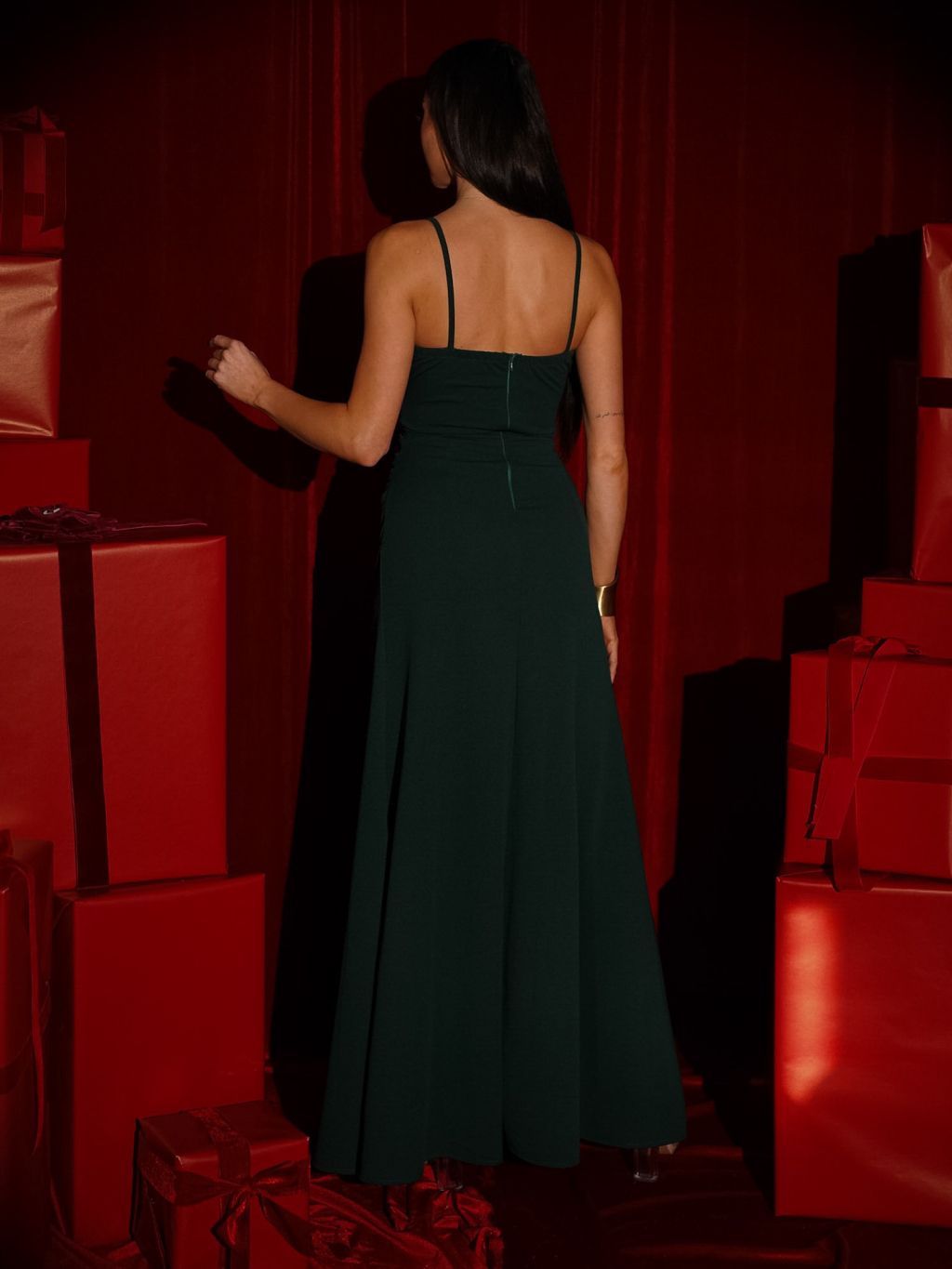 Smaragdové spoločenské dlhé šaty SANQULA na ramienka