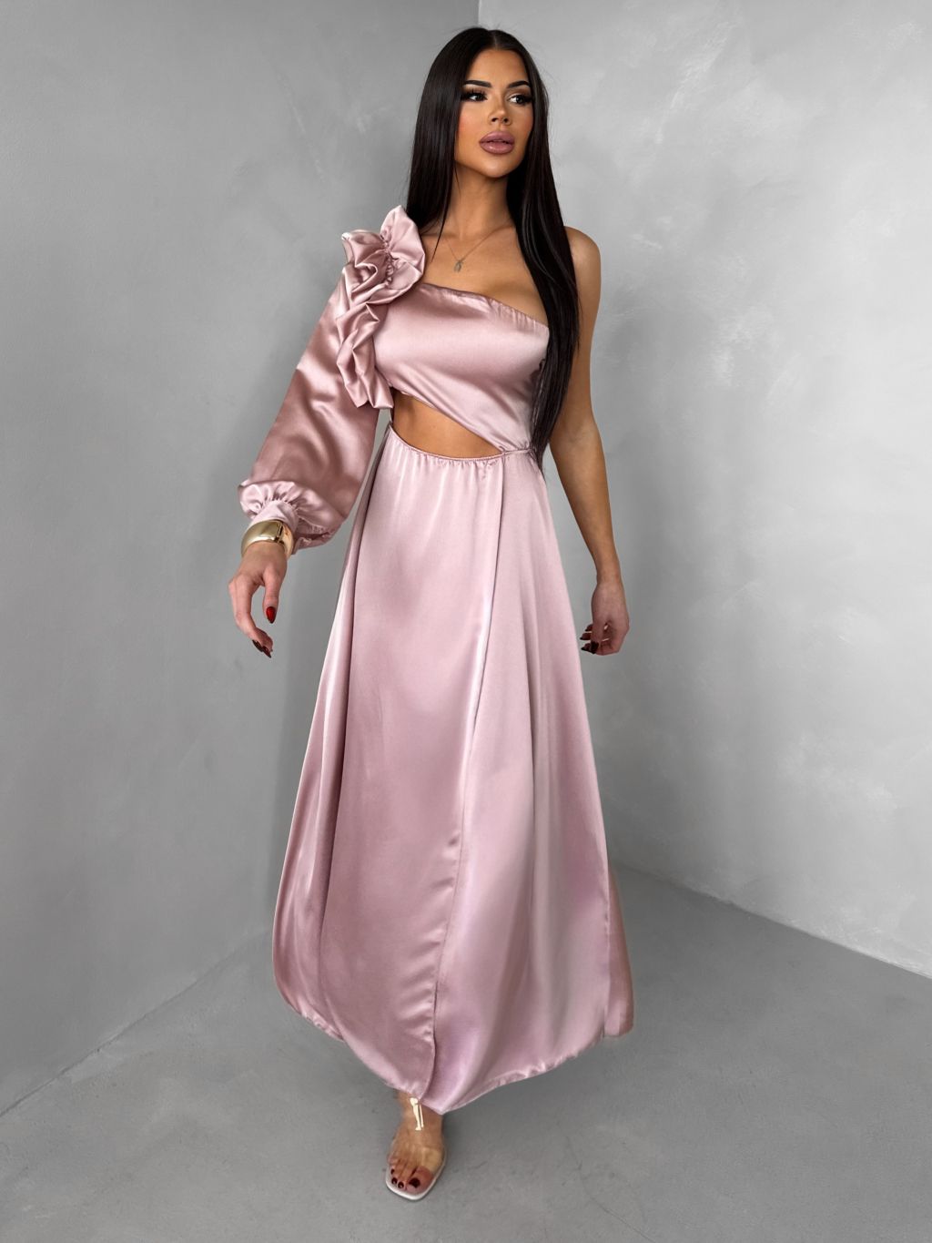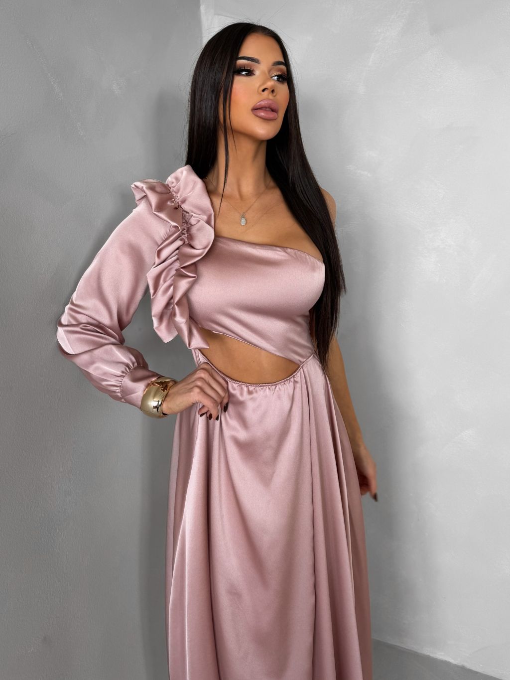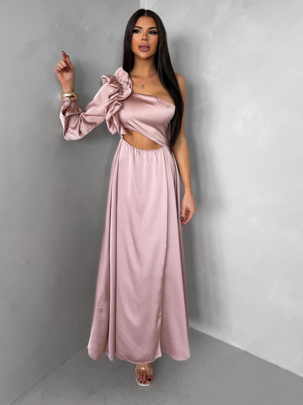 Staroružové dlhé plesové saténové šaty ZAYVIX