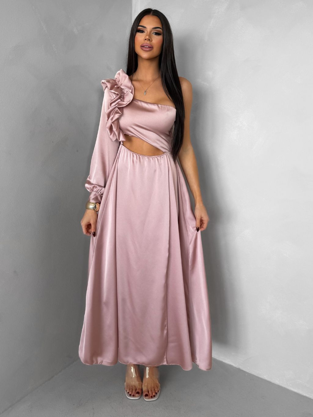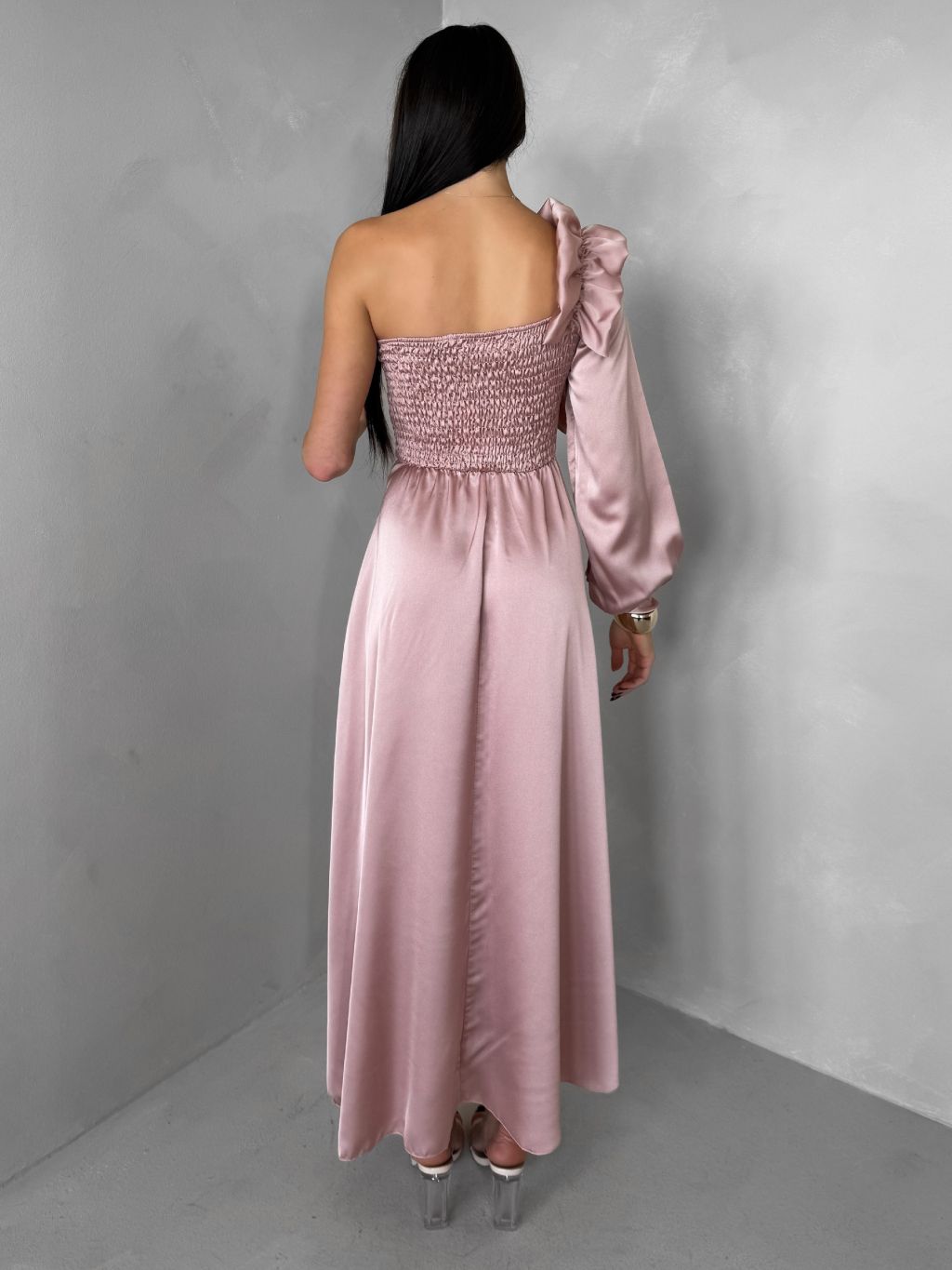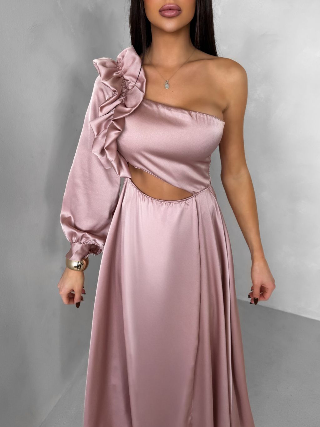Staroružové dlhé plesové saténové šaty ZAYVIX