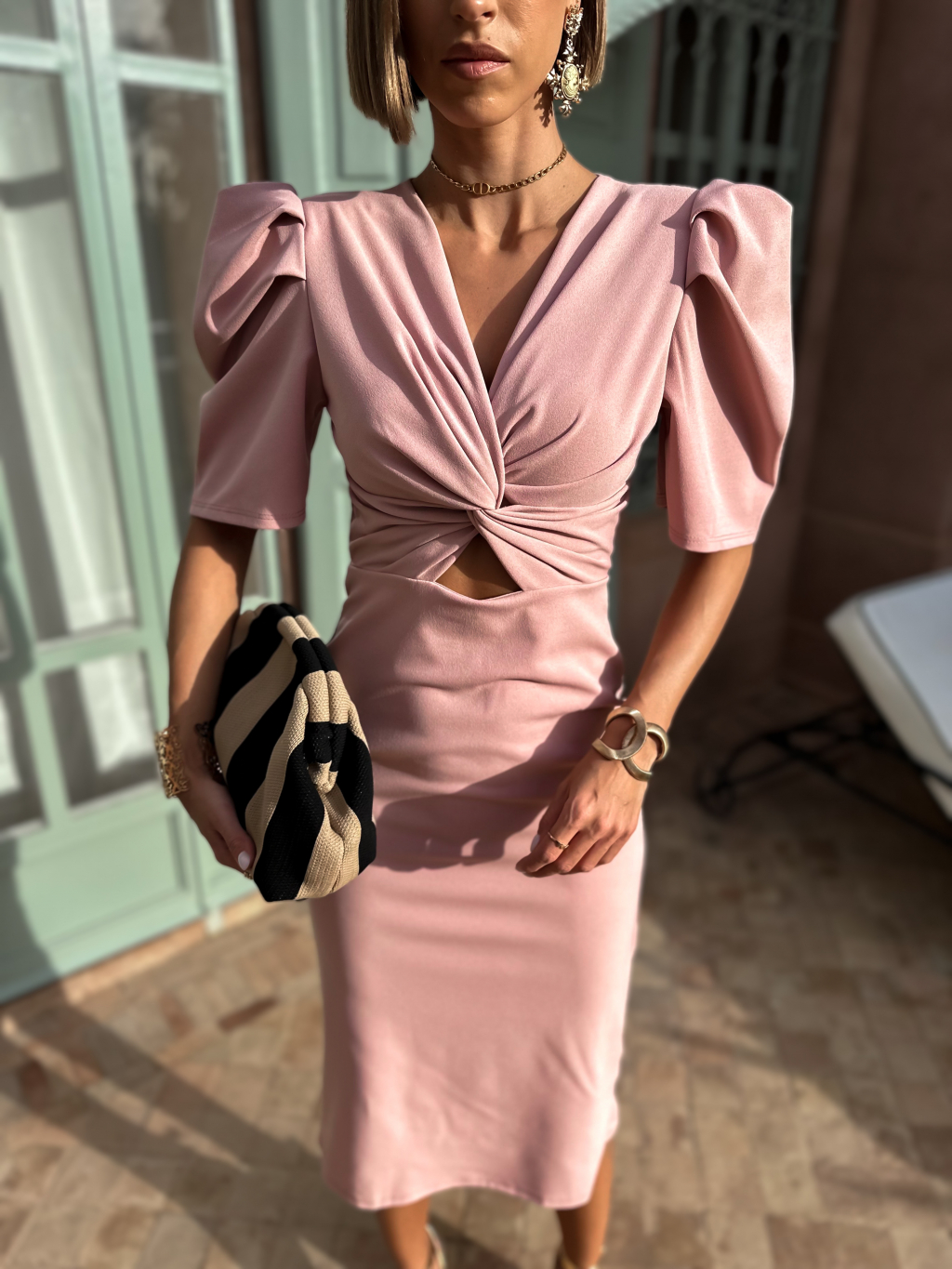 Staroružové midi elegantné šaty TOLAR s prestrihom