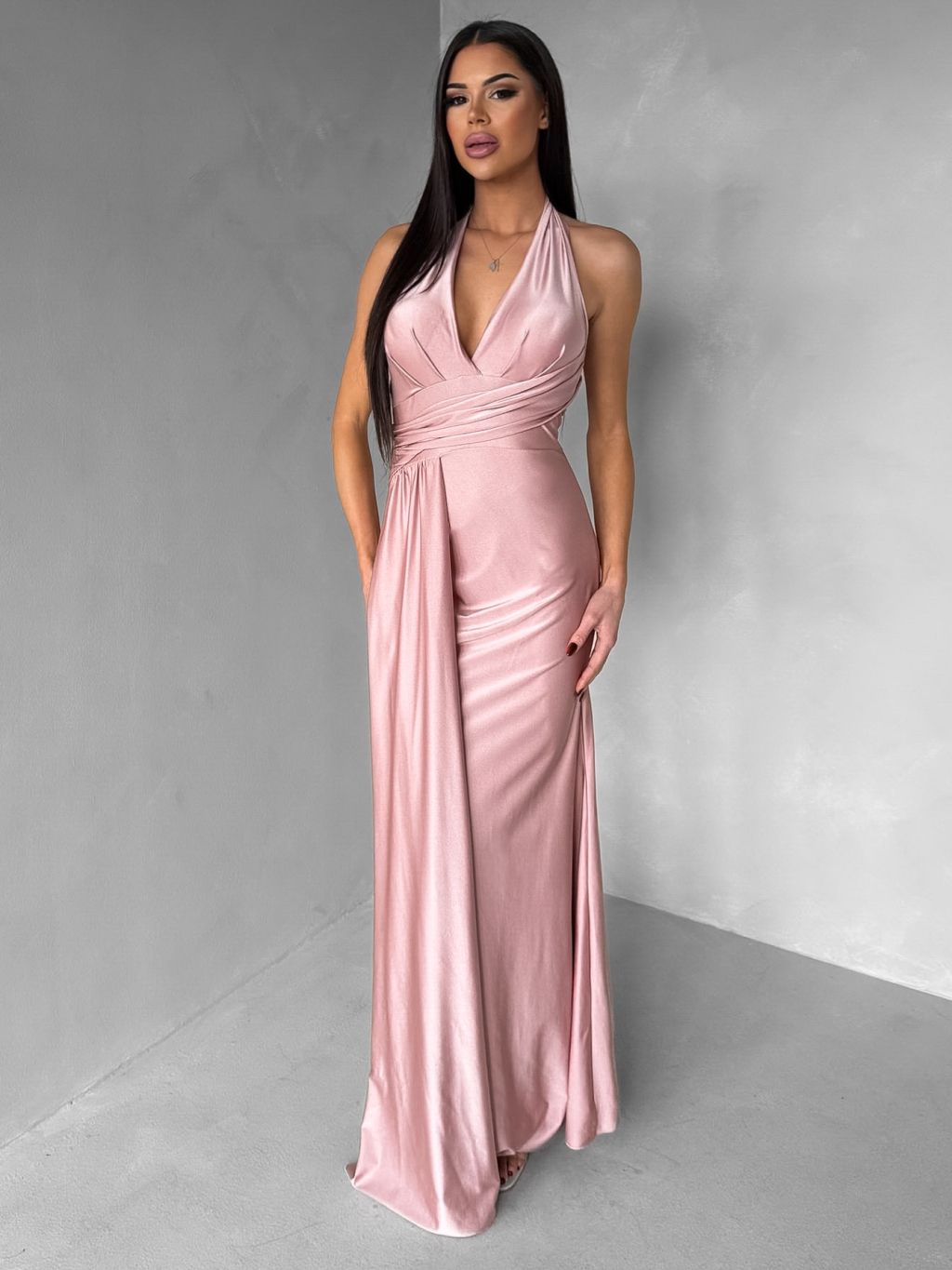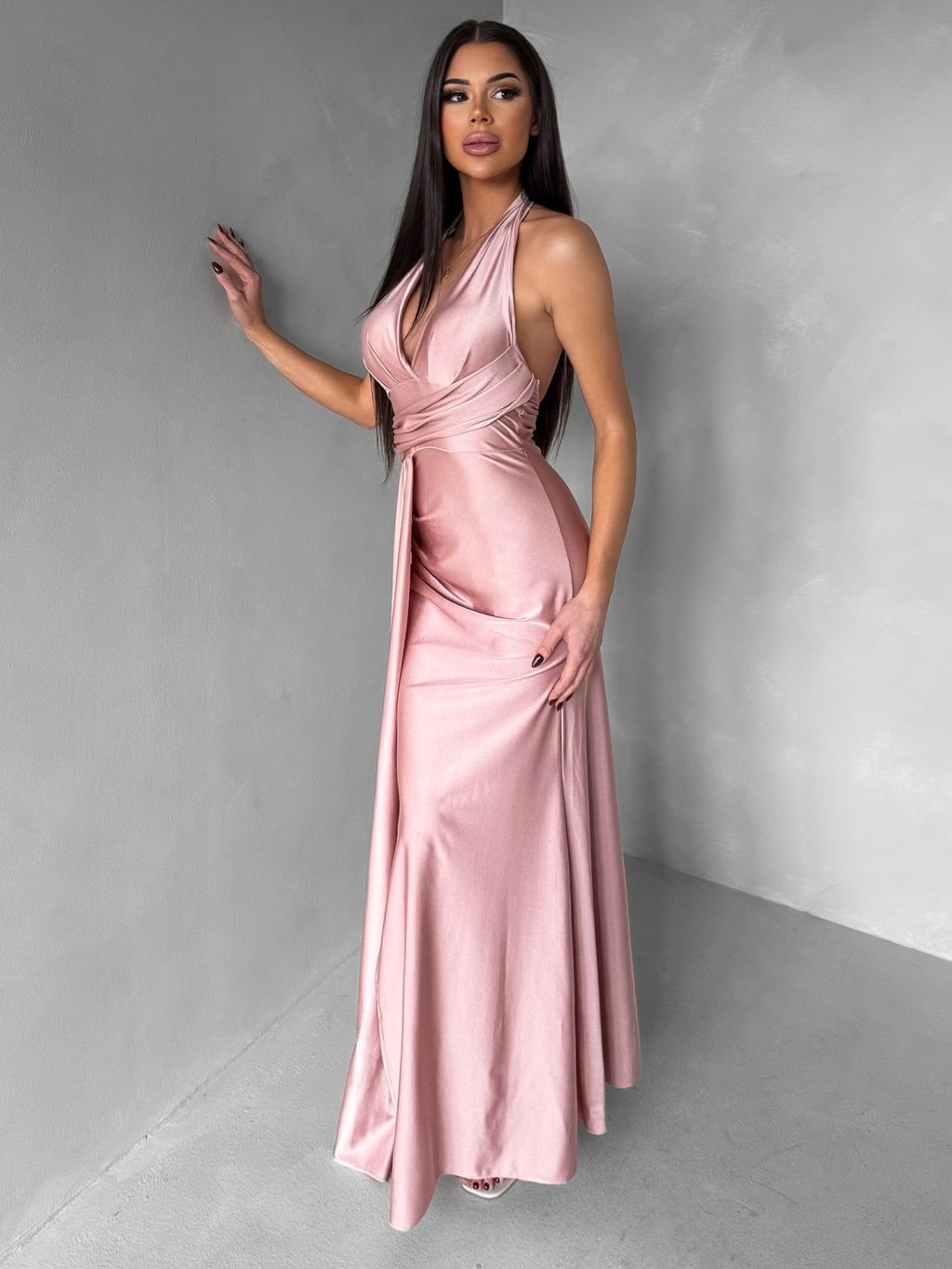 Staroružové saténové dlhé spoločenské šaty CELESTIA