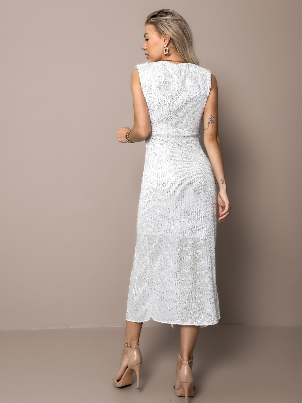 Strieborné koktailové šaty CHORILAT s flitrami