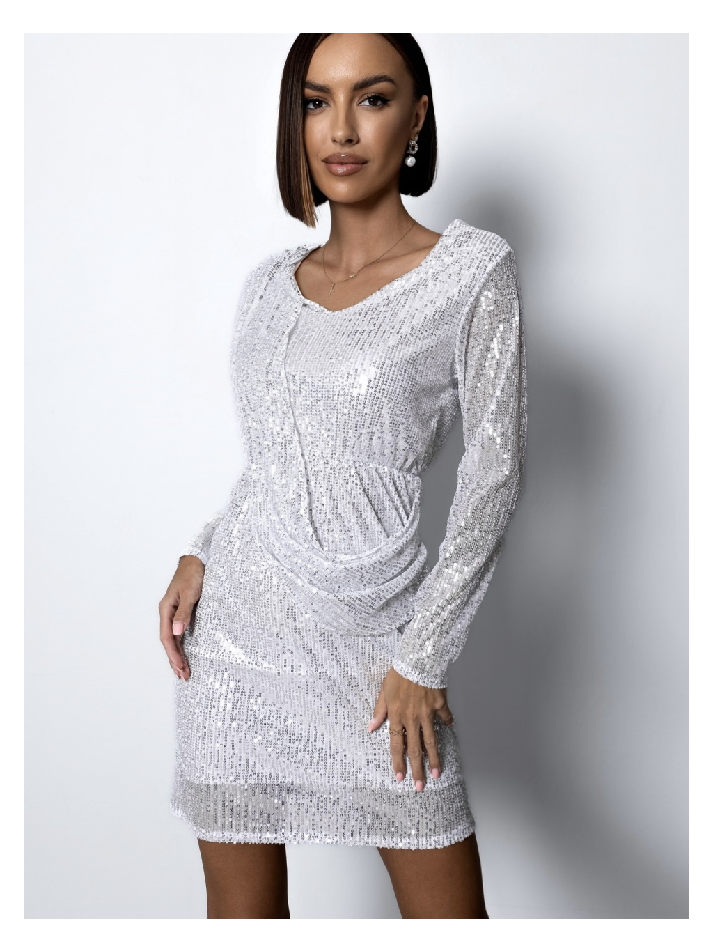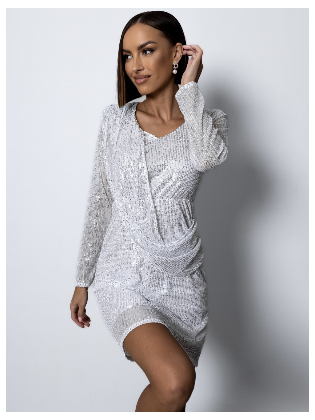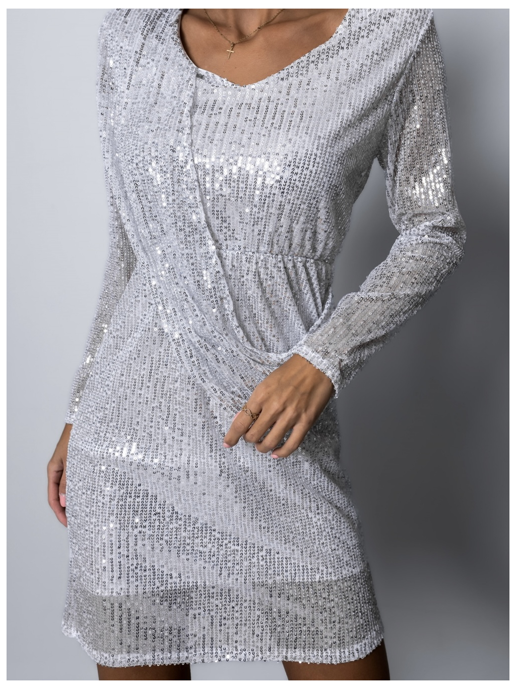 Strieborné trblietavé šaty EFIALTES s flitrami