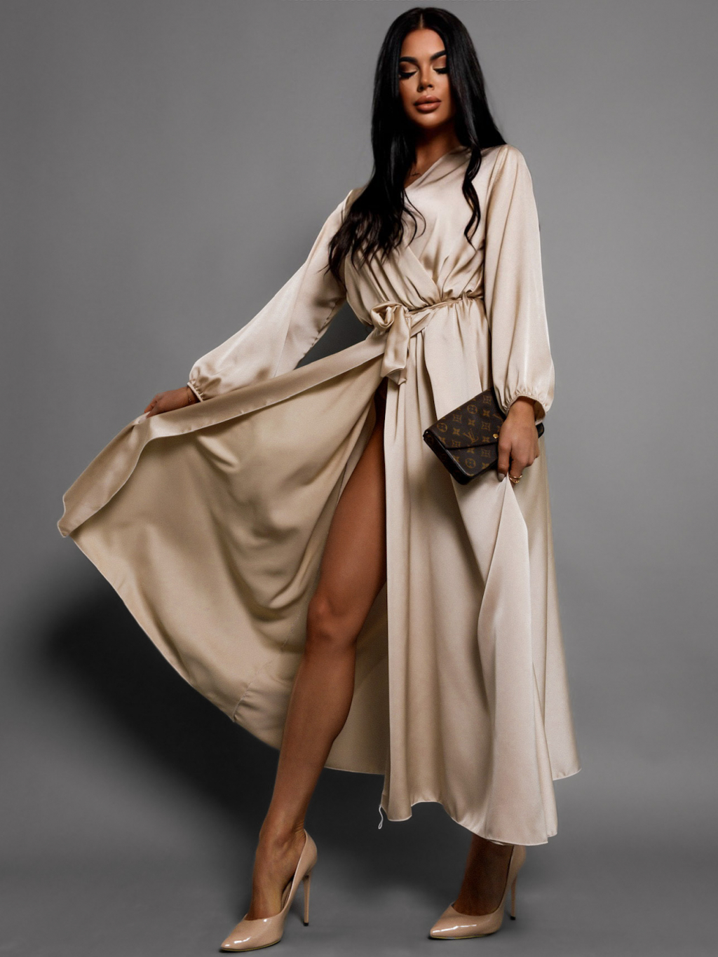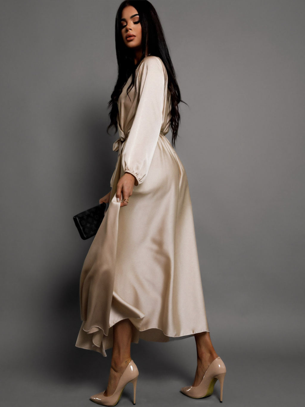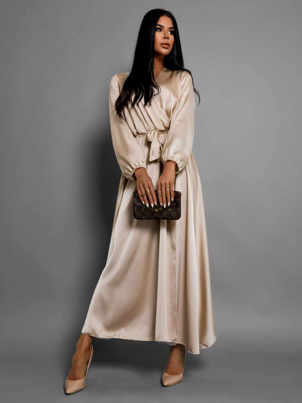 Svetlo béžové elegantné šaty WOMAN s dlhým rukávom