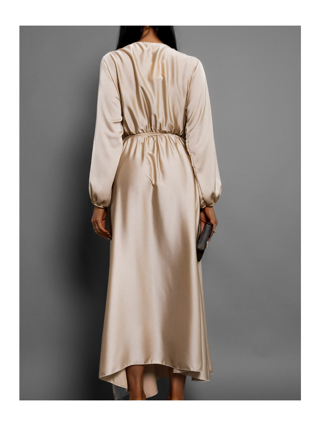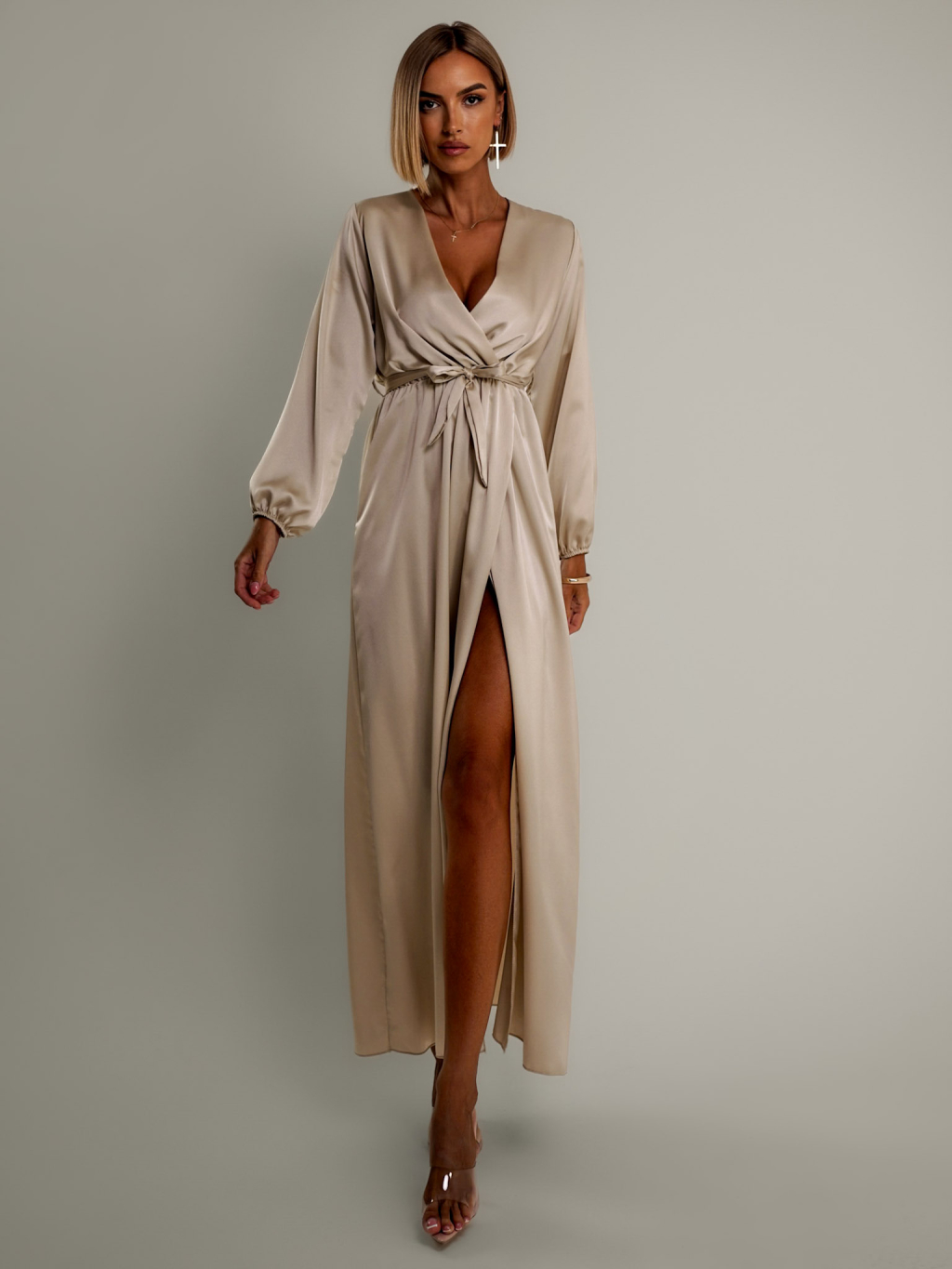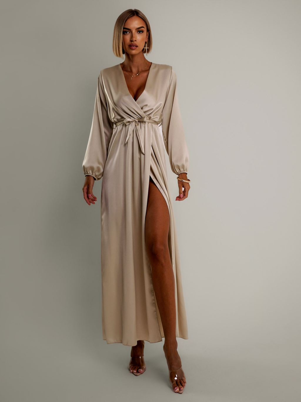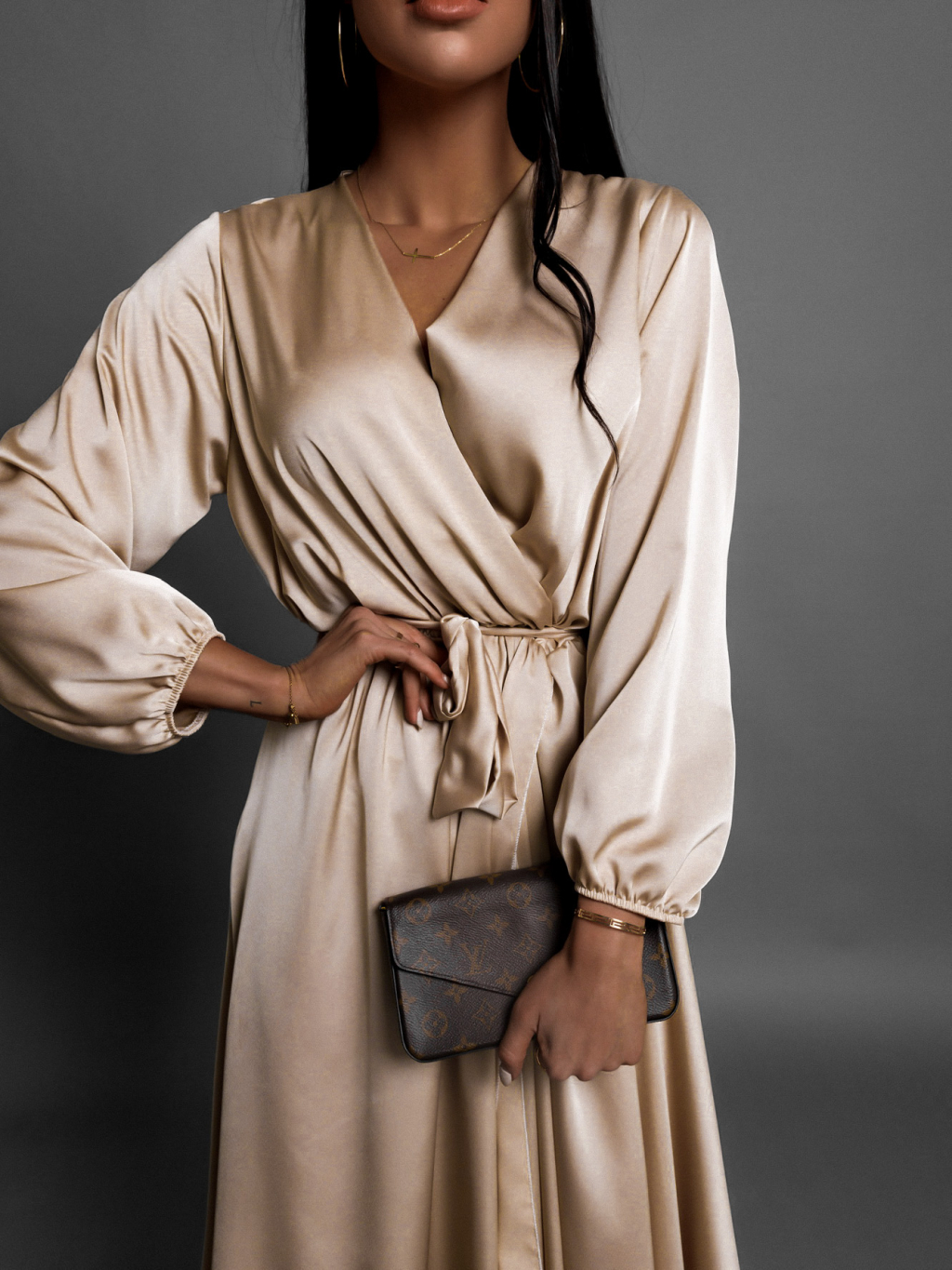 Svetlo béžové elegantné šaty WOMAN s dlhým rukávom