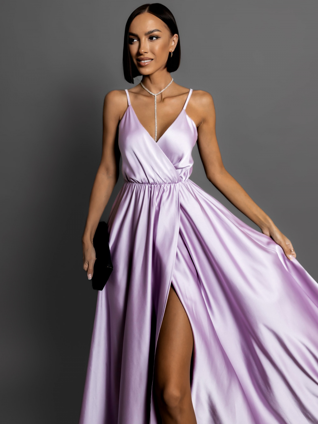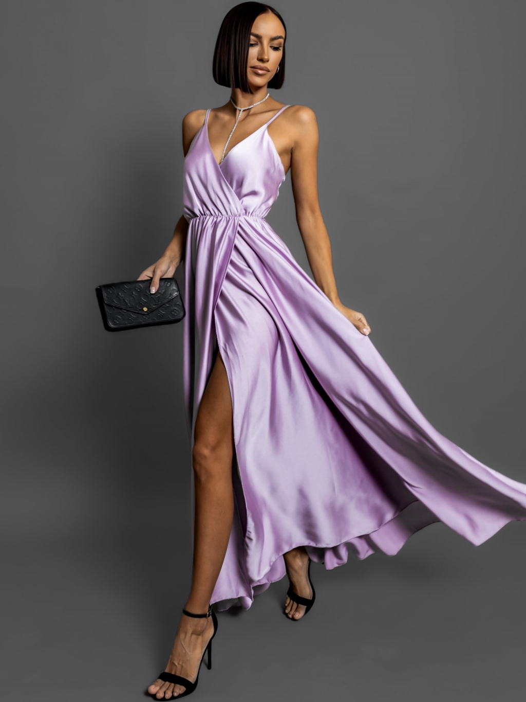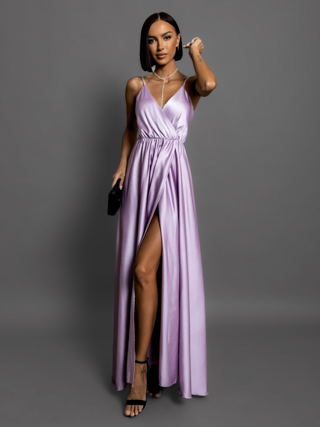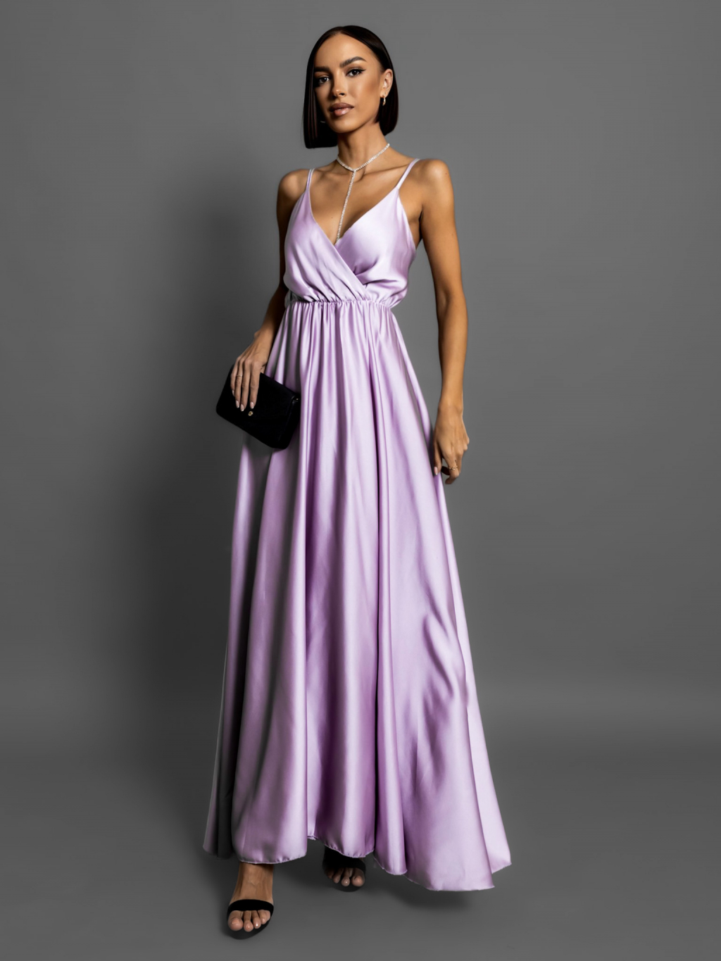 Svetlo fialové dlhé saténové šaty PERFECTLY