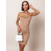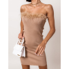 Svetlo hnedé elegantné šaty CELLESTE s perím