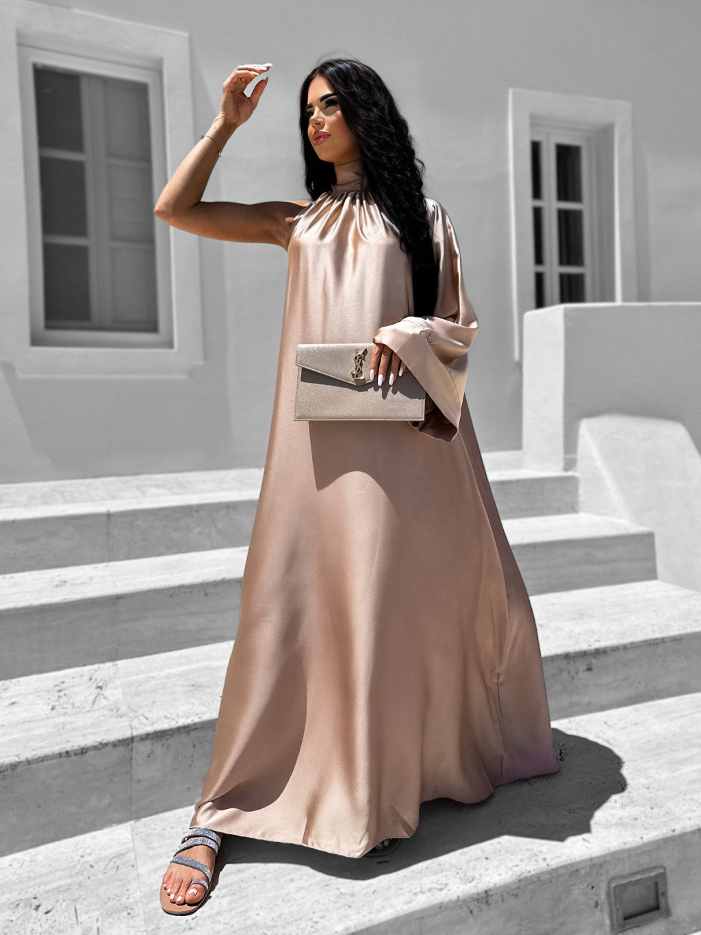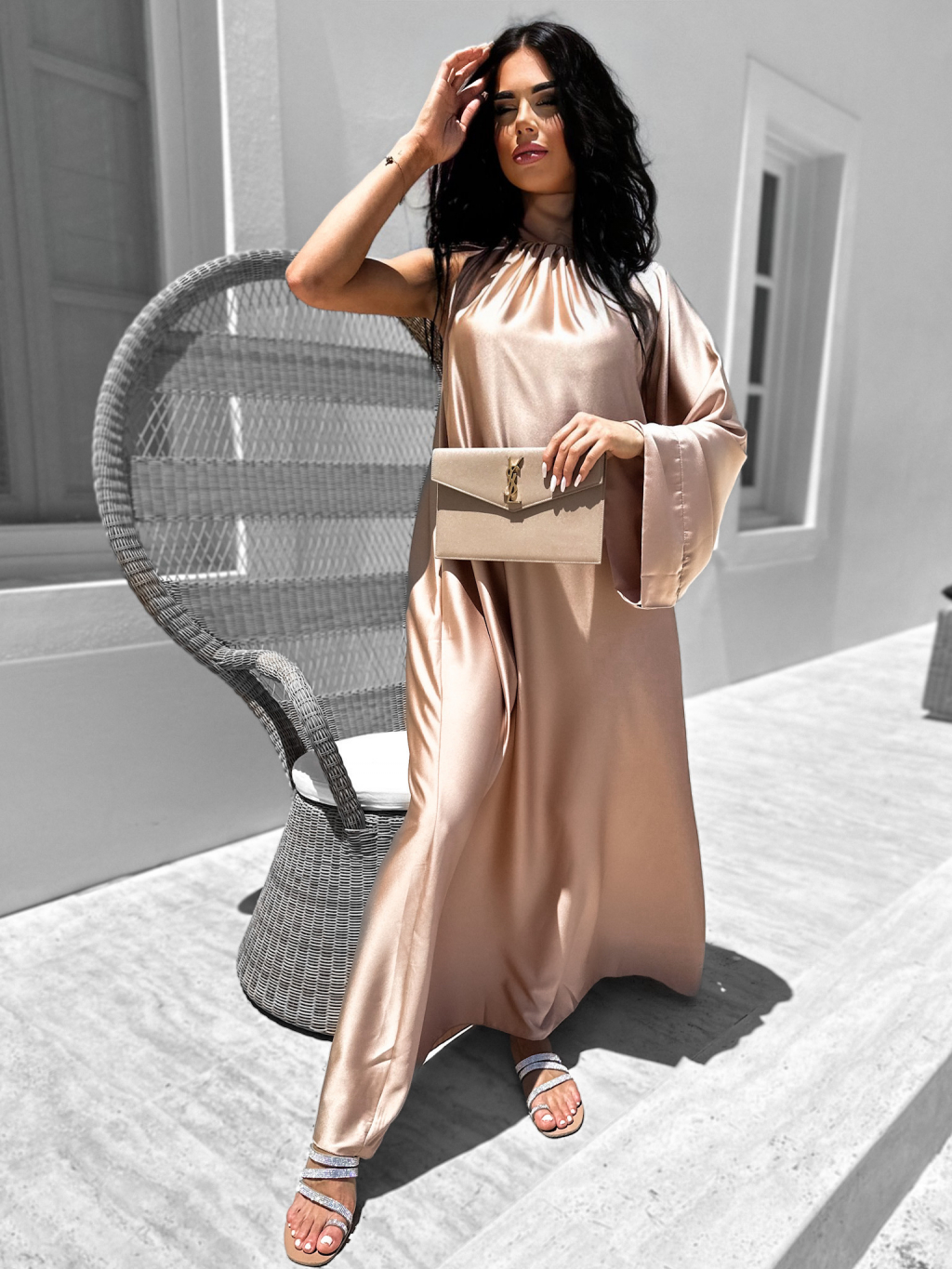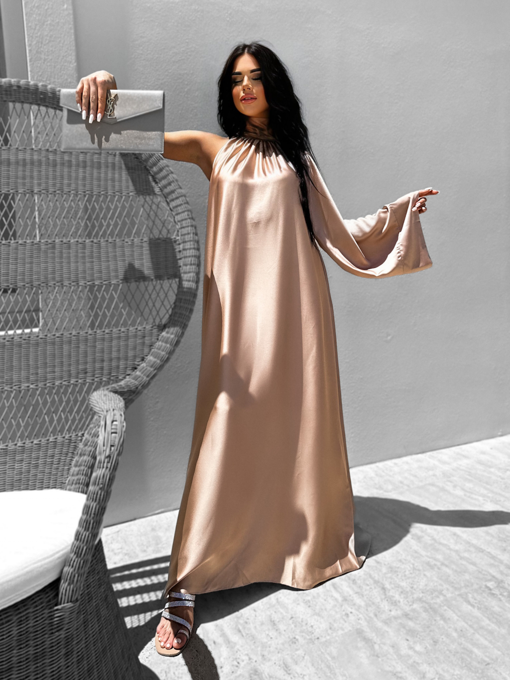 Svetlo hnedé lesklé elegantné šaty GLADIOLUS