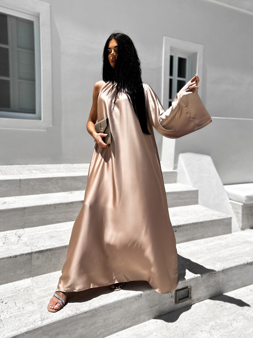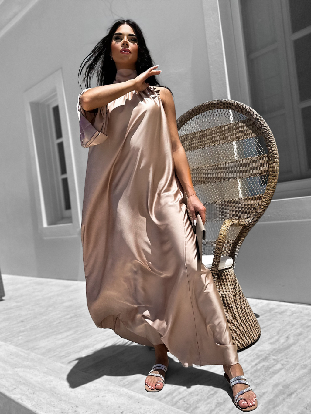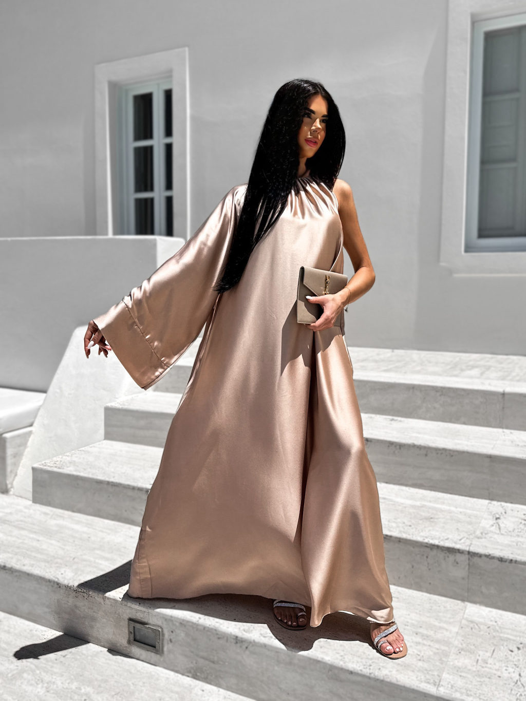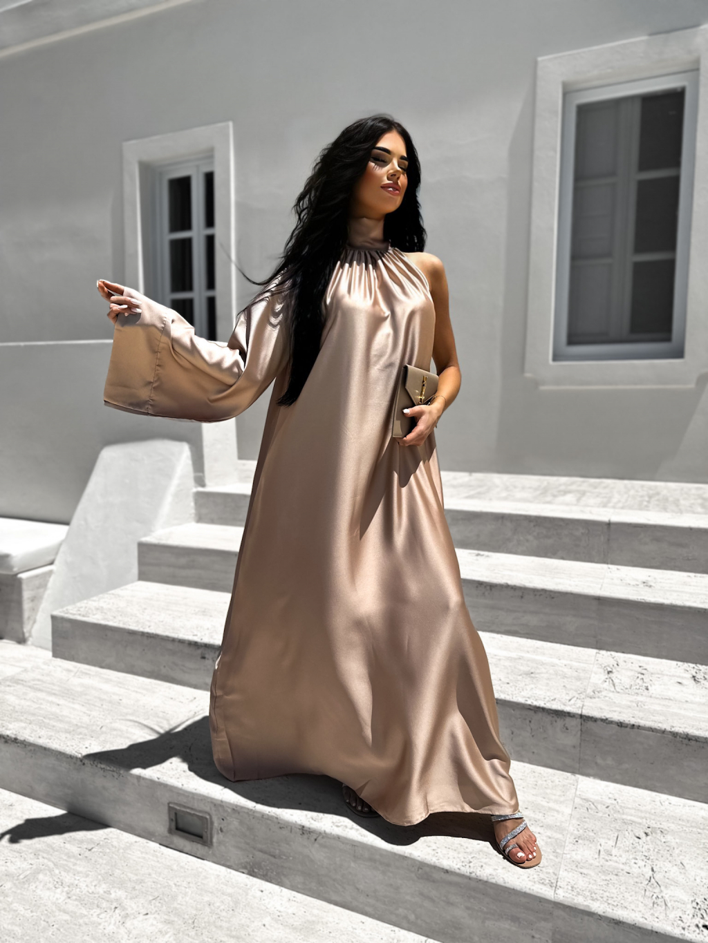 Svetlo hnedé lesklé elegantné šaty GLADIOLUS