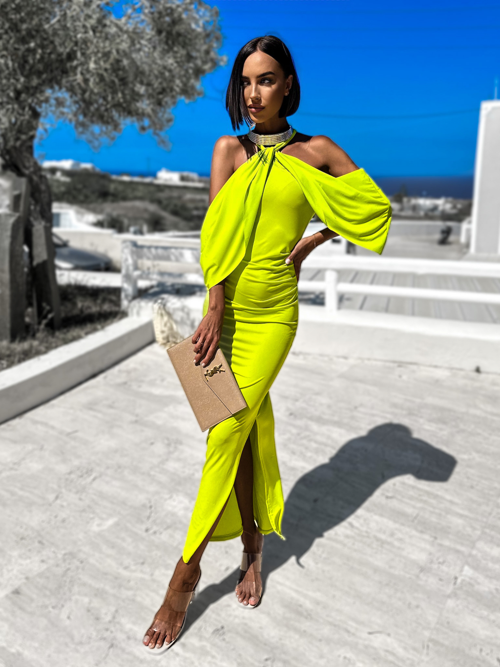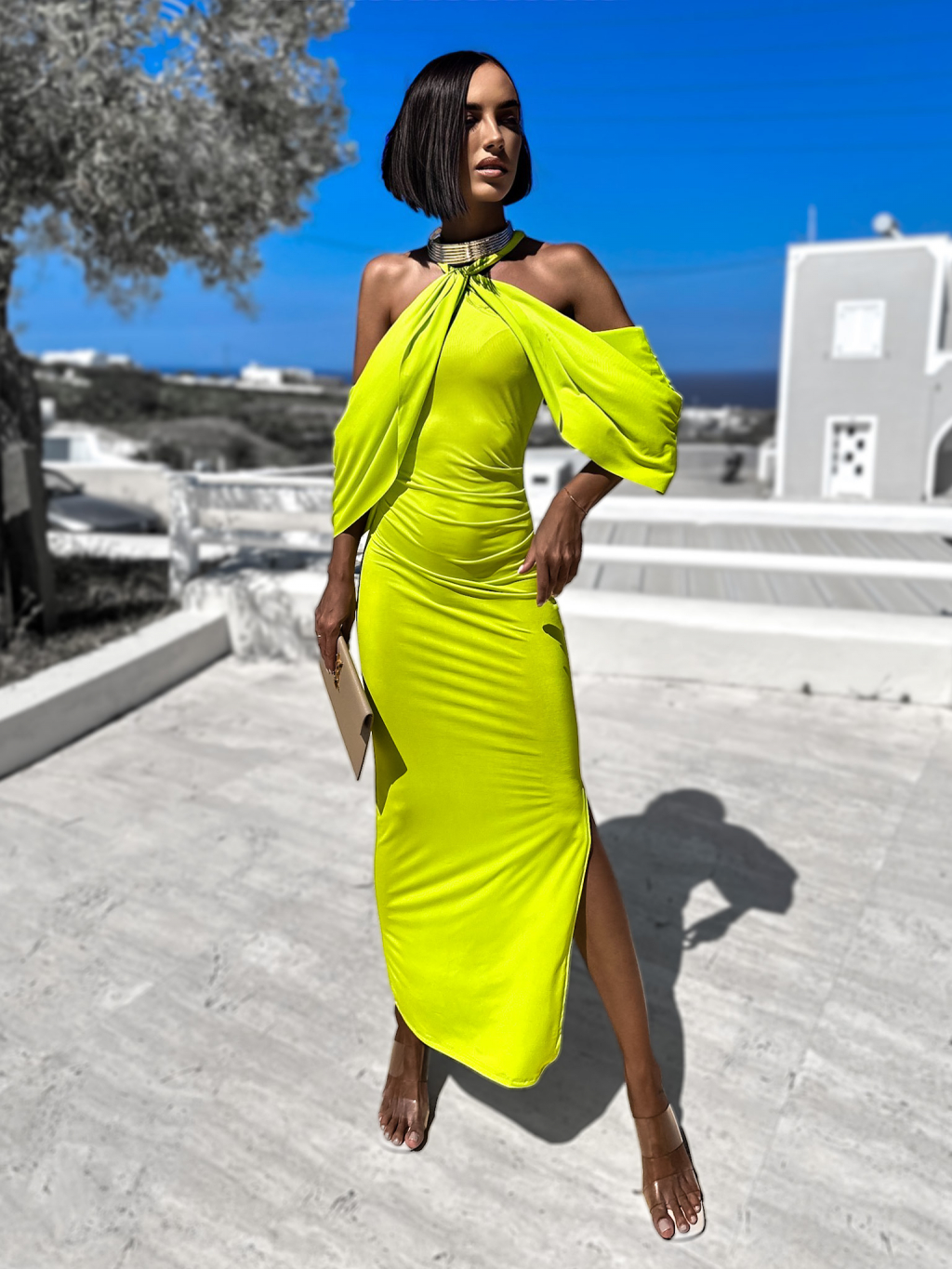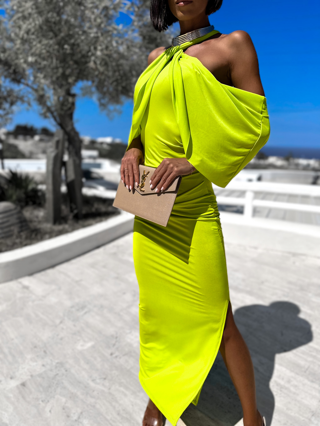 Svetlo zelené elegantné šaty LOYLENE s rázporkom
