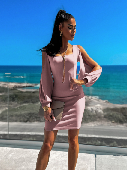 Svetlo zelené elegantné šaty RENDAE s prestrihmi na rukáve