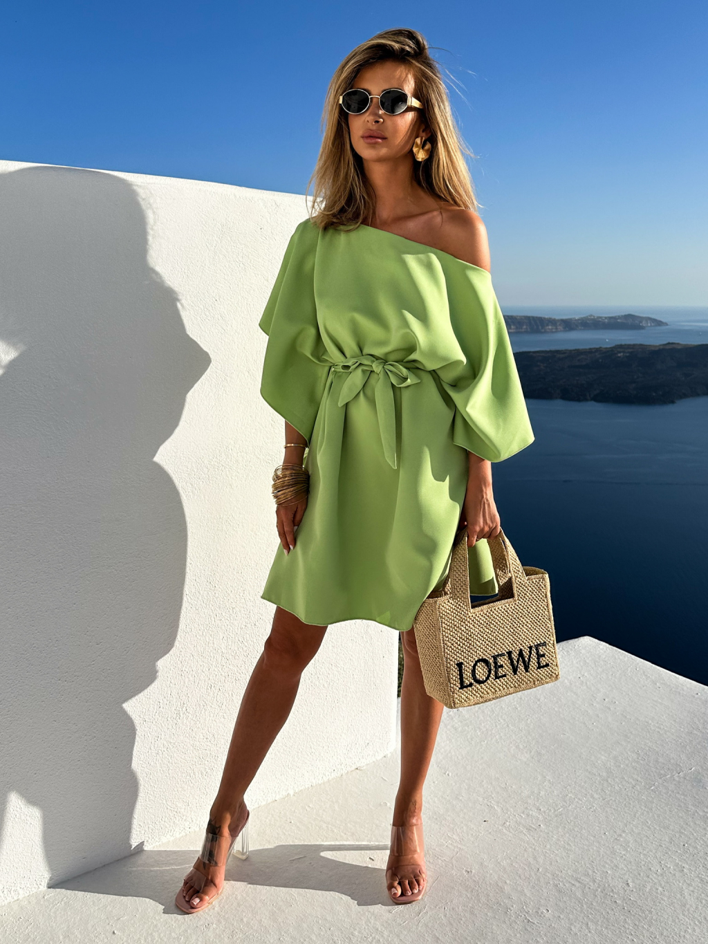 Svetlo zelené oversize elegantné zaväzovacie šaty GRANDIE