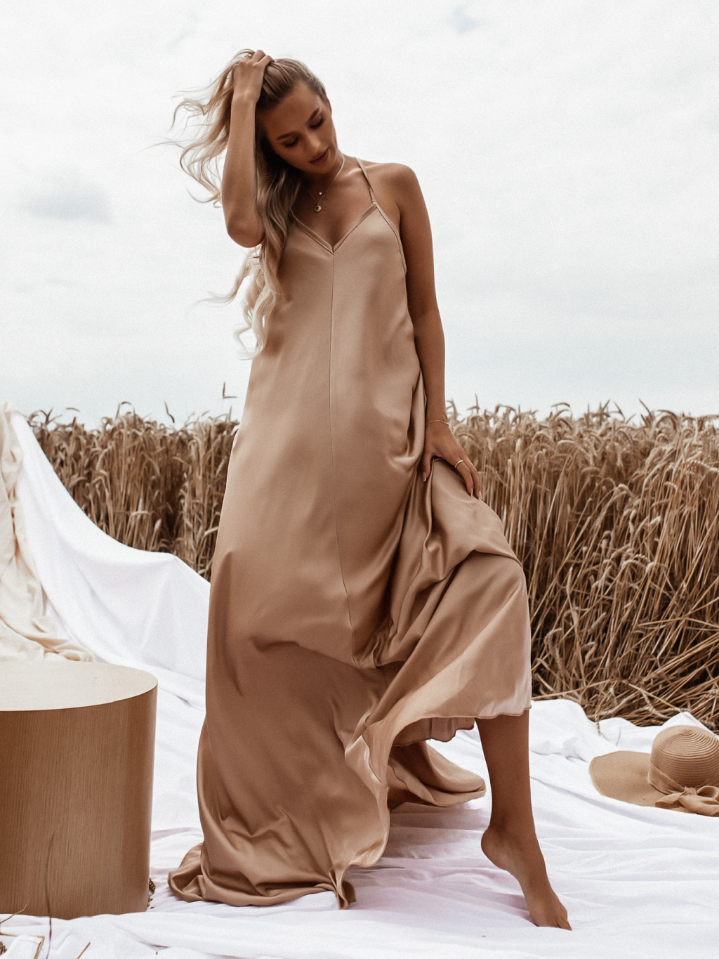 Svetlohnedé dlhé lesklé šaty HAYLEY