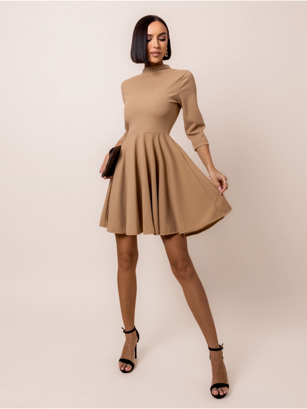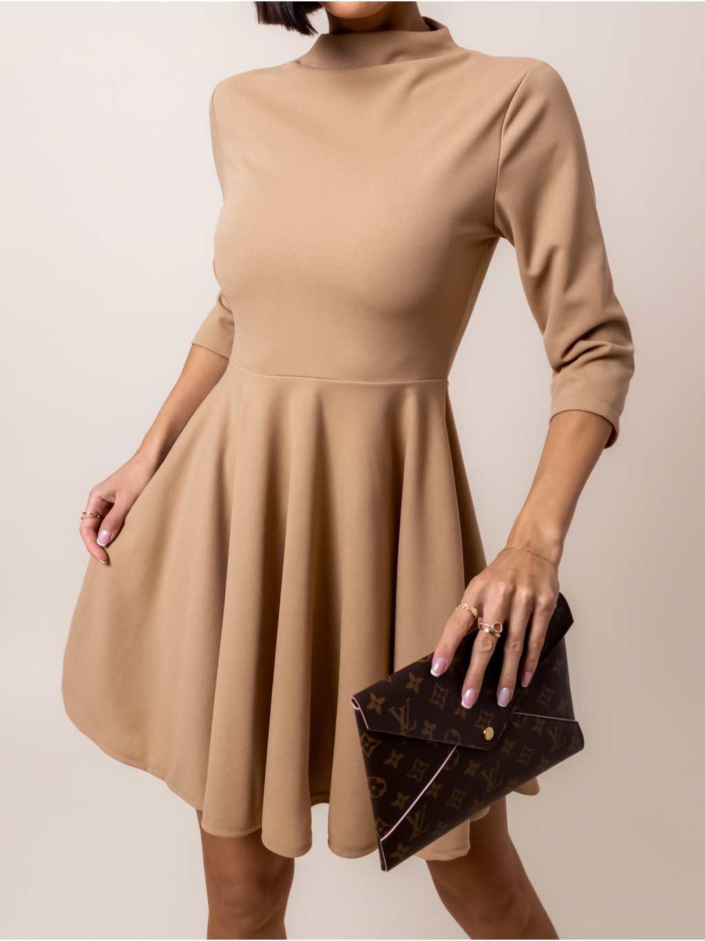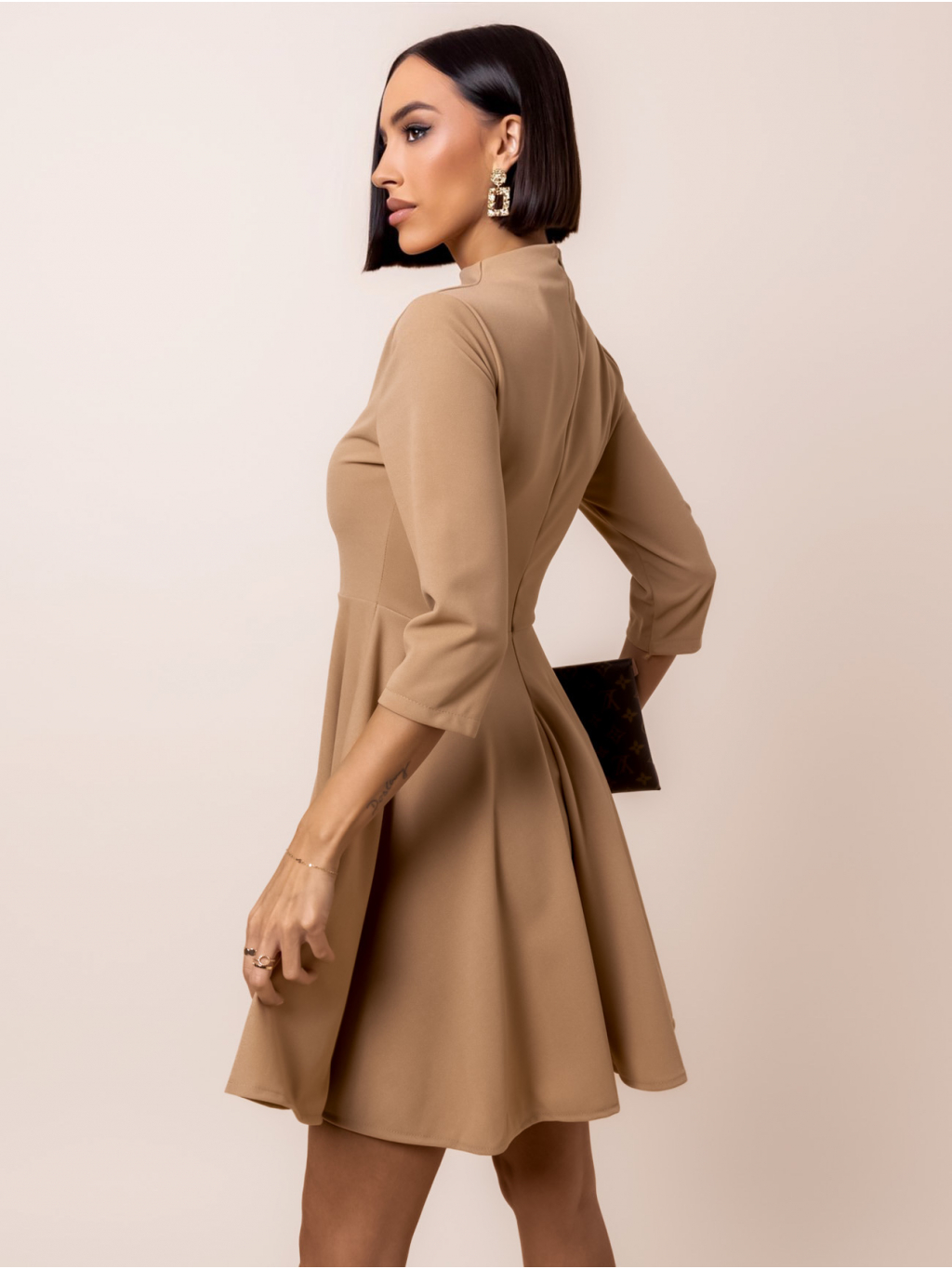 Svetlohnedé elegantné šaty GROUND s dlhým rukávom
