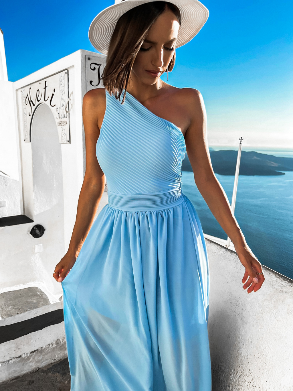 Svetlomodré elegantné dlhé šaty FLOAT